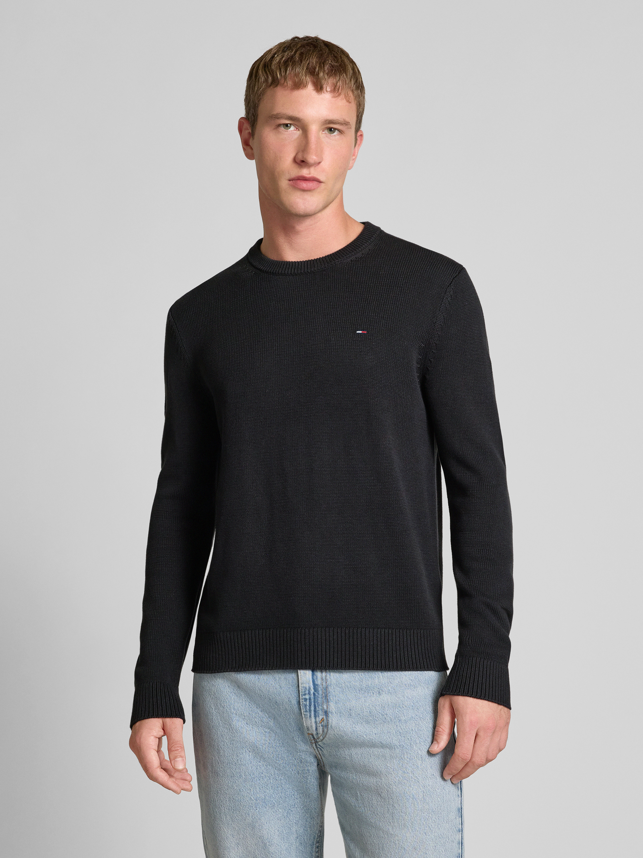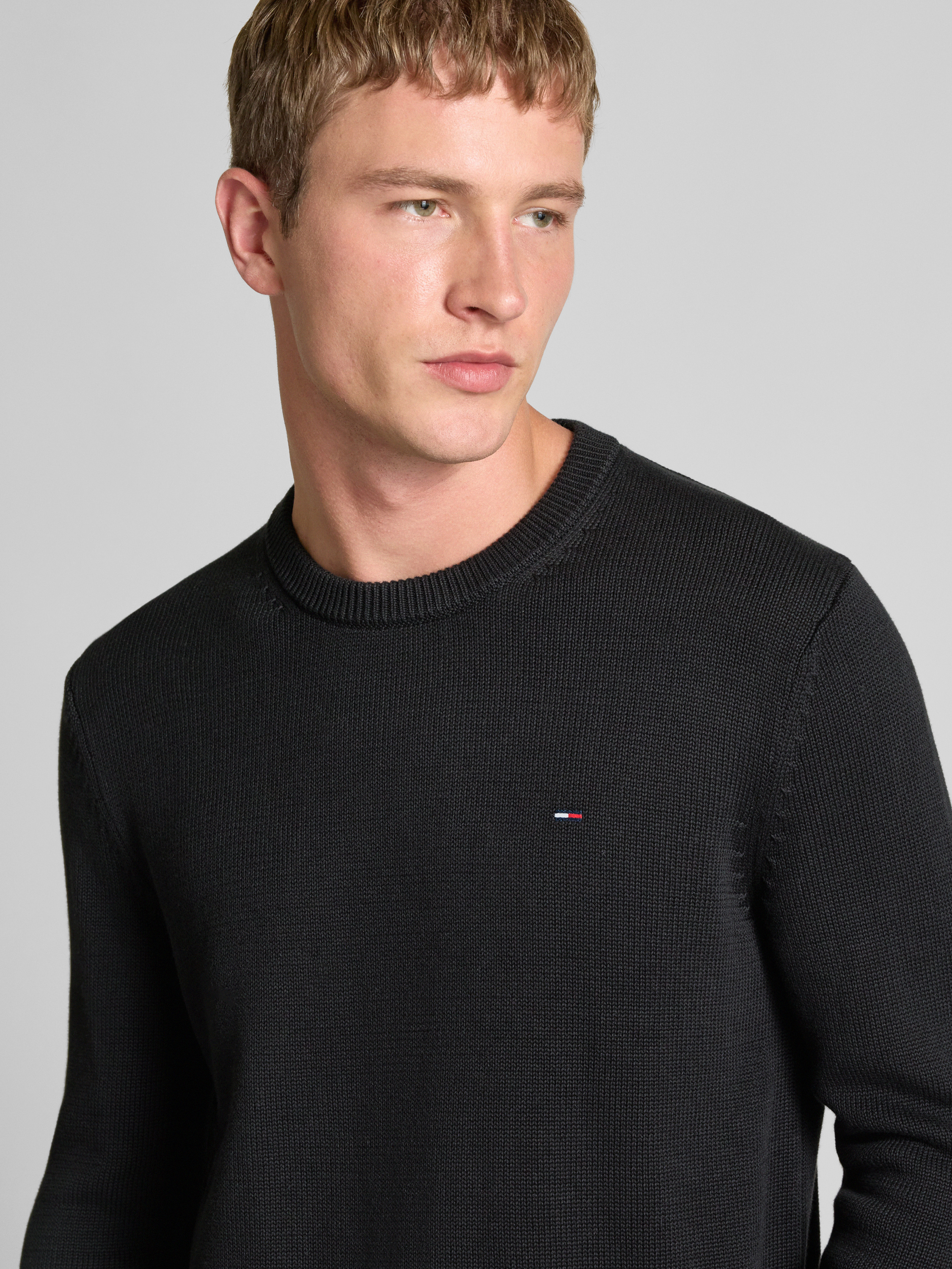 Regular fit gebreide pullover van zuiver katoen in zwart