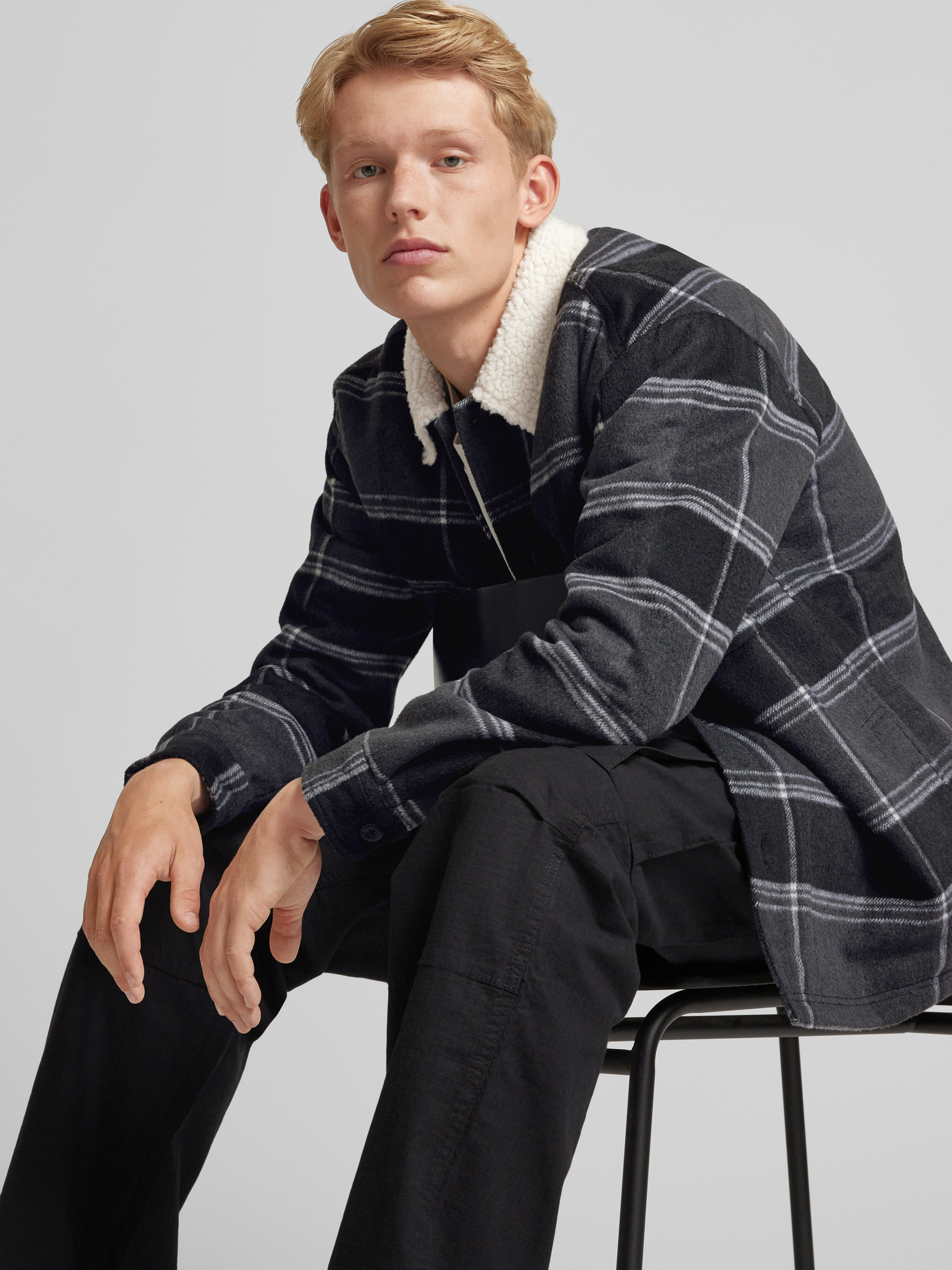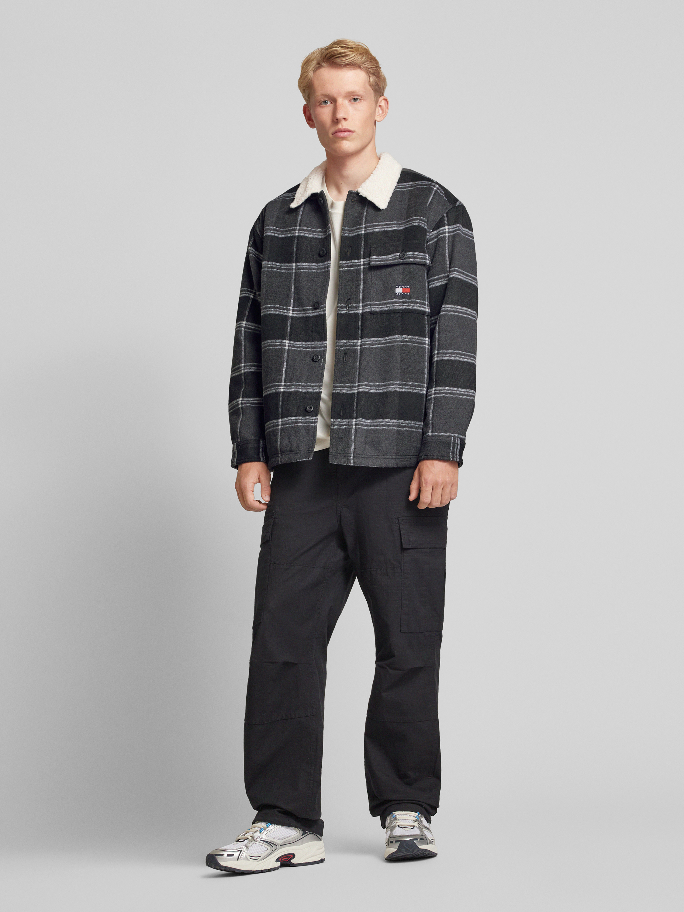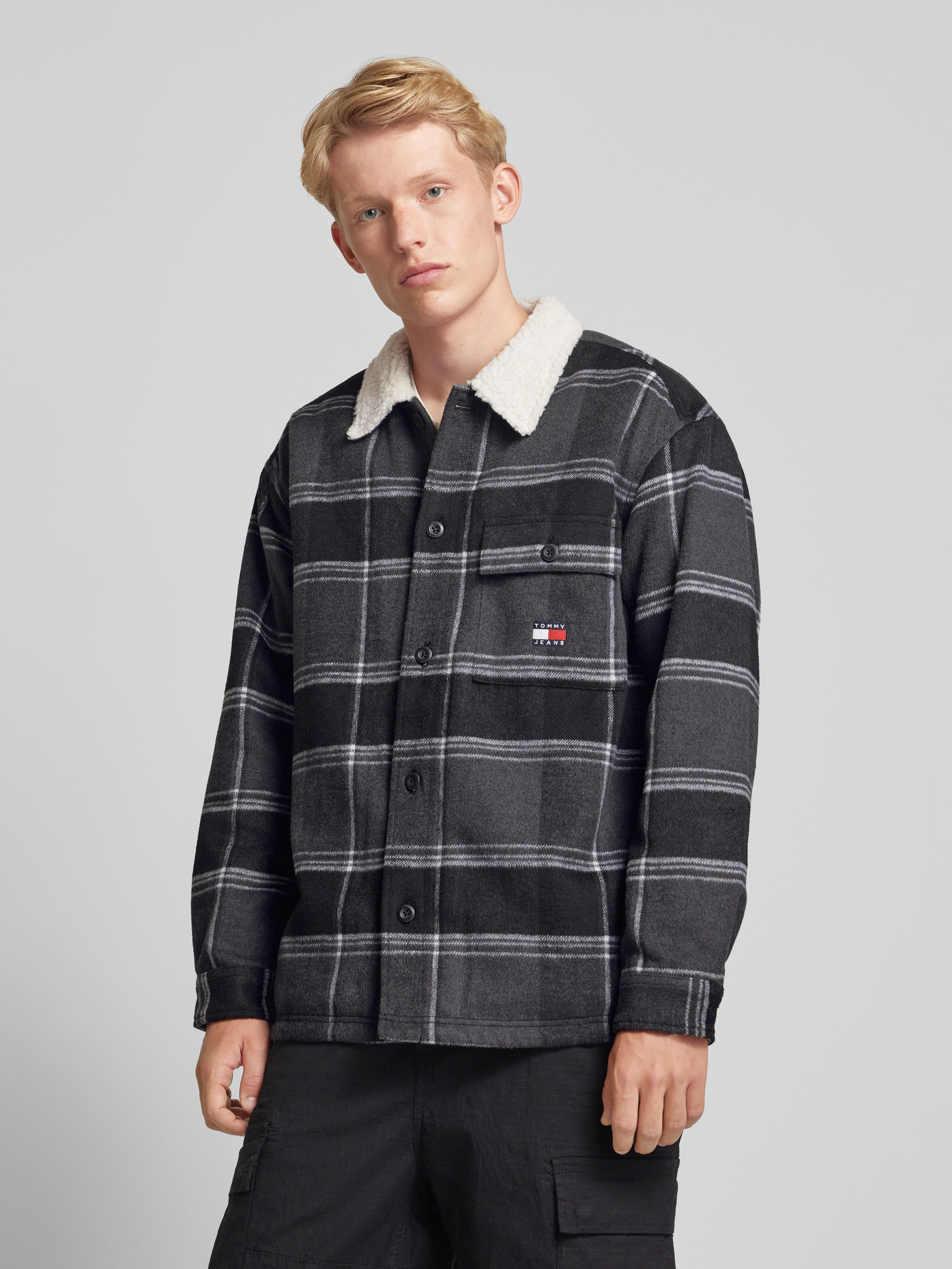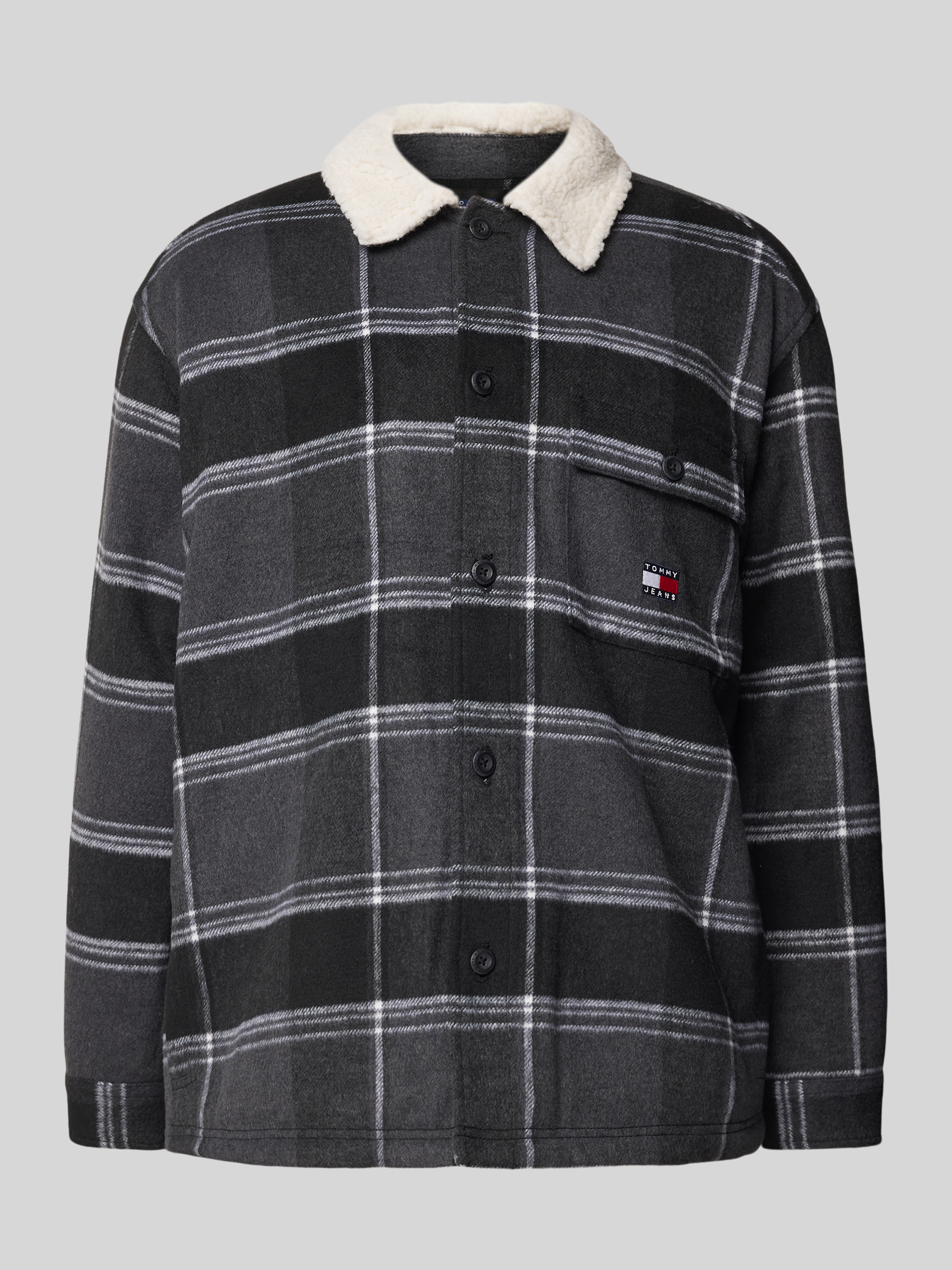 Tommy JeansRegular fit overhemdjack met knoopsluiting, model 'CHECK SHERPA' in zwart