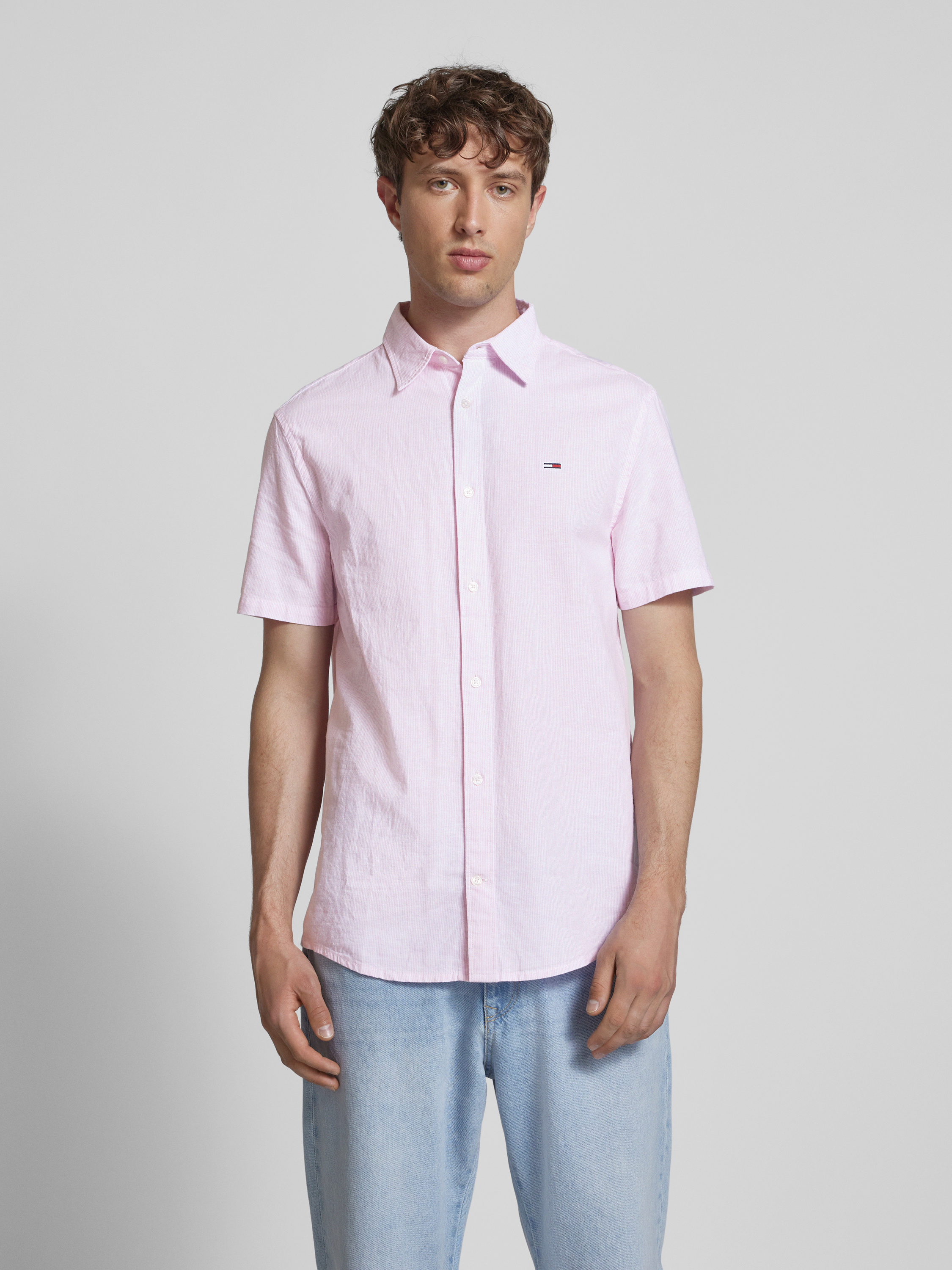 Regular fit vrijetijdsoverhemd van een mix van katoen en linnen in lichtroze