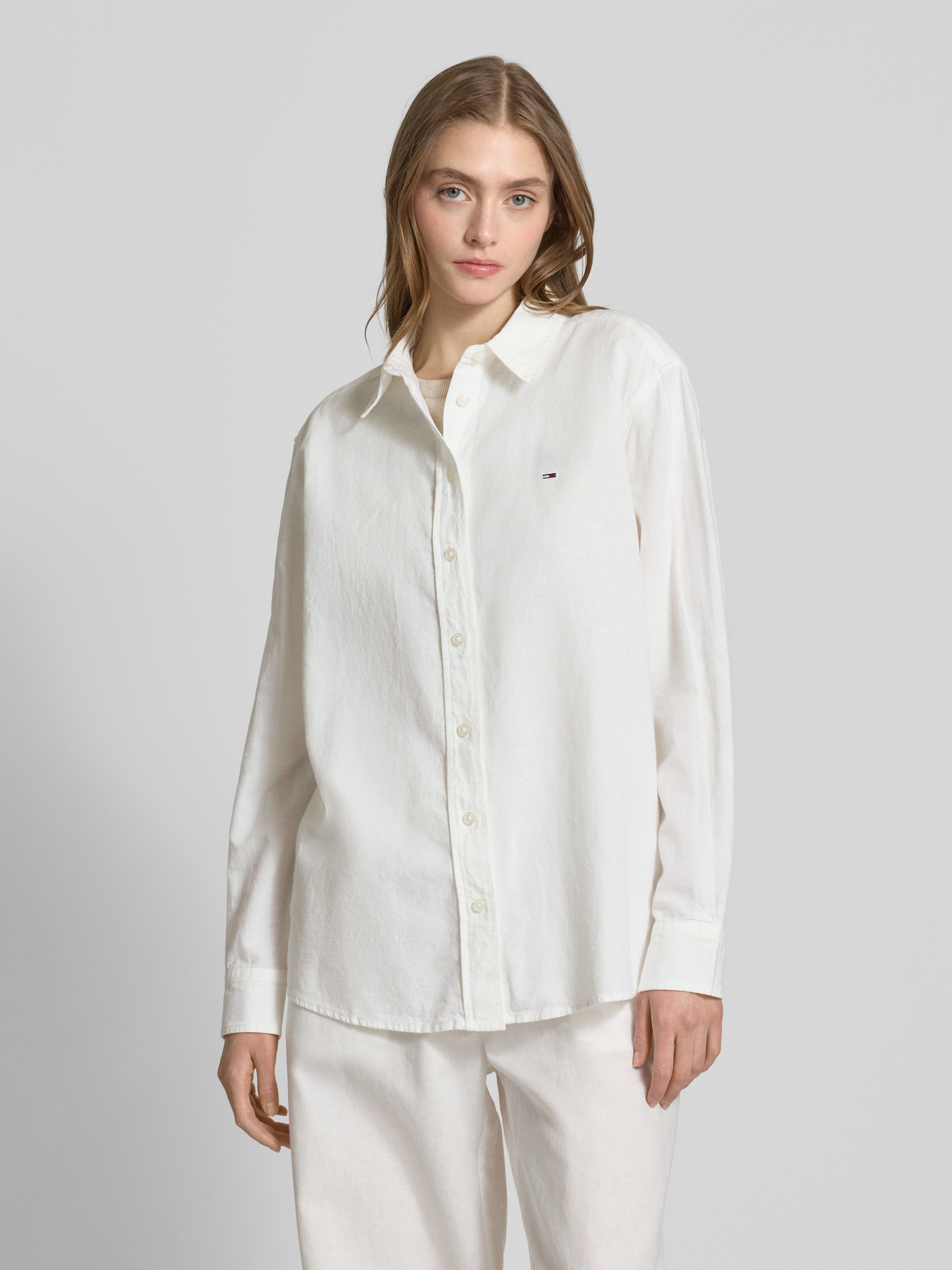 Relaxed fit blouseshirt van een mix van katoen en linnen in wit