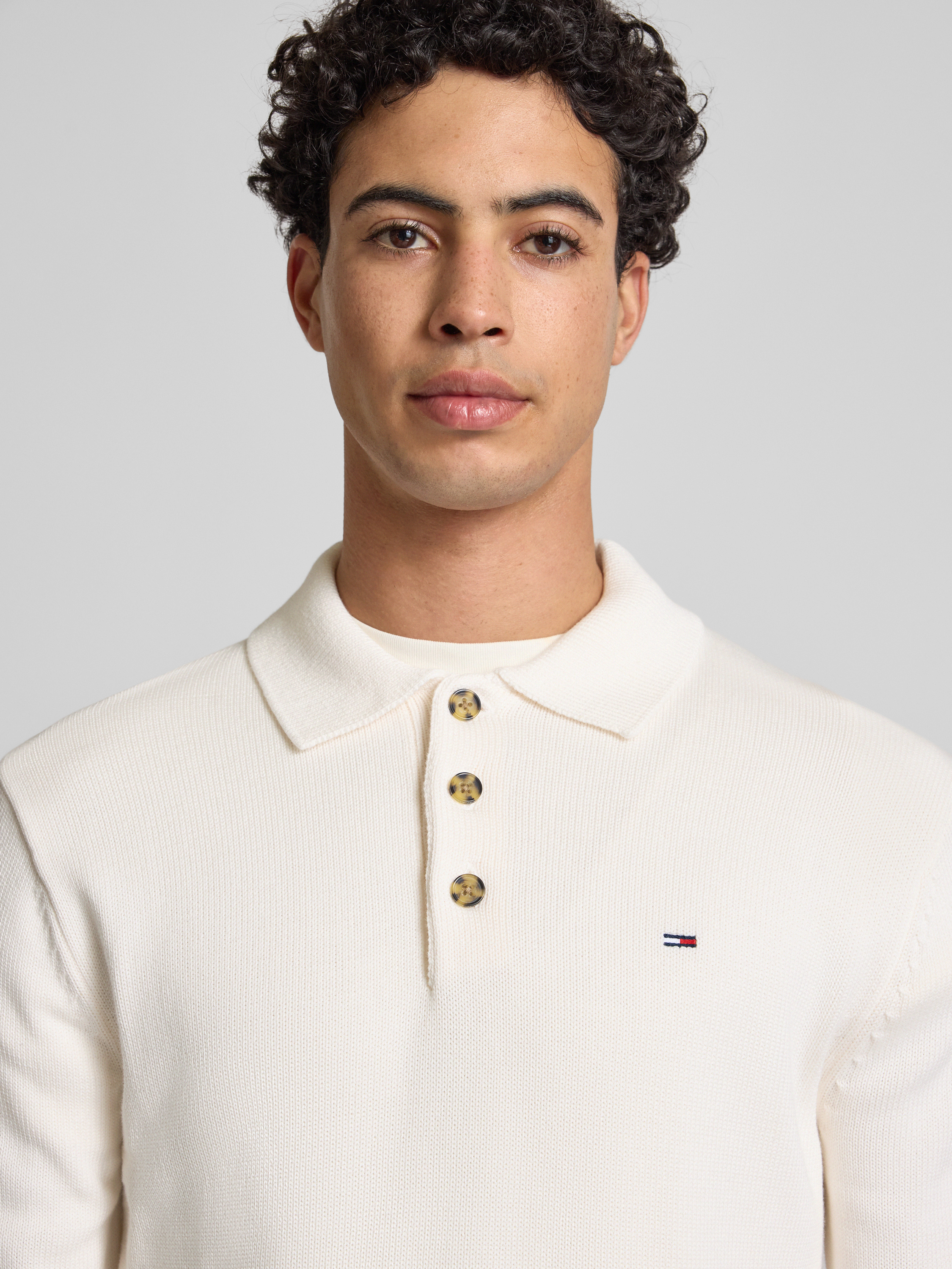 Tommy JeansSlim fit gebreide pullover van puur katoen in offwhite