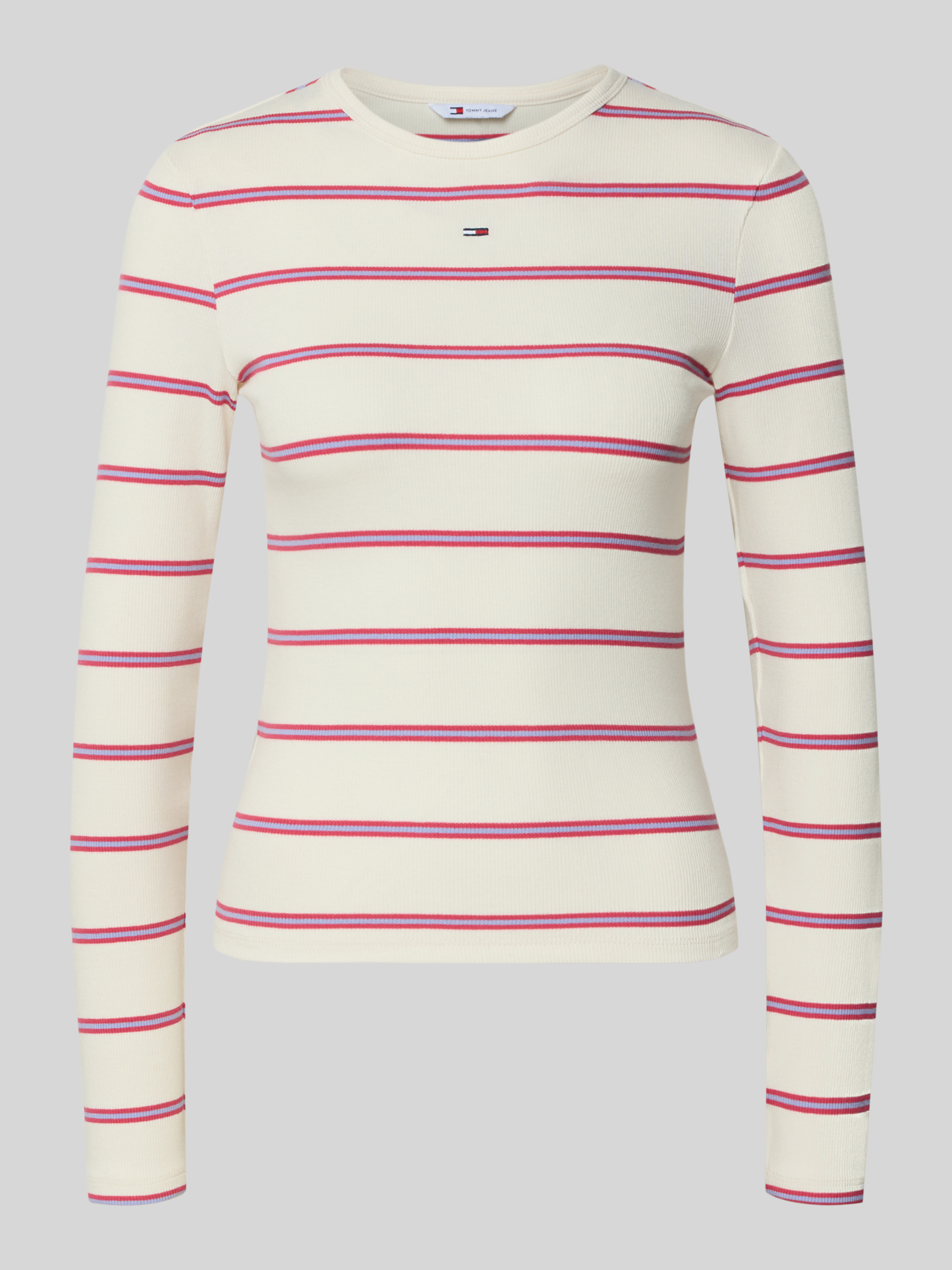 Slim fit shirt met lange mouwen van katoenmix in offwhite