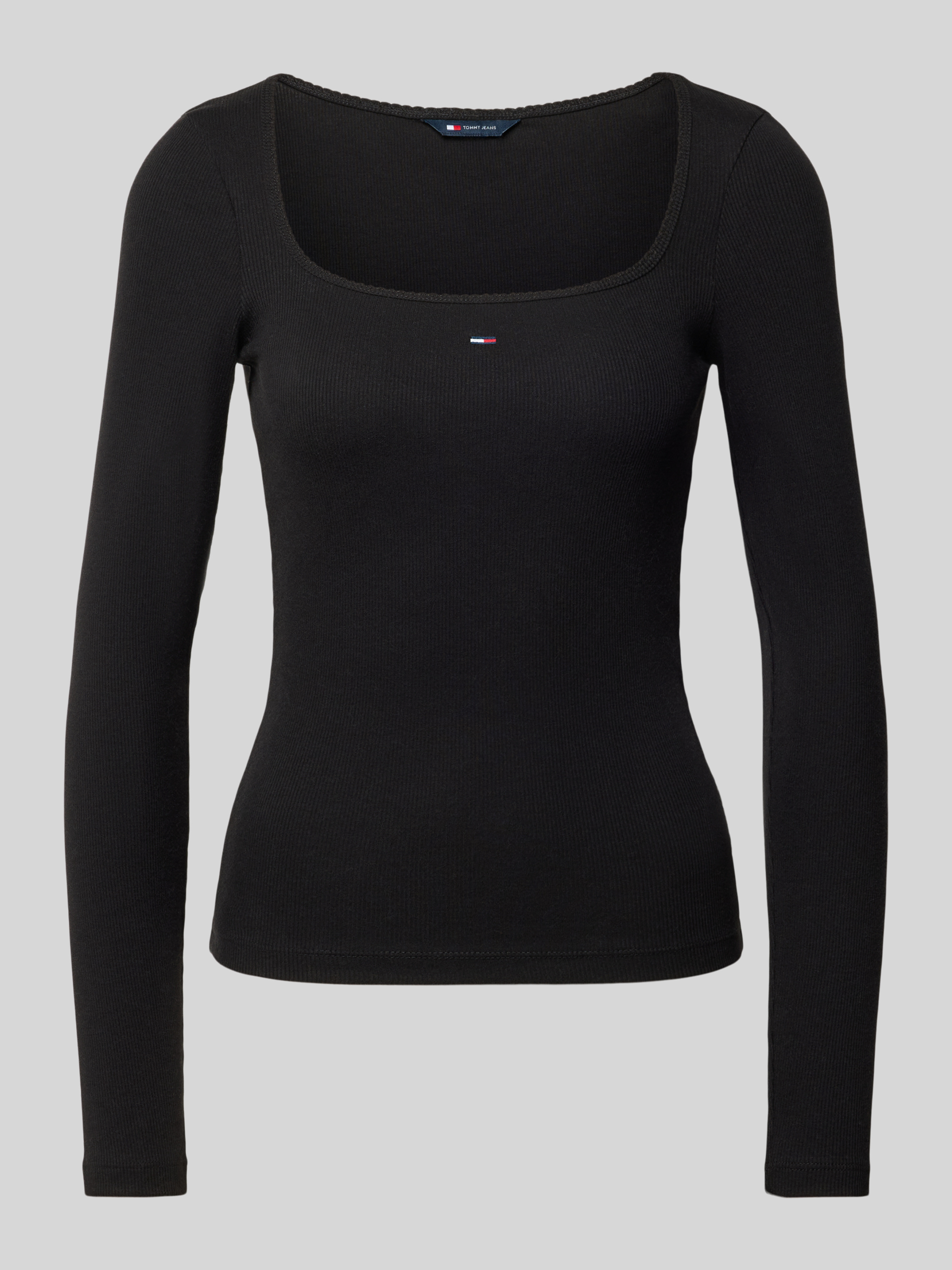 Slim fit shirt met lange mouwen van katoenmix in zwart
