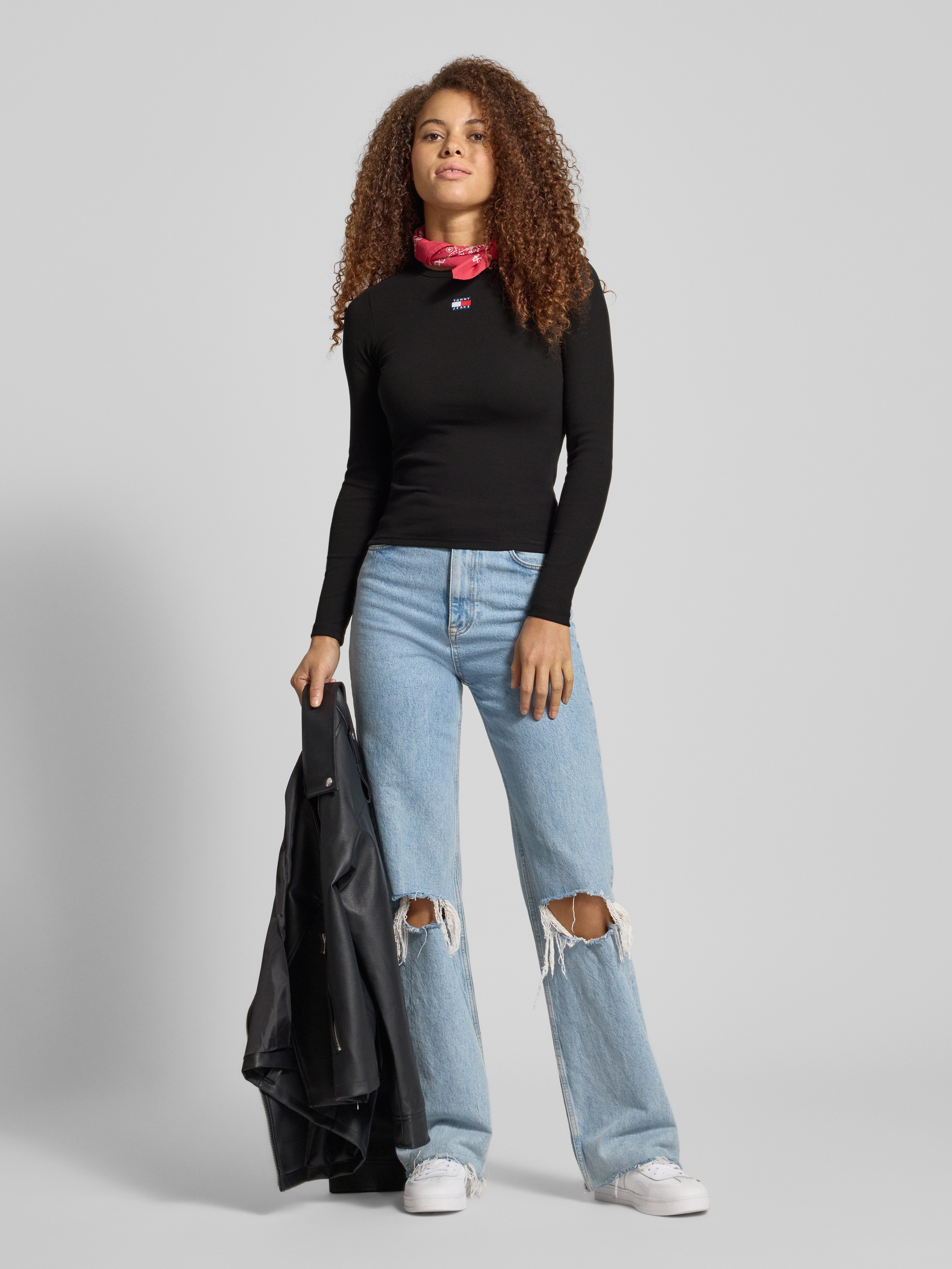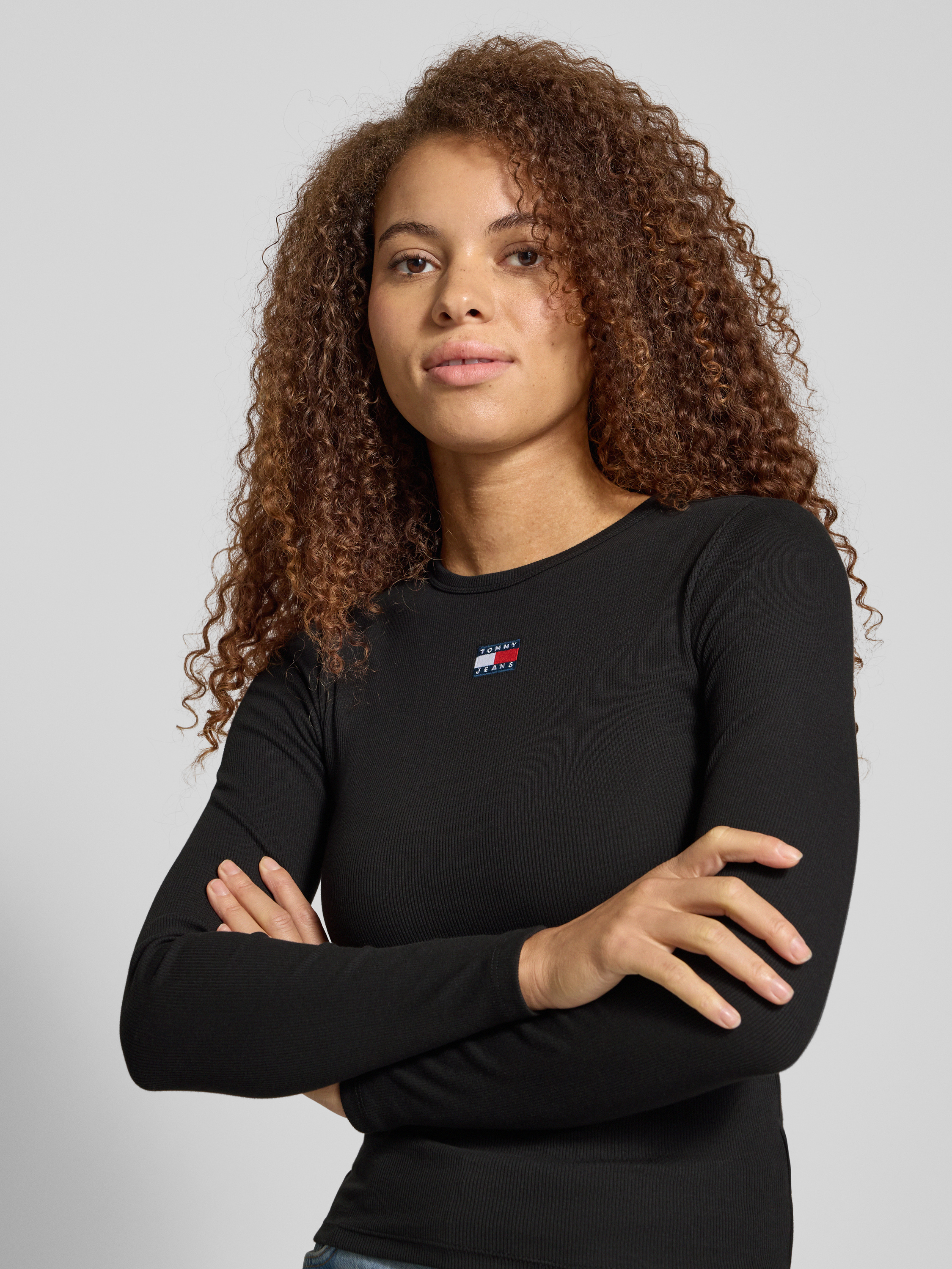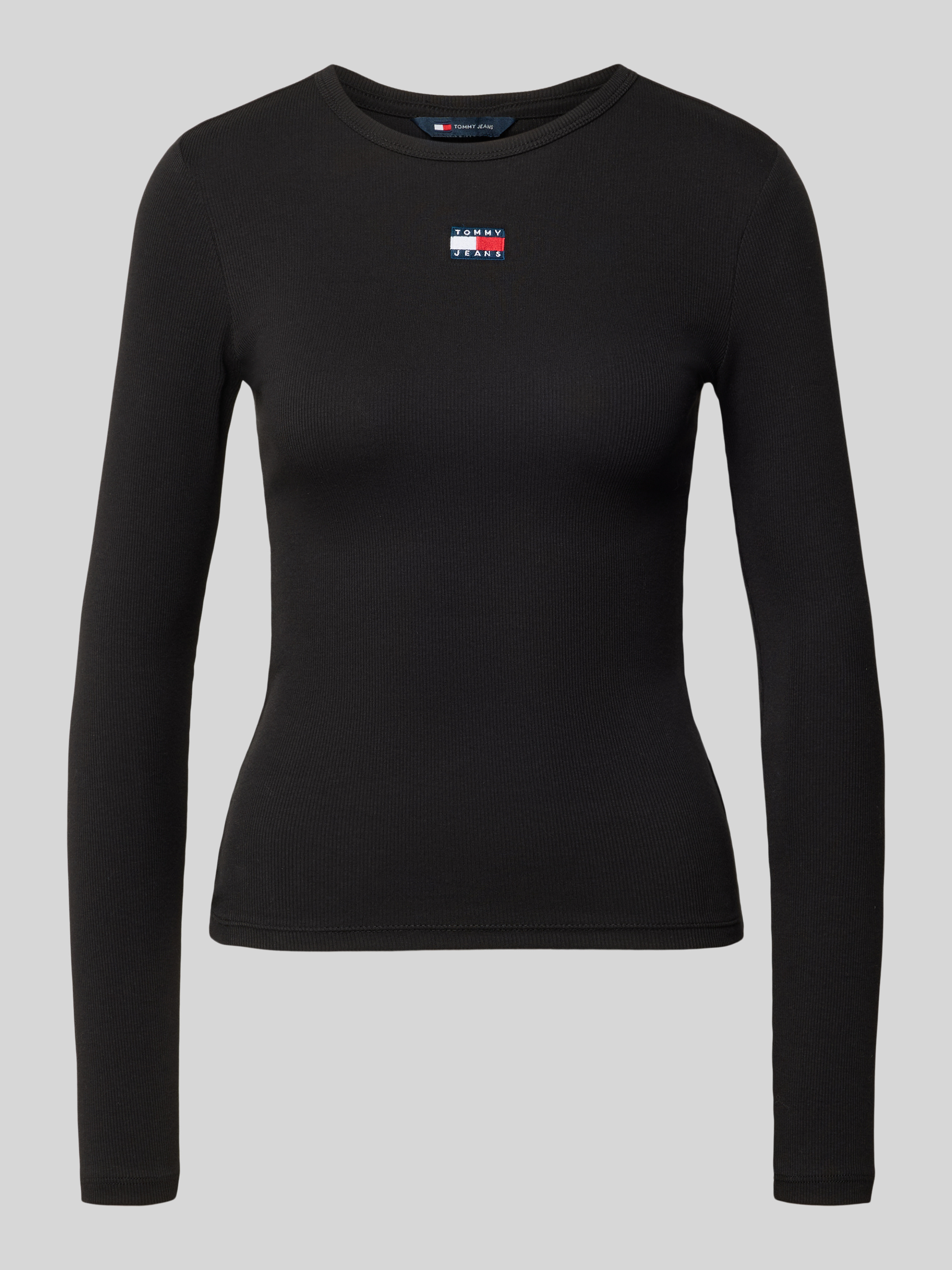 Slim fit shirt met lange mouwen van katoenmix in zwart