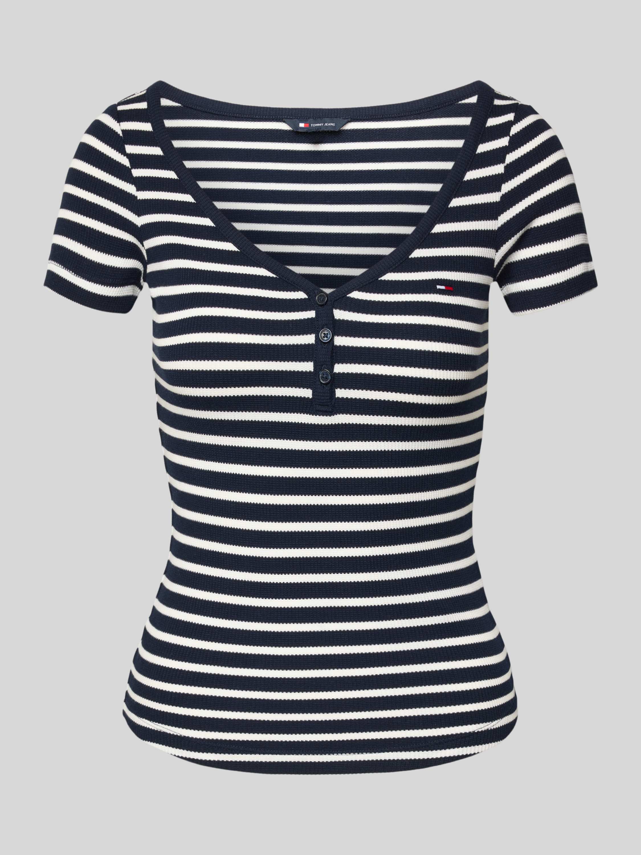 Slim fit T-shirt gebreid met wafelpatroon in marineblauw