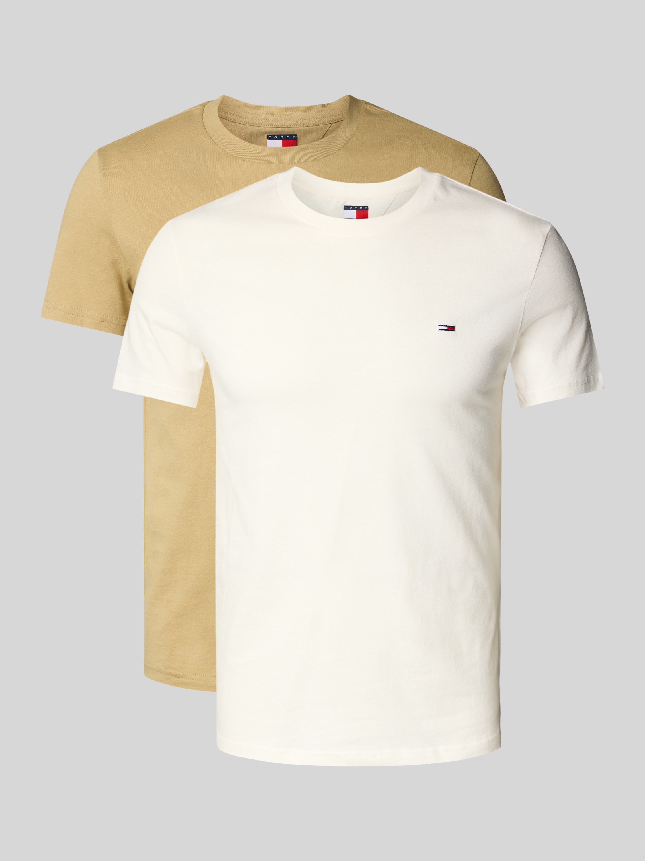 Slim fit T-shirt met logobadge in een set van 2 stuks in offwhite