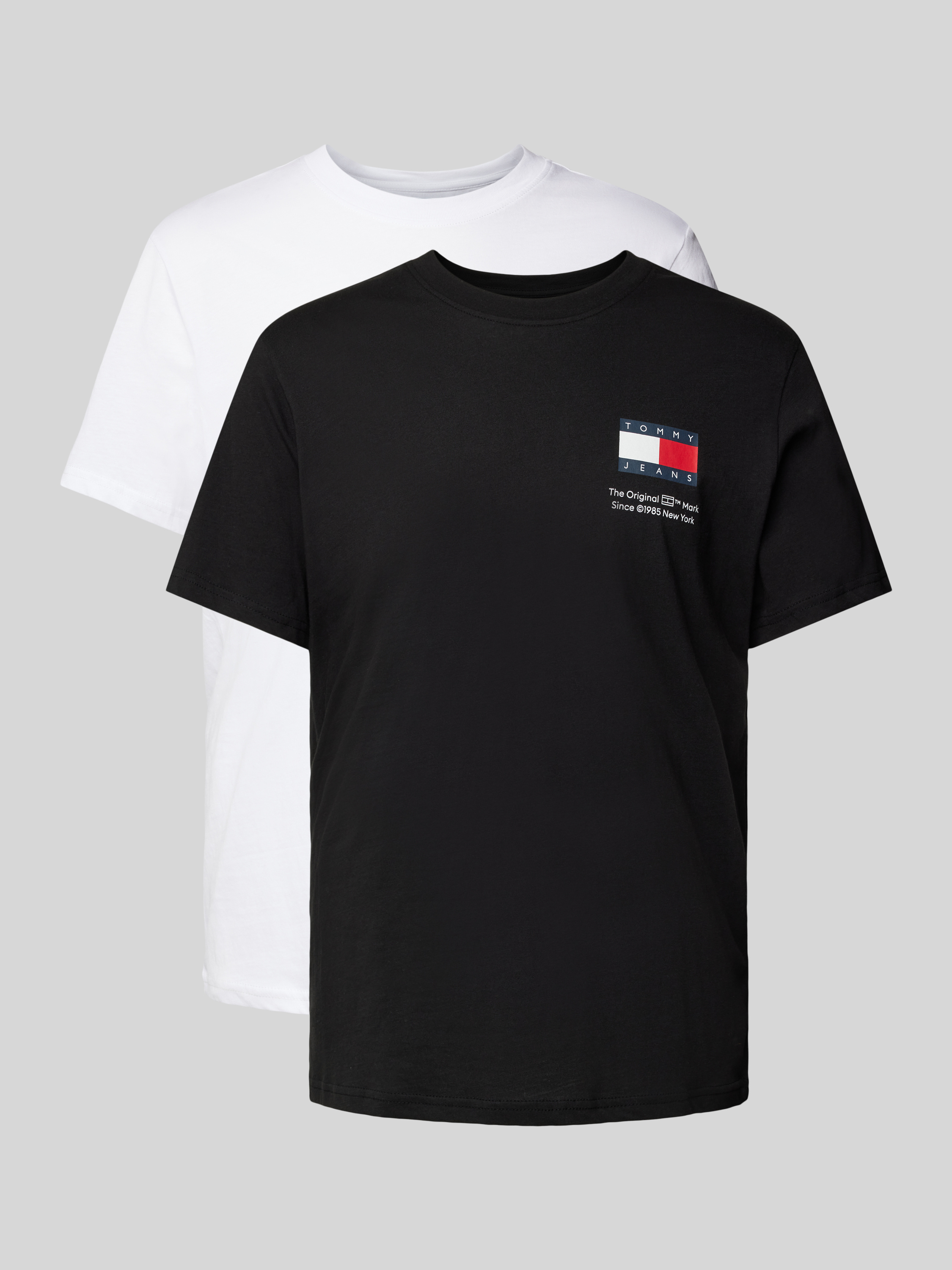 Slim fit T-shirt met logostitching in een set van 2 stuks in wit