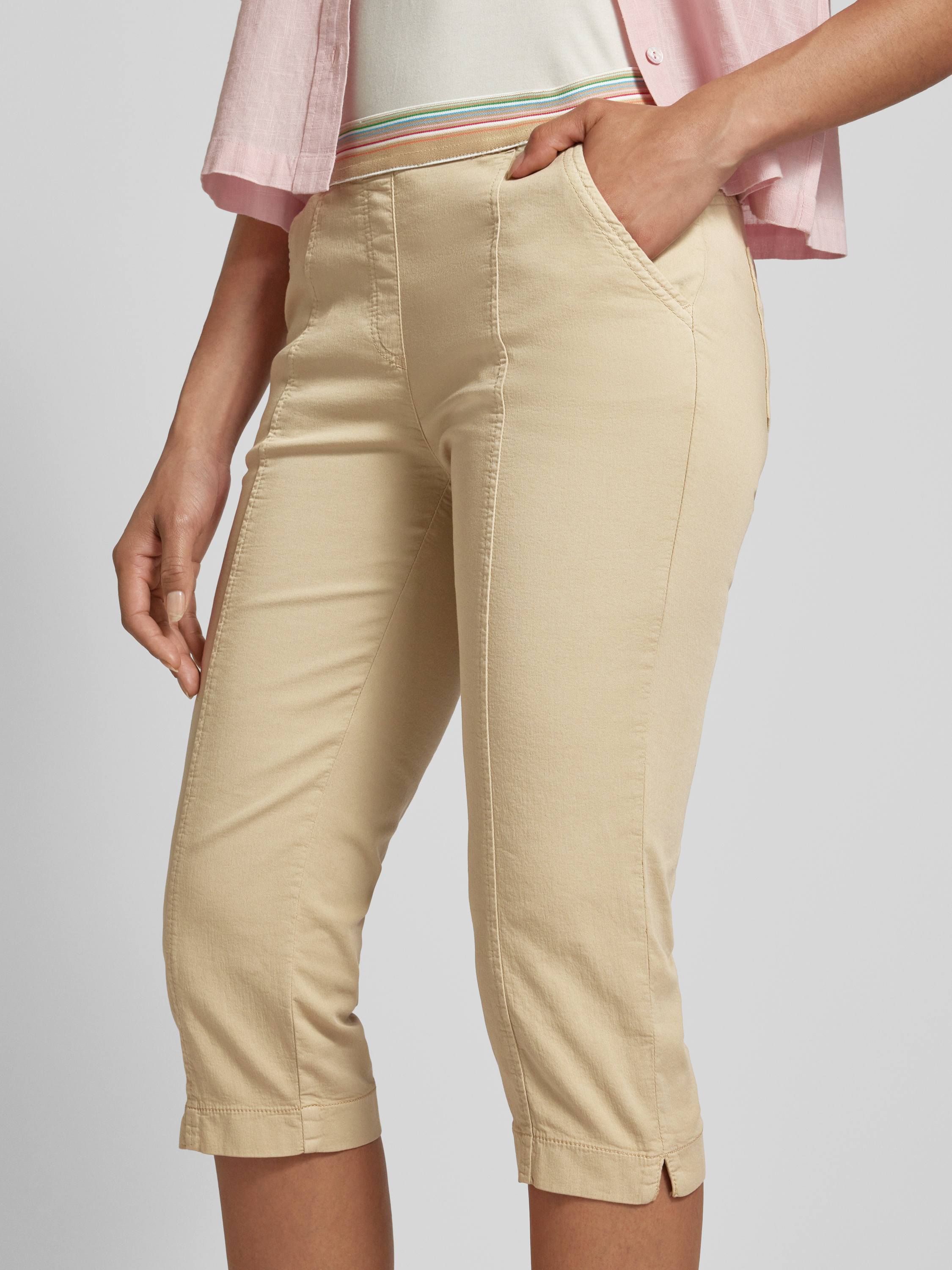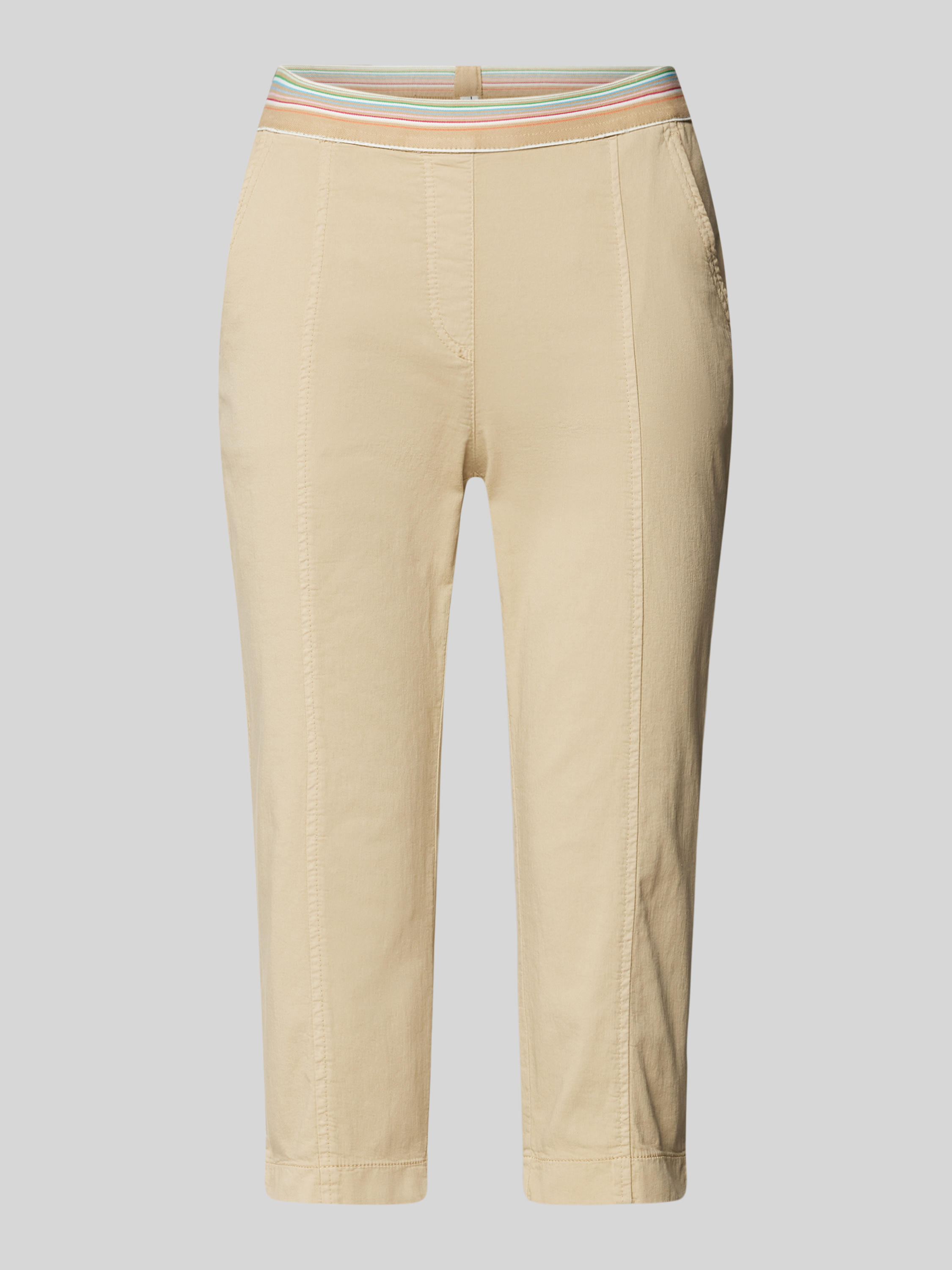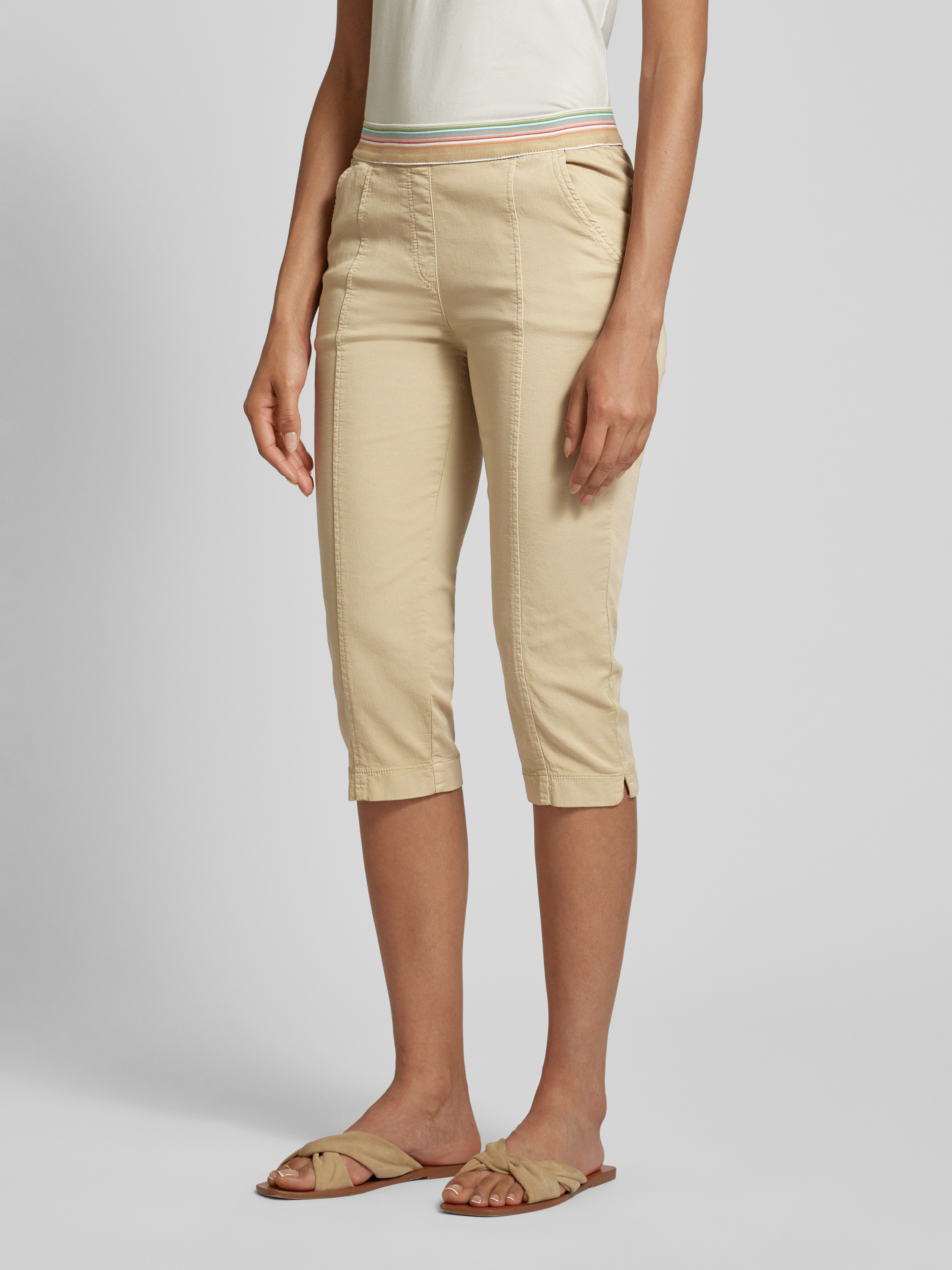 Regular fit capribroek met elastische band, model 'SUE' in beige