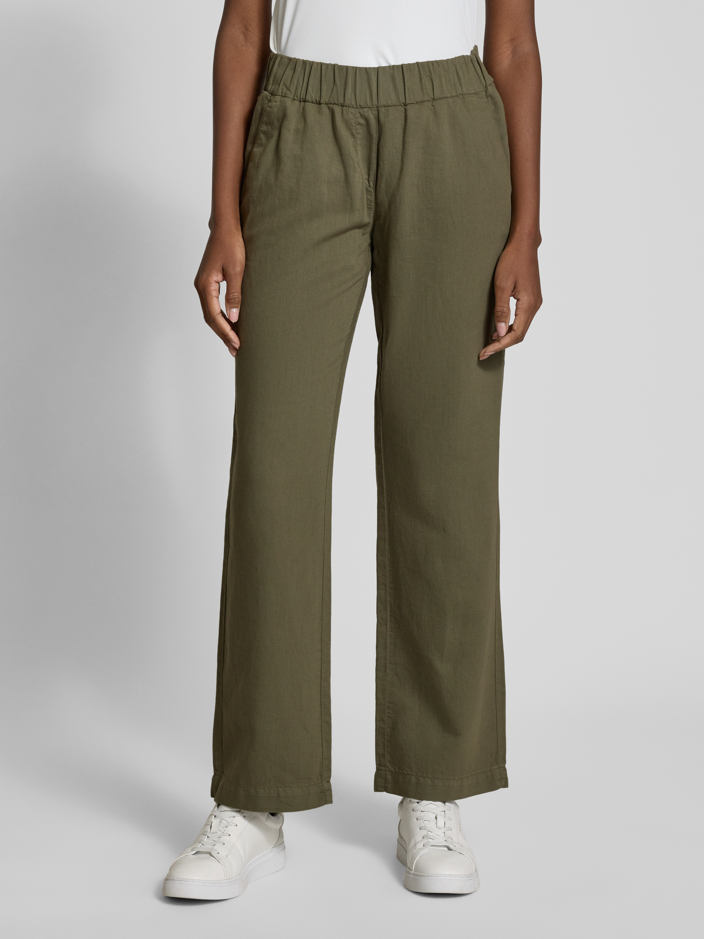 TONIWide leg jeans met elastische band, model 'Pia' in olijfgroen