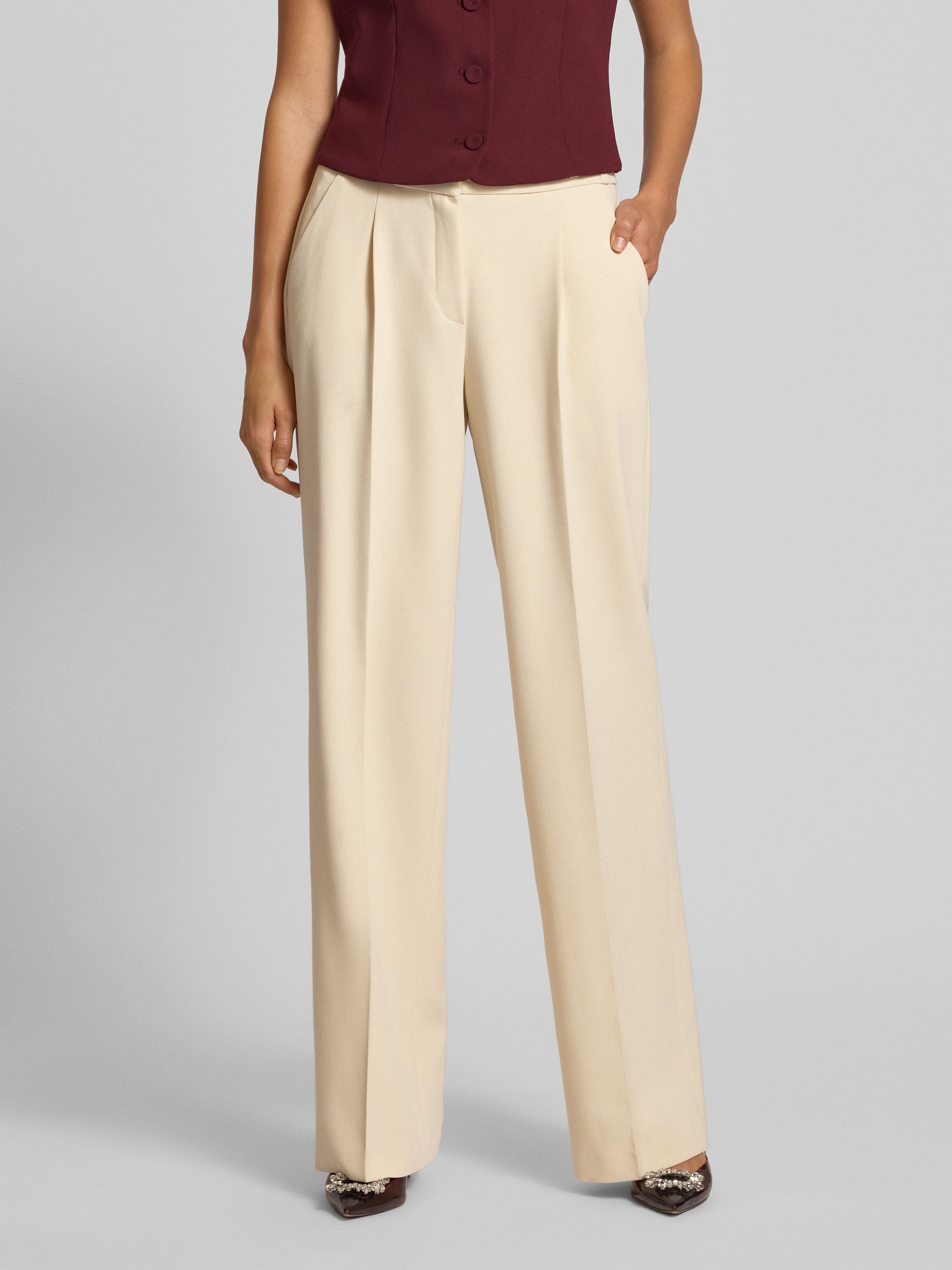 Wide leg stoffen broek met bandplooien, model 'luisa' in ecru