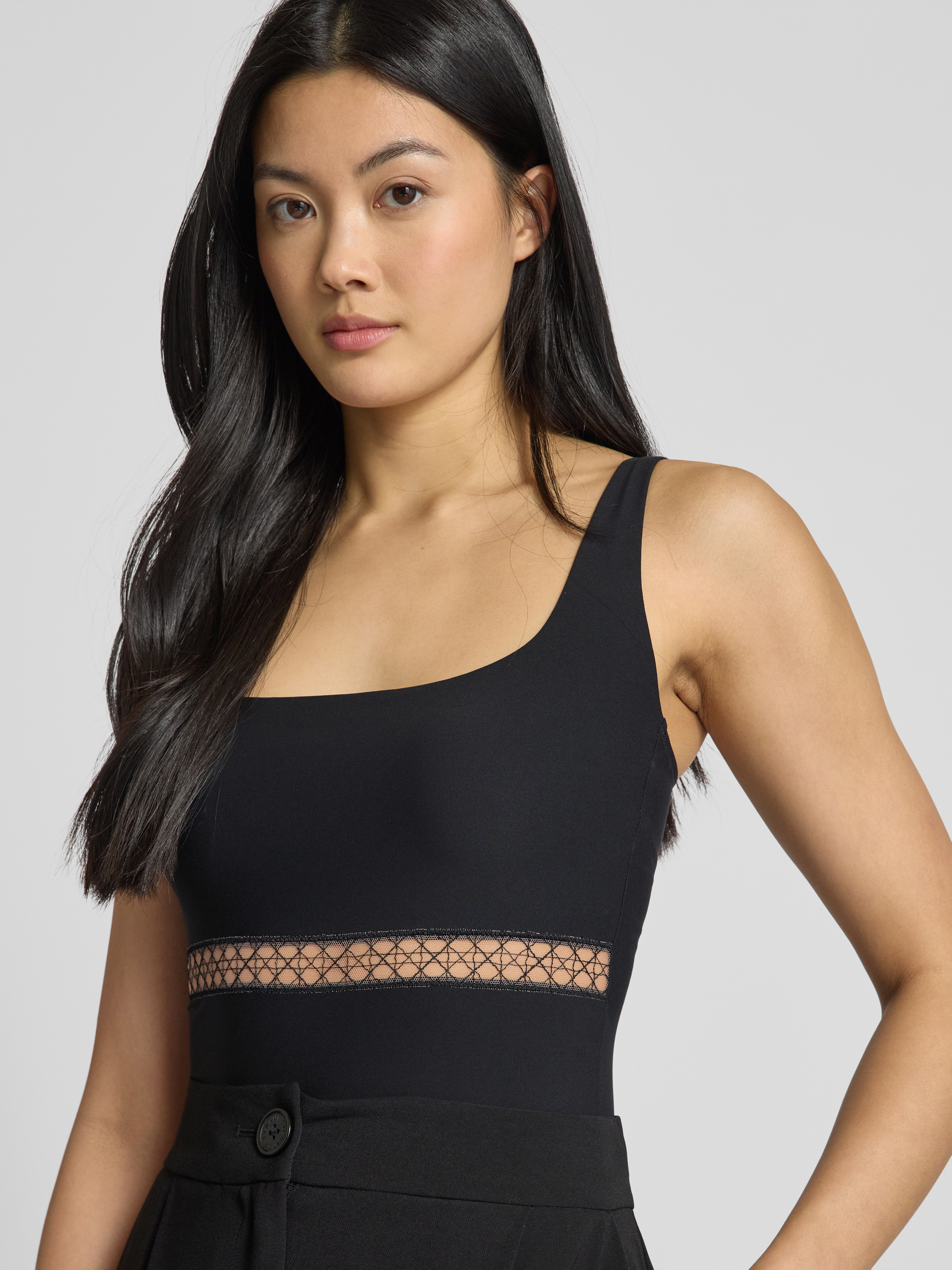 TriumphBody met vierkante hals, model 'PALINA COSMIC HEART'BEAT' in zwart