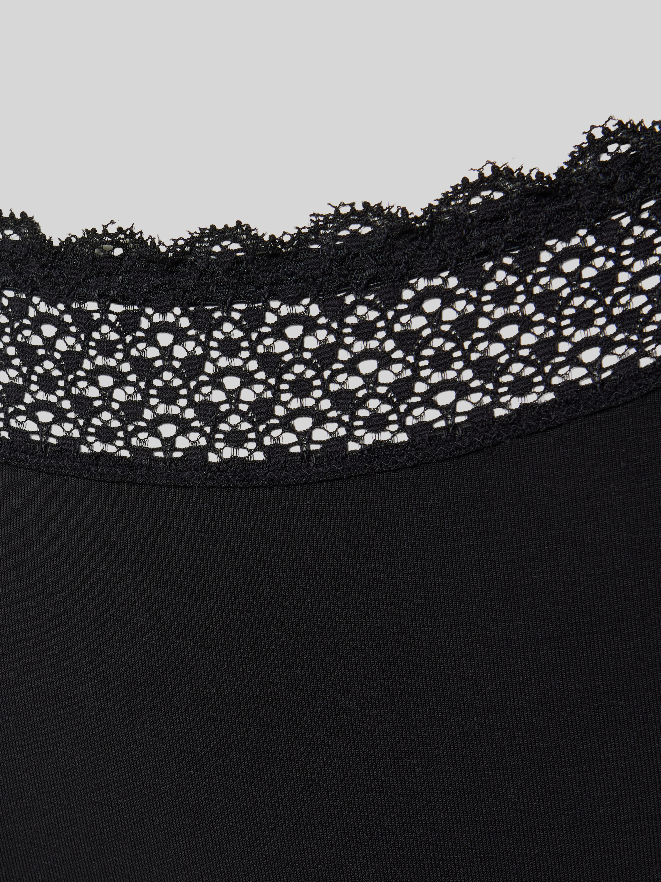 String met kantgarnering in zwart