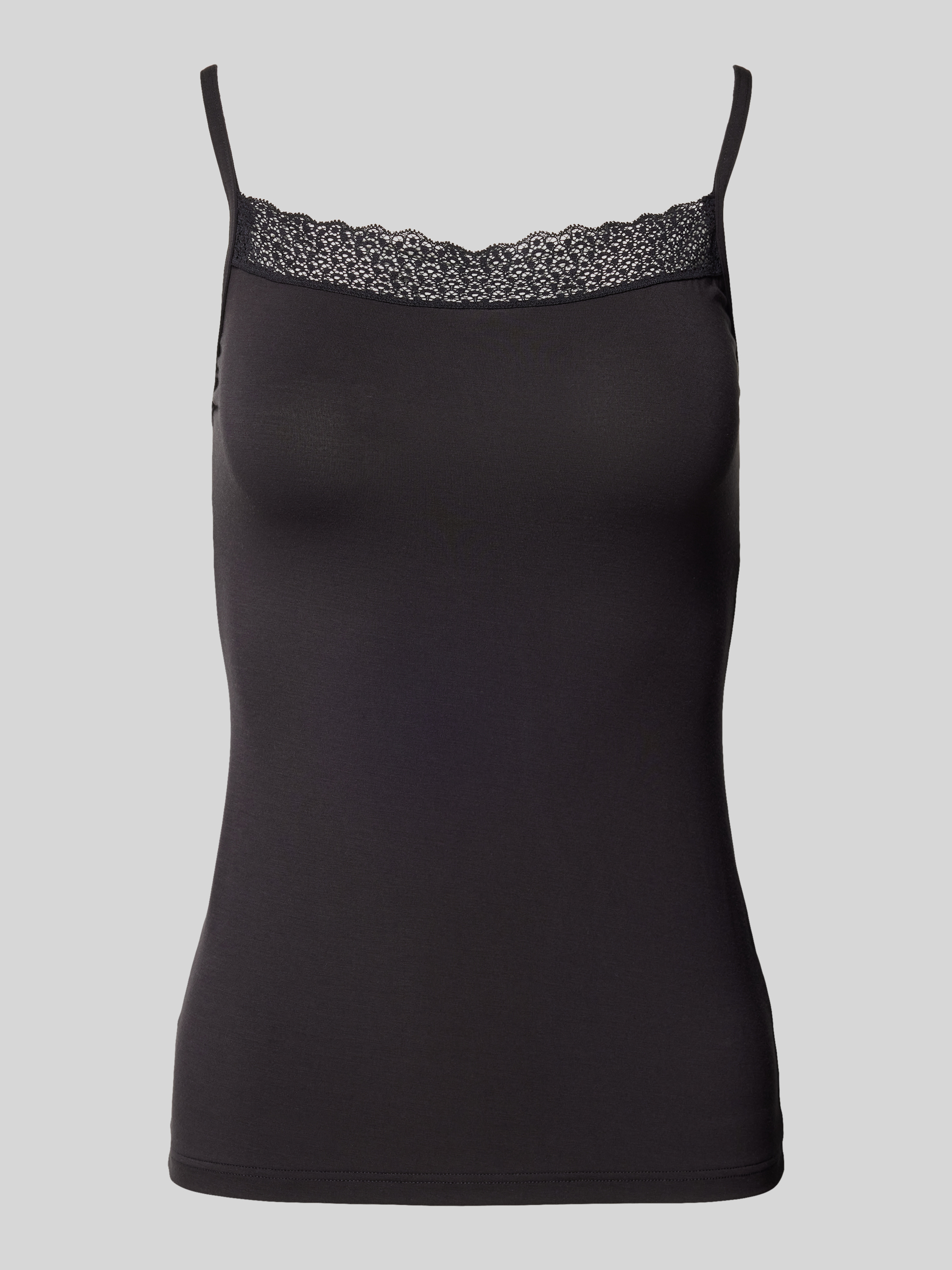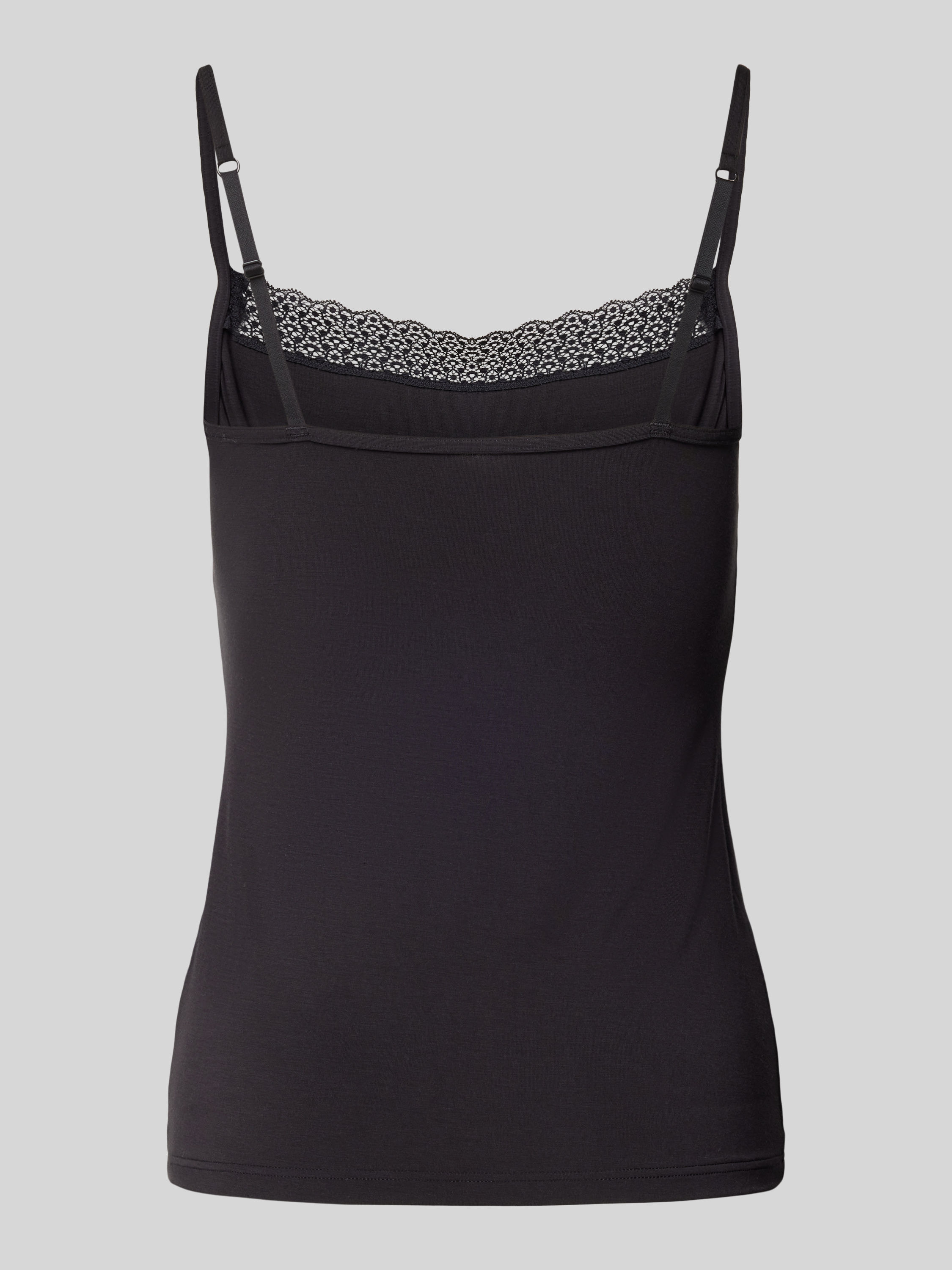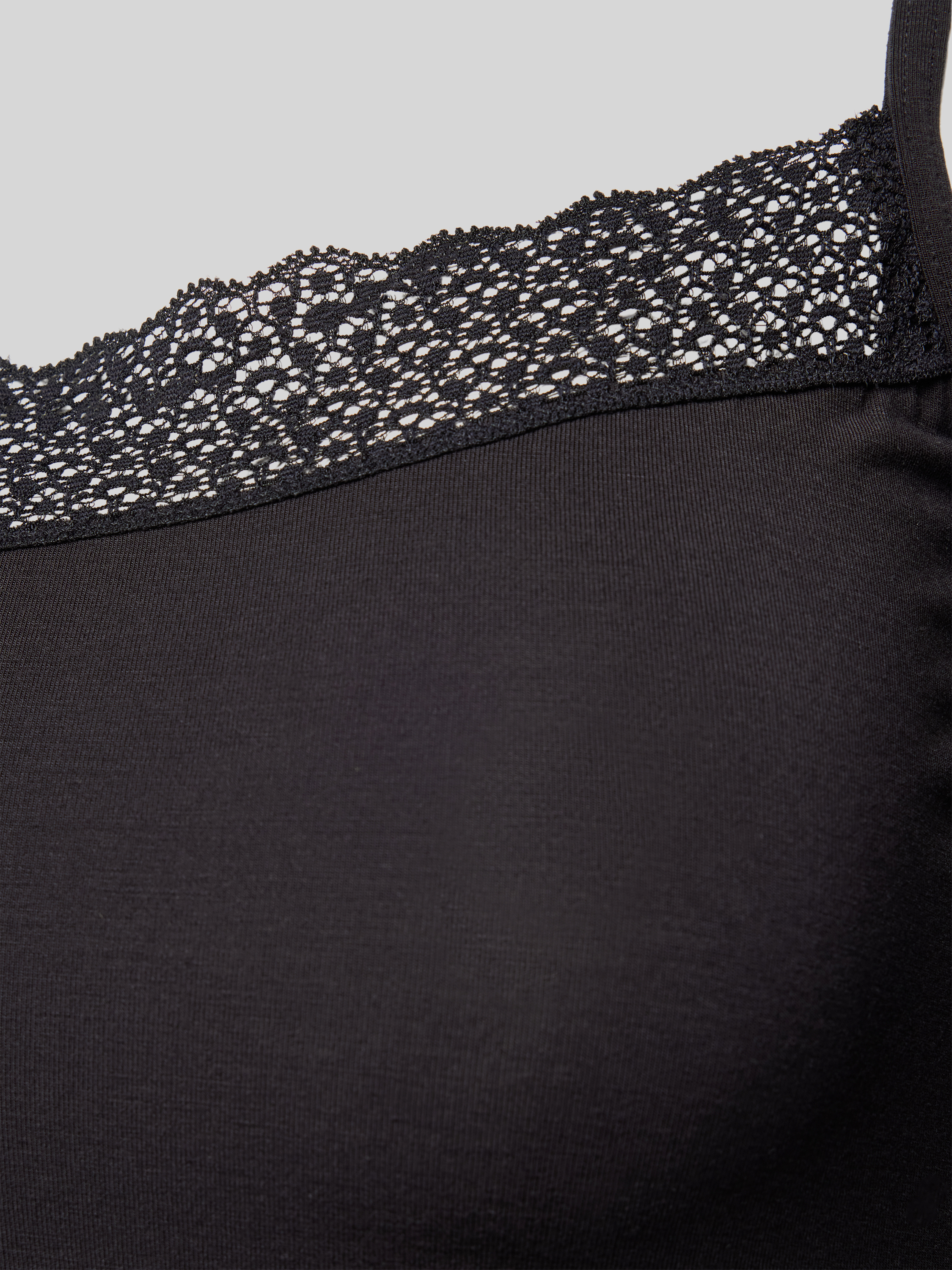 Top met spaghettibandjes en kant, model 'Feel of Modal' in zwart