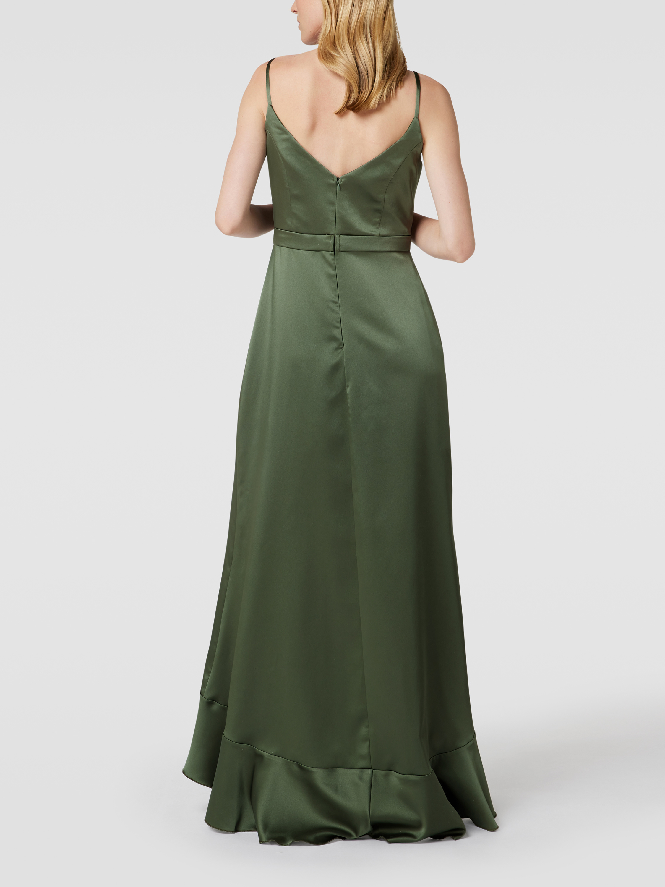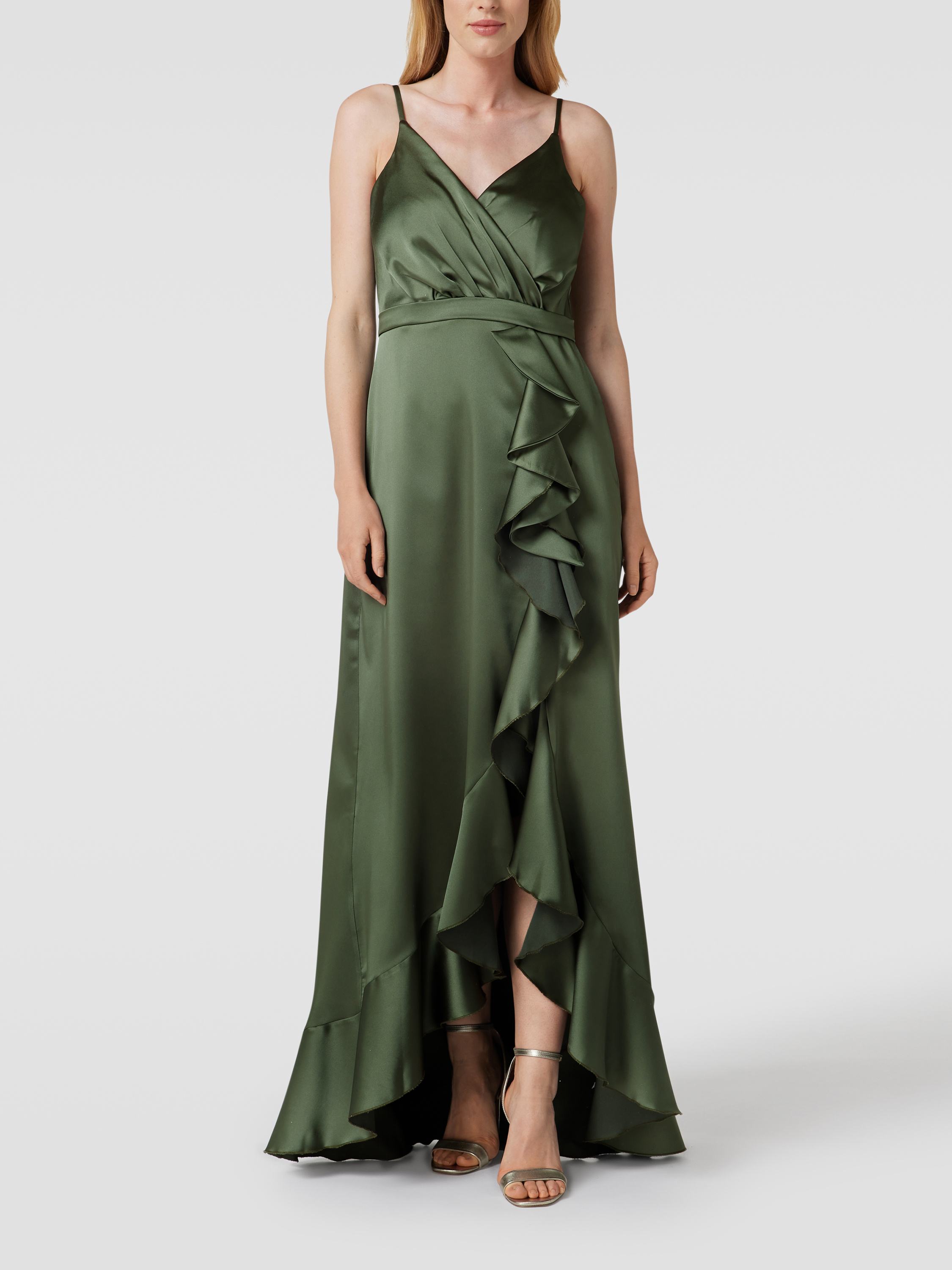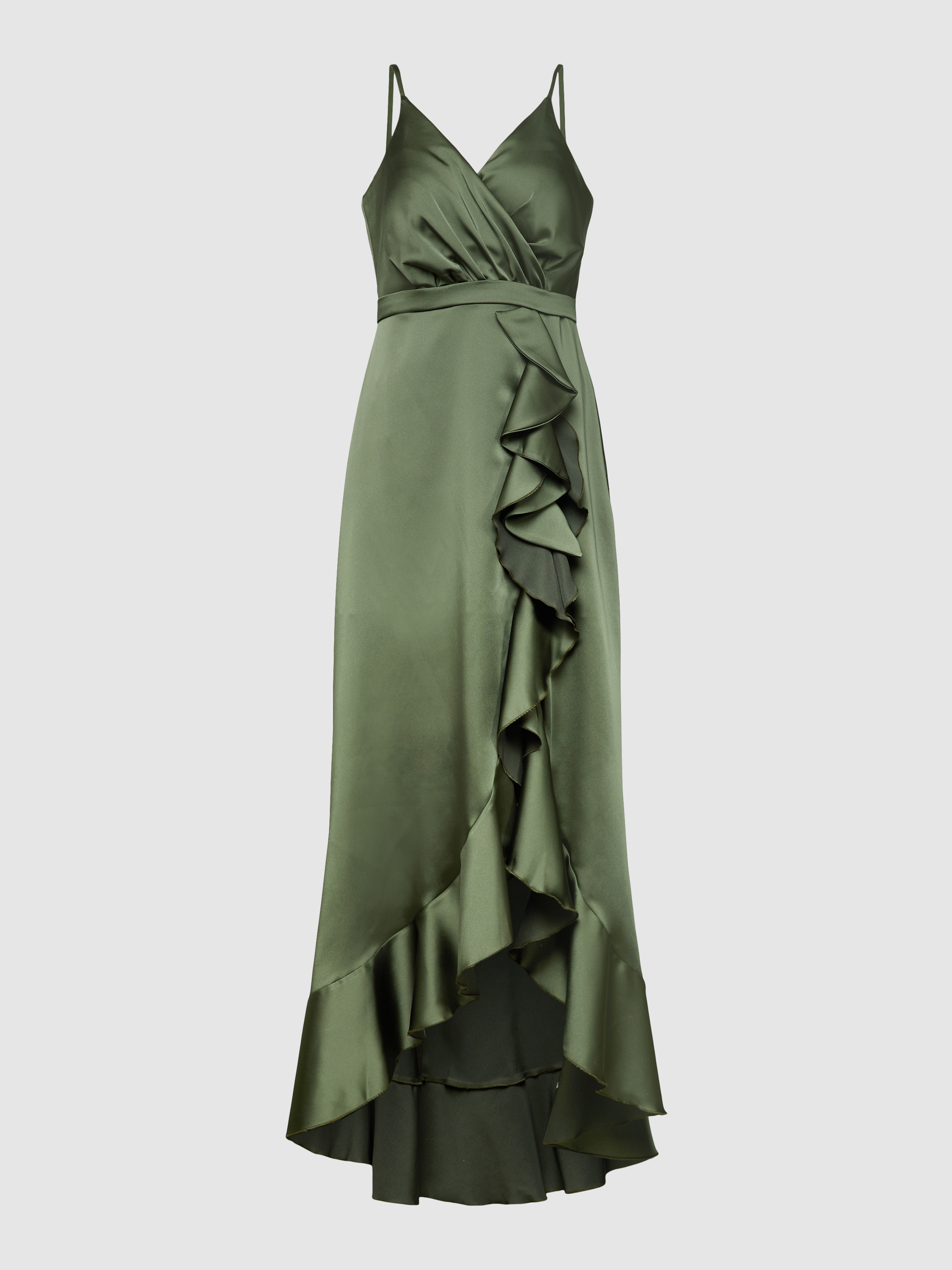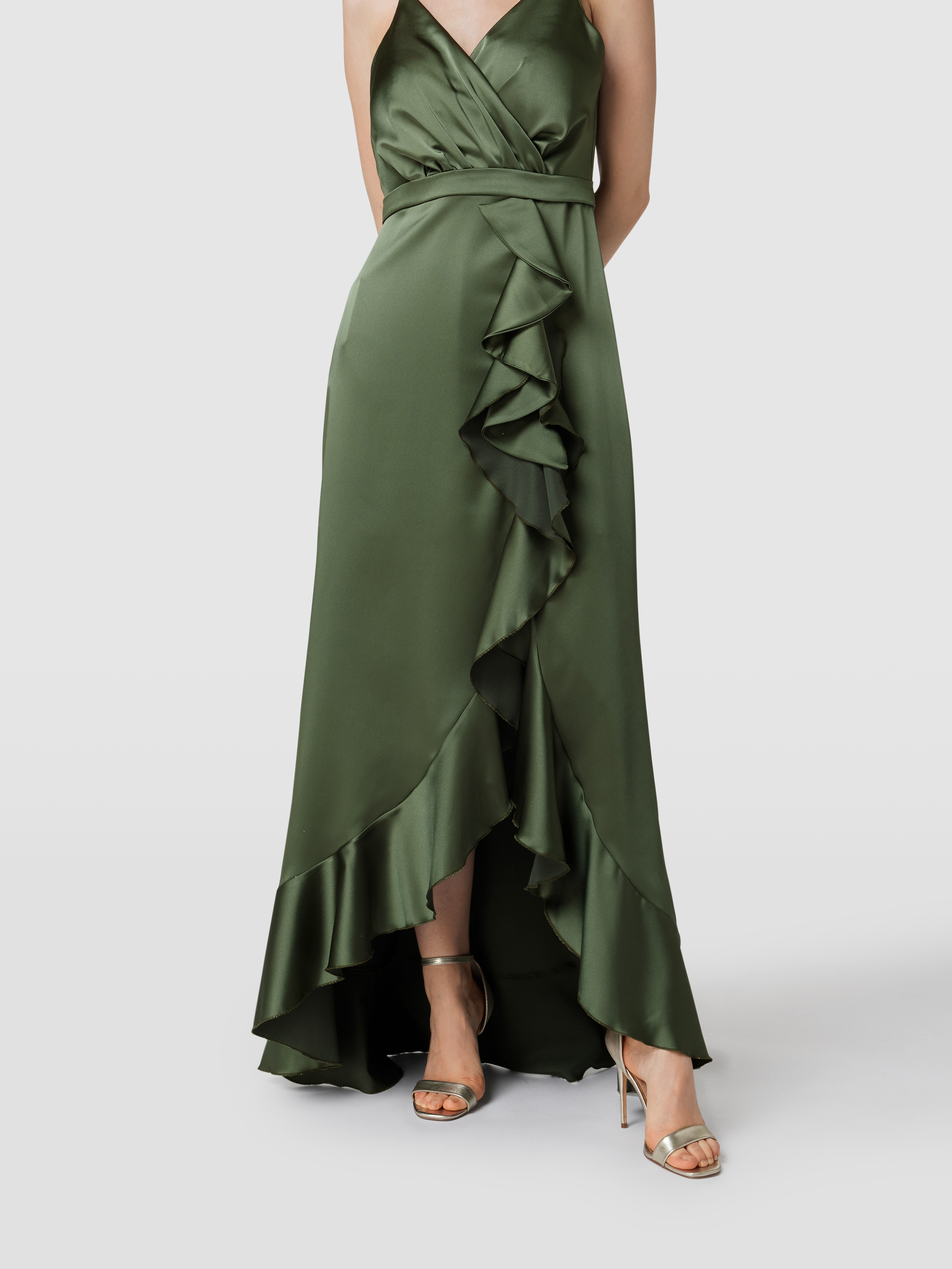 Avondjurk met volants in olijfgroen