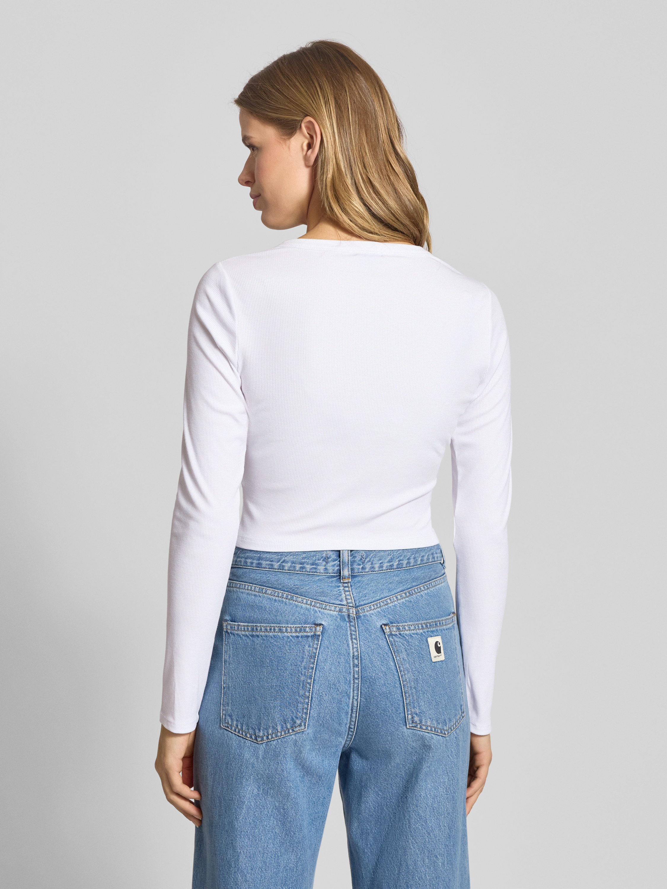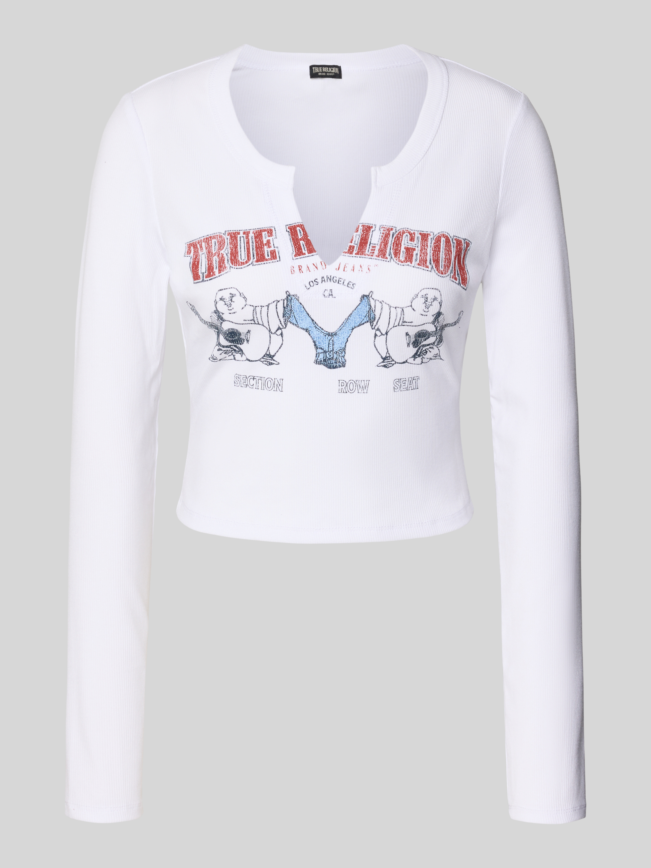Kort shirt met lange mouwen en labelprint, model 'BUDDHA' in wit