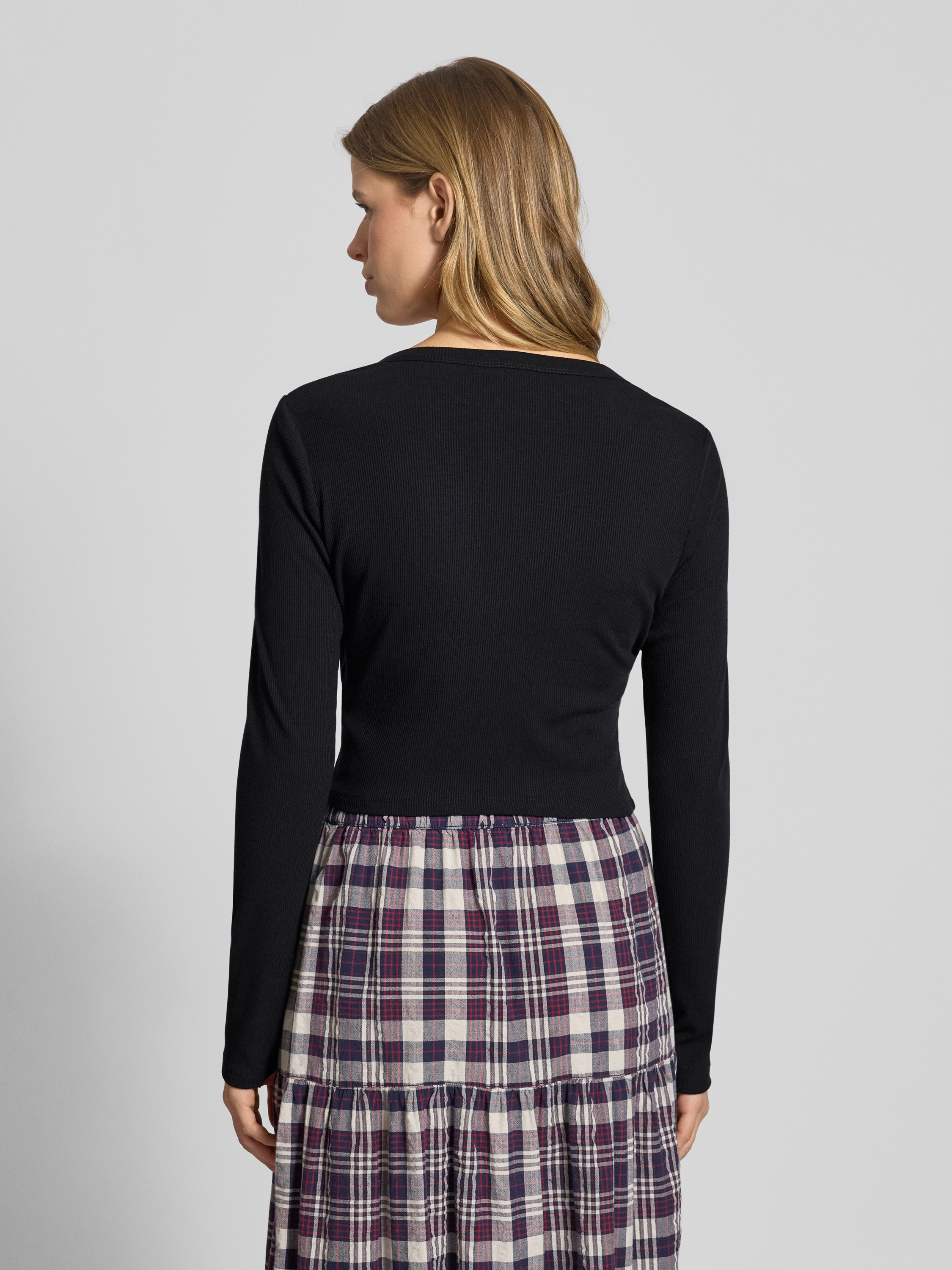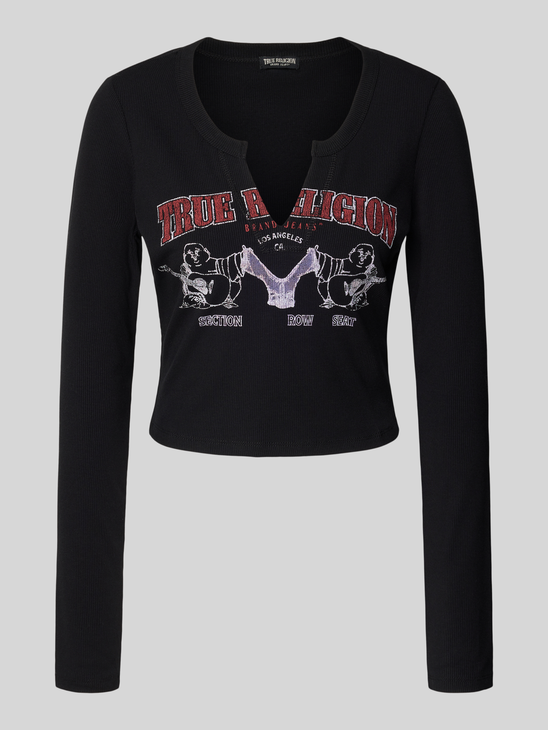 Kort shirt met lange mouwen en labelprint, model 'BUDDHA' in zwart