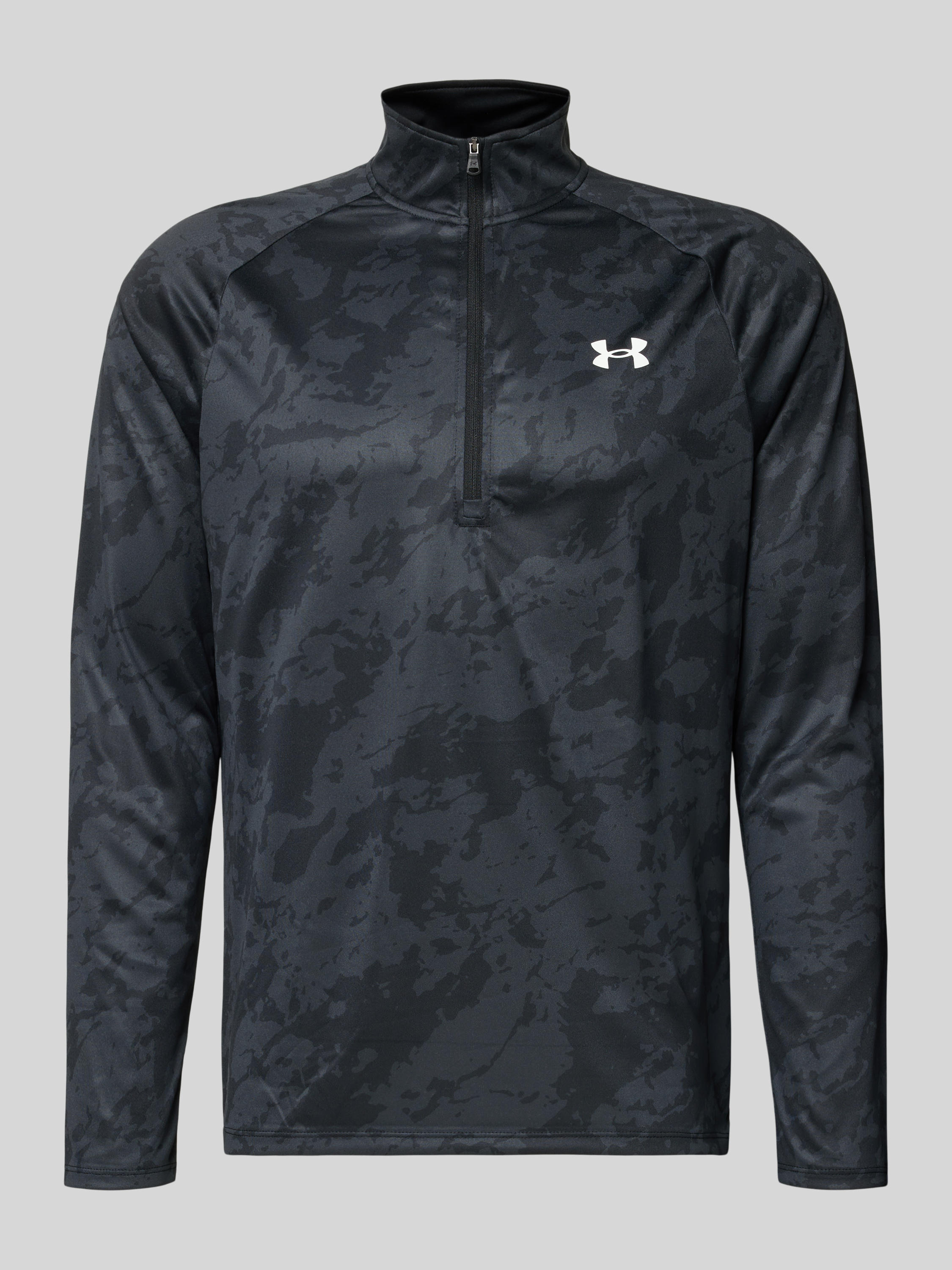 Regular fit shirt met lange mouwen en ritssluiting, model 'Tech' in zwart