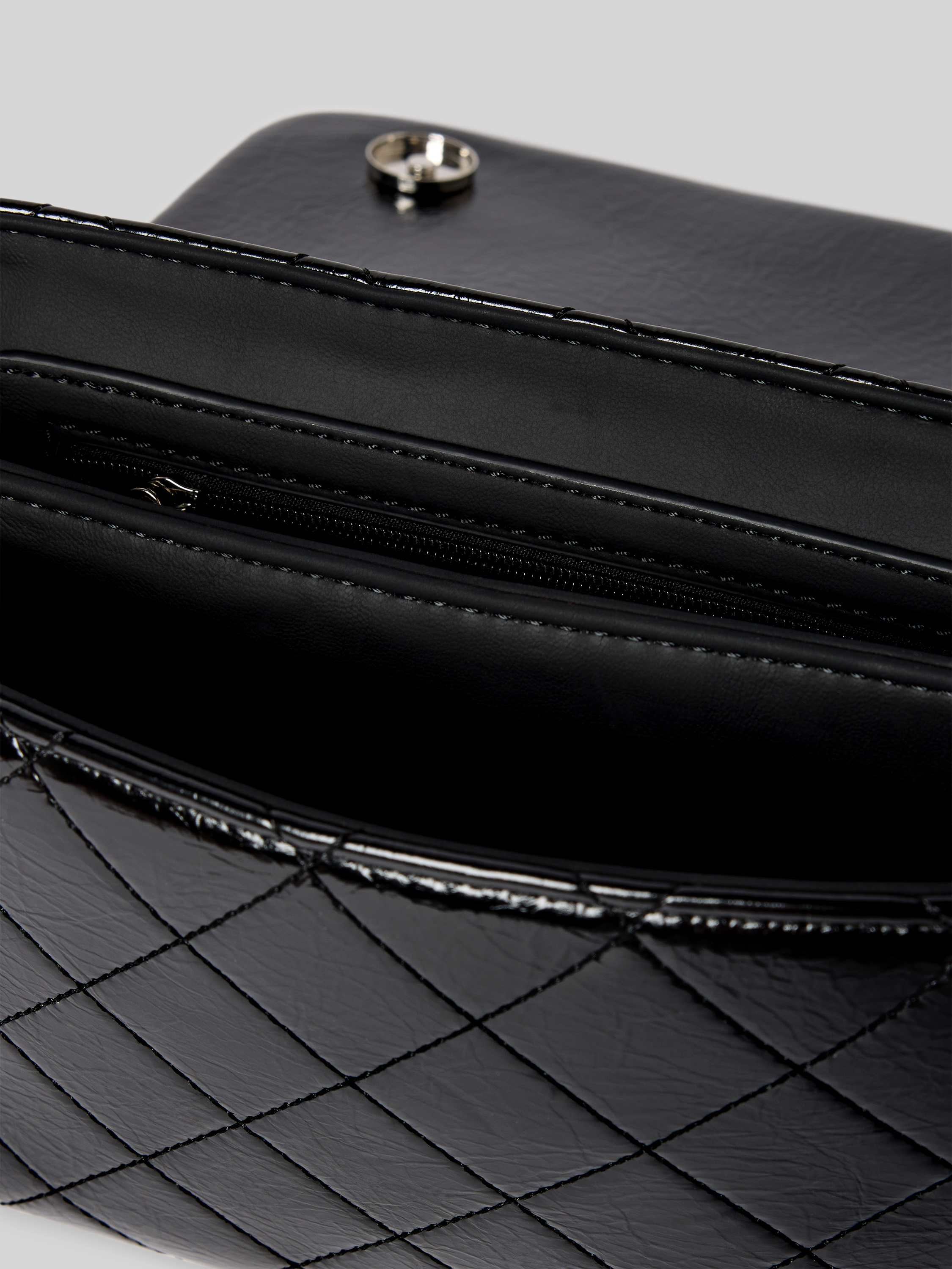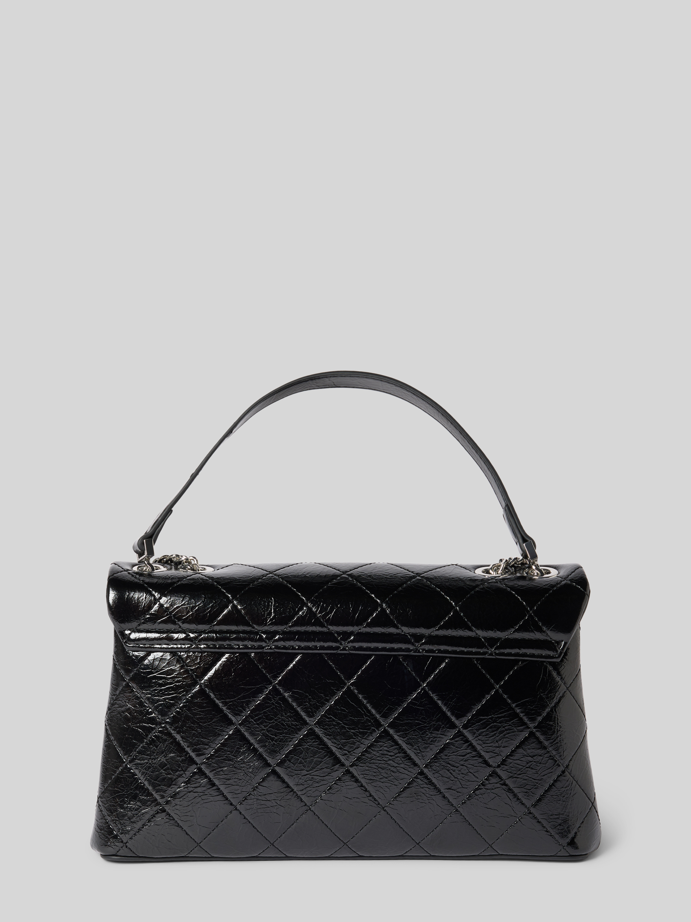 Handtas met doorgestikte naden en labelapplicatie, model 'WAKANDA' in zwart
