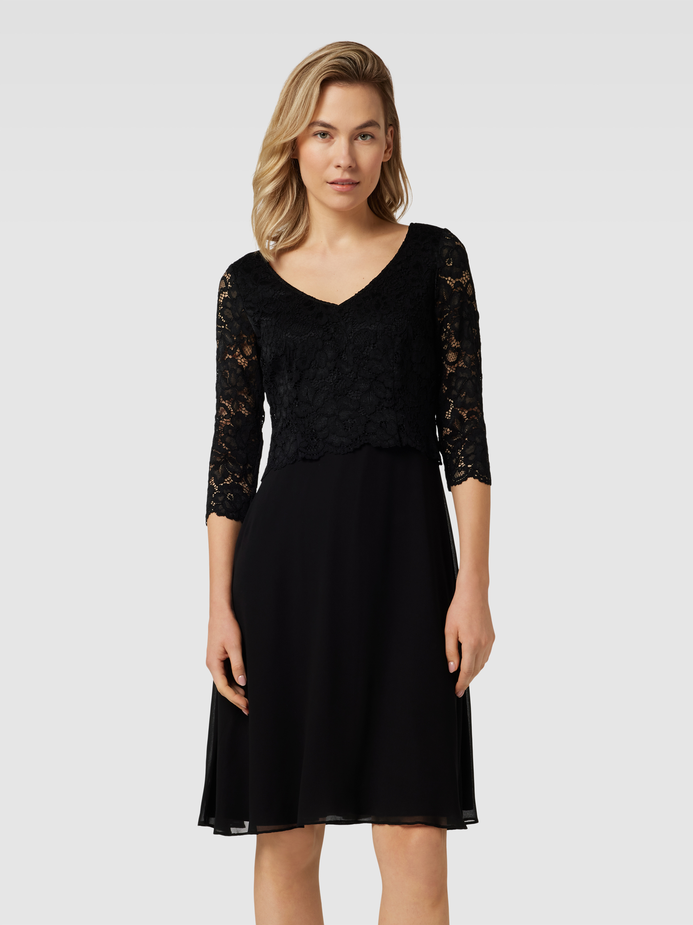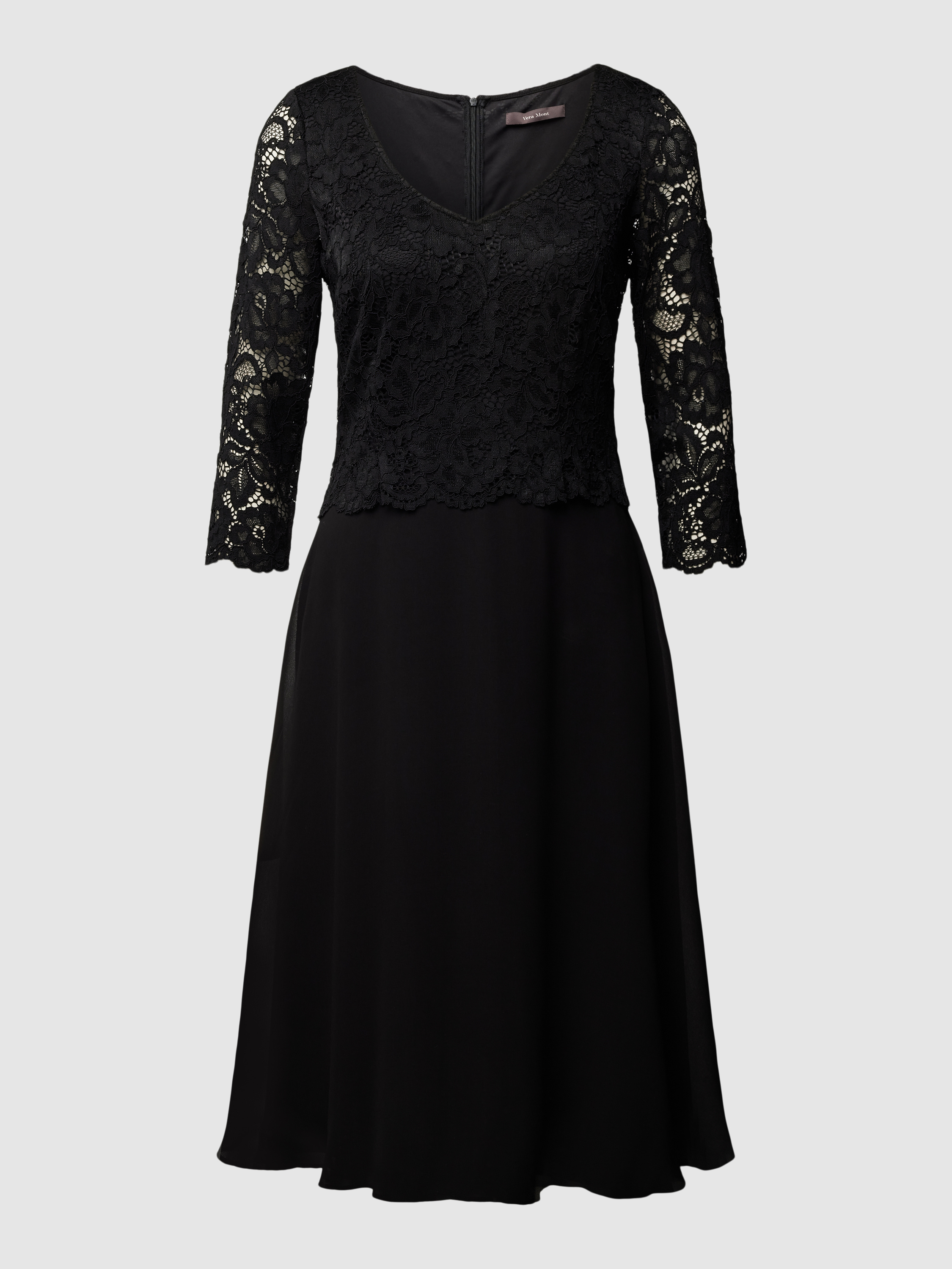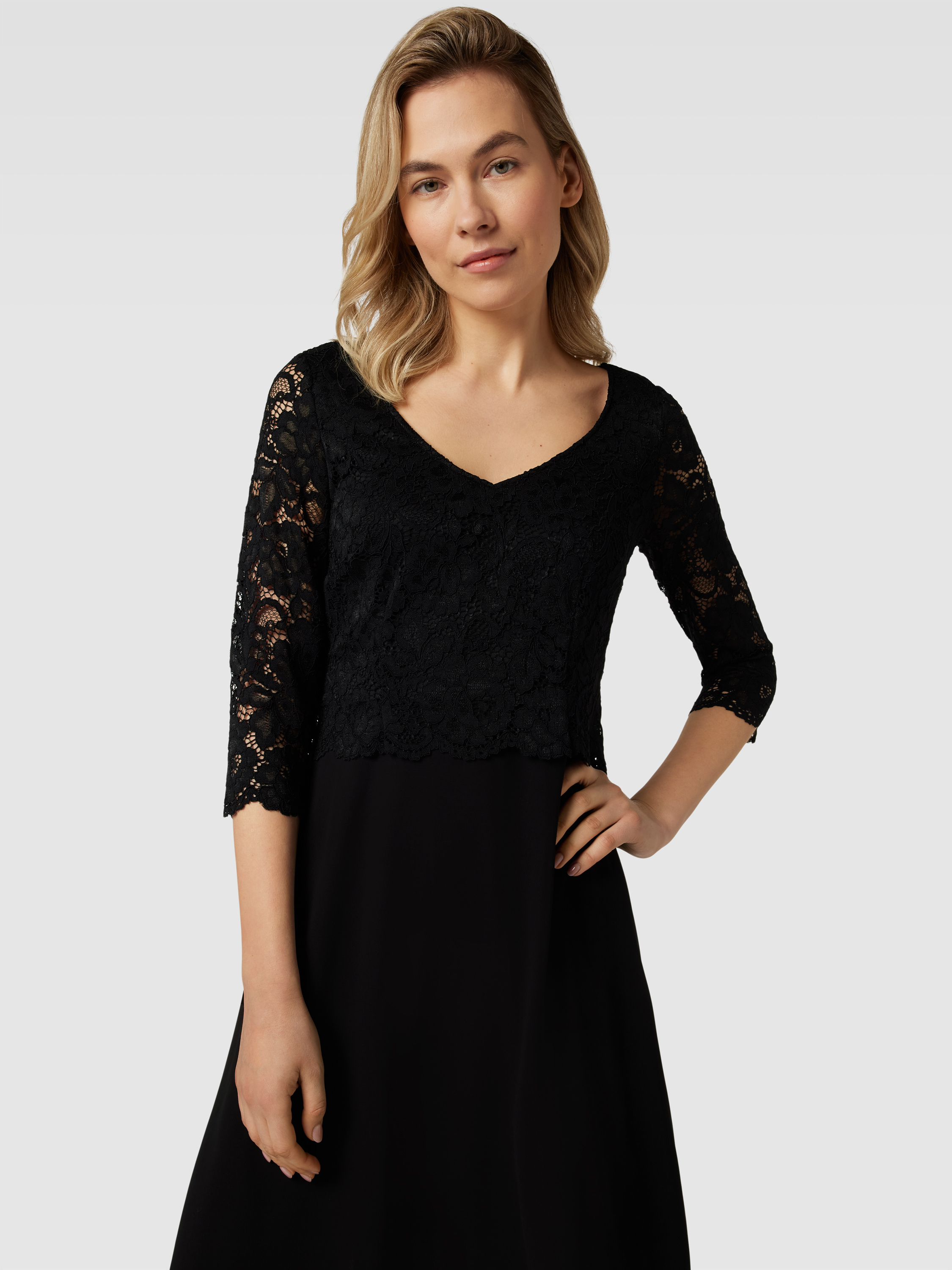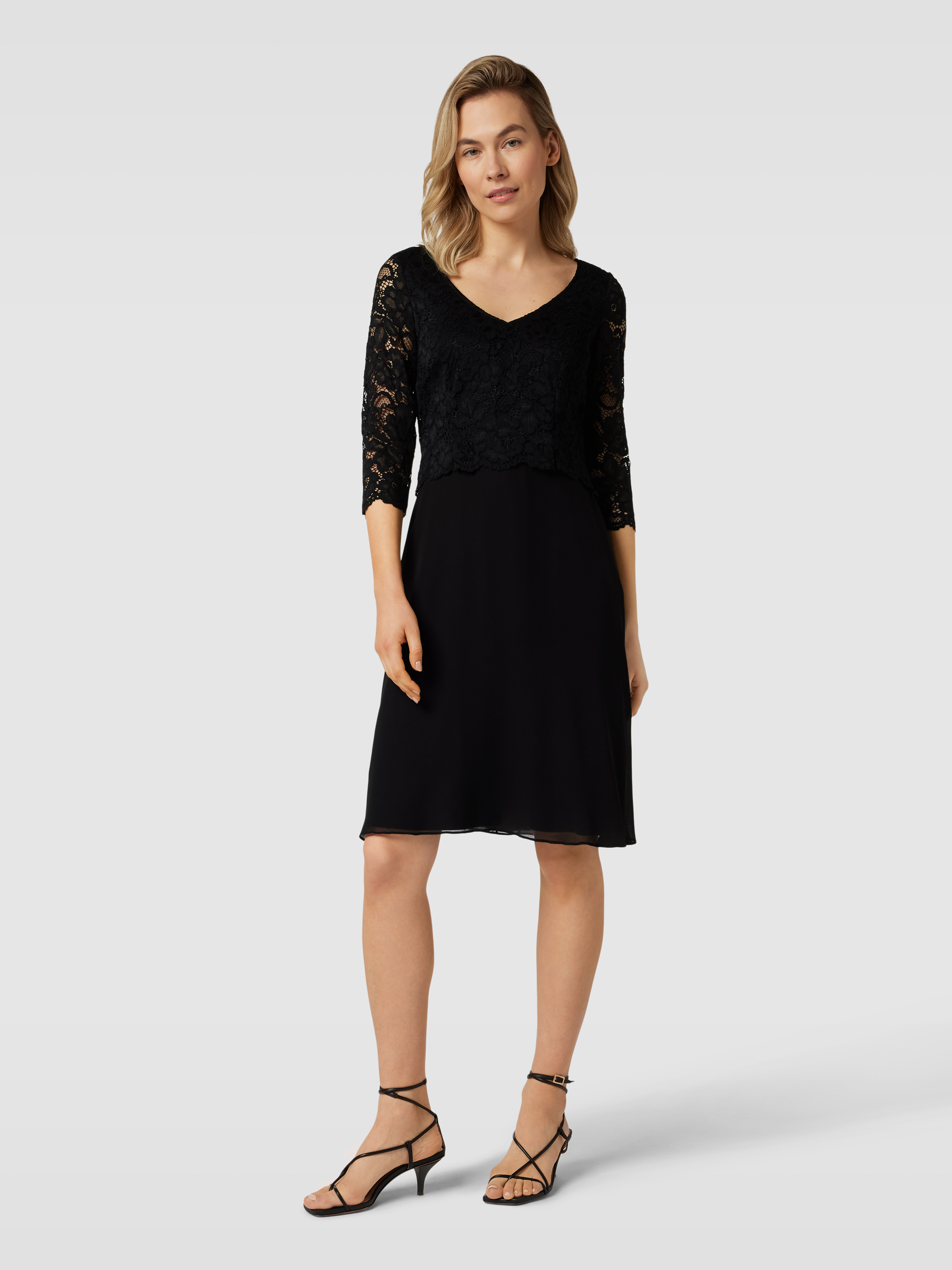 Vera MontKnielange cocktailjurk met 3/4-mouwen in zwart