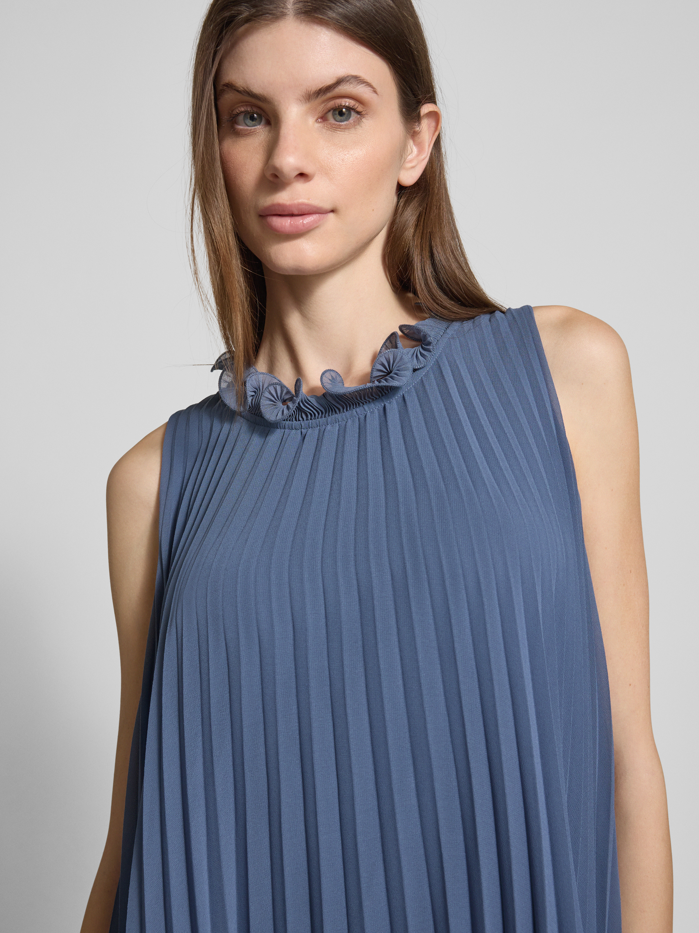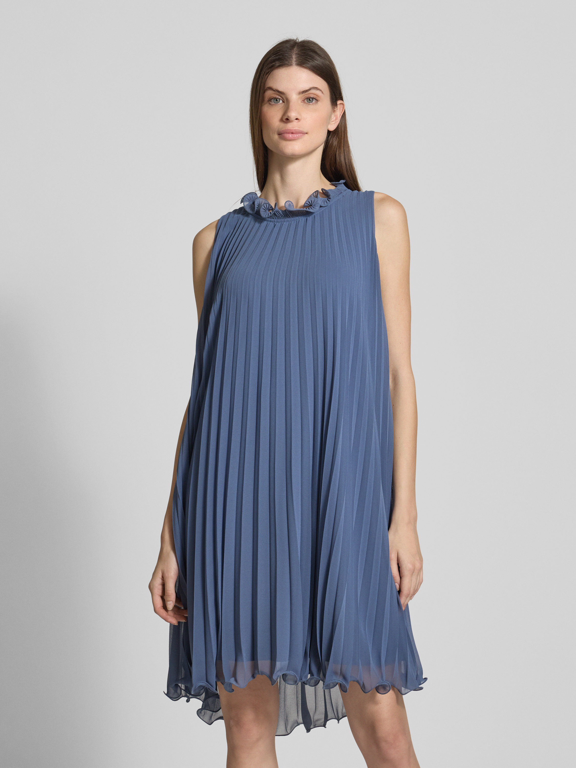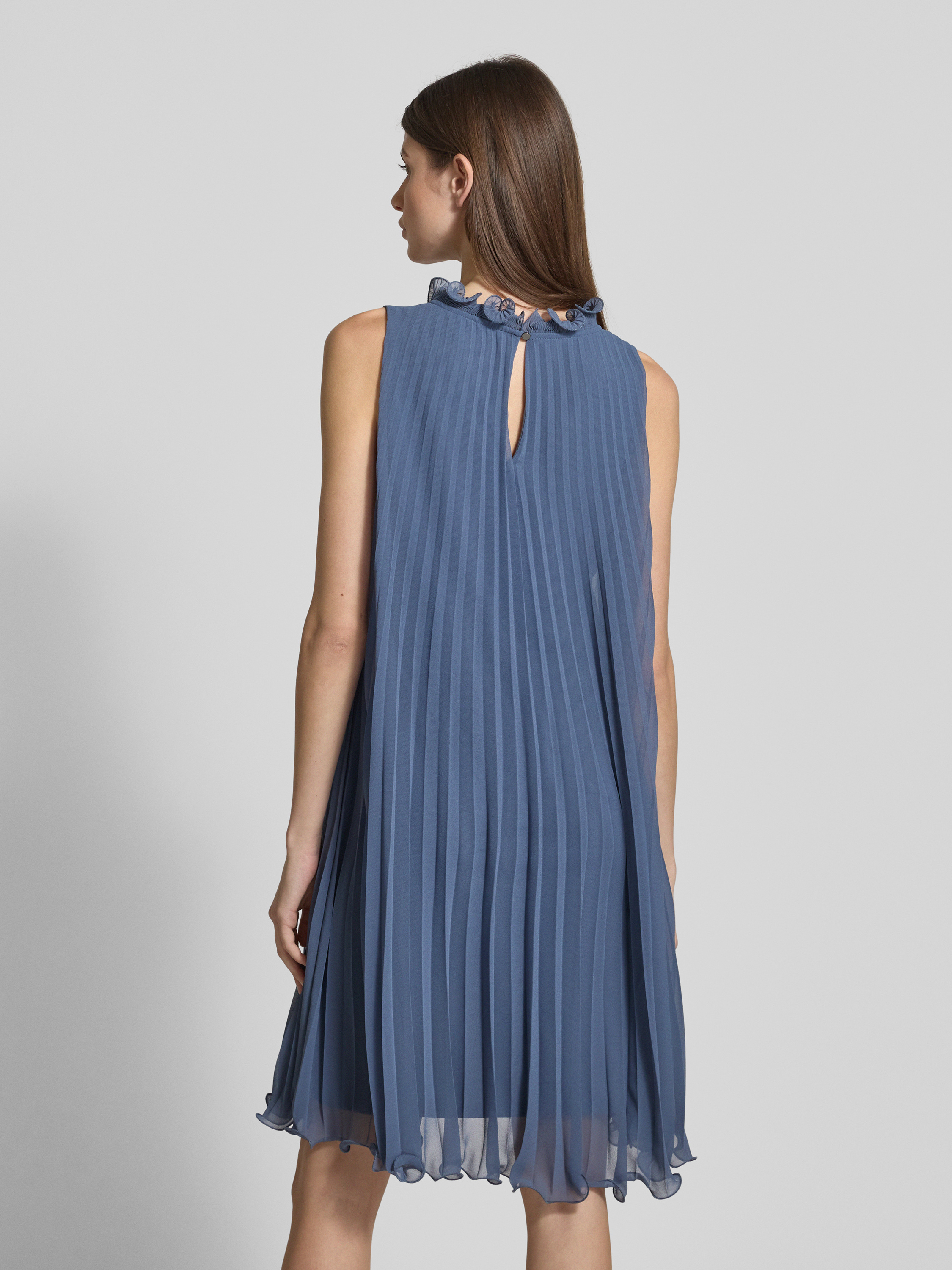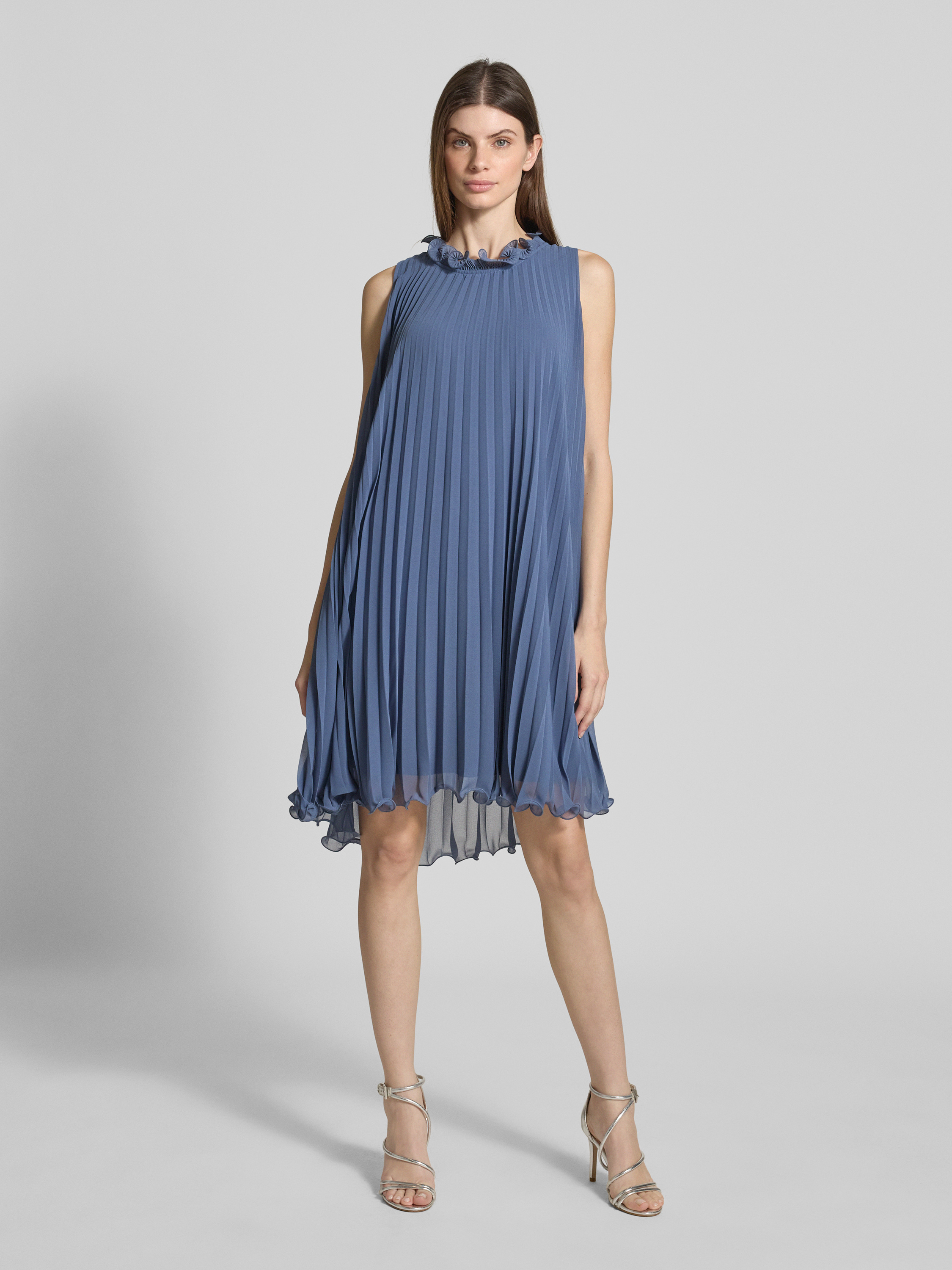 Knielange cocktailjurk met plissévouwen in rookblauw