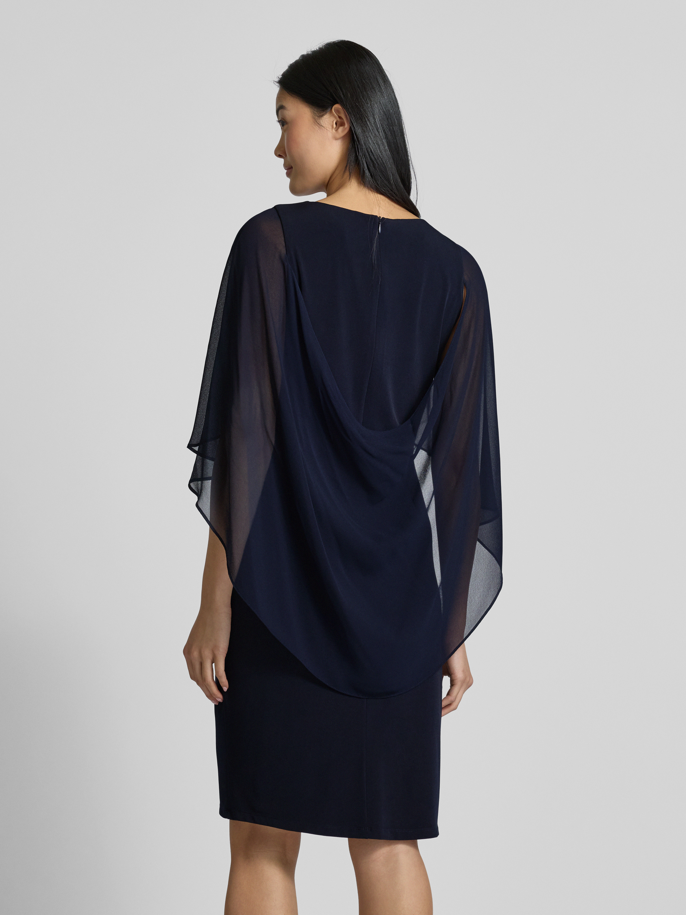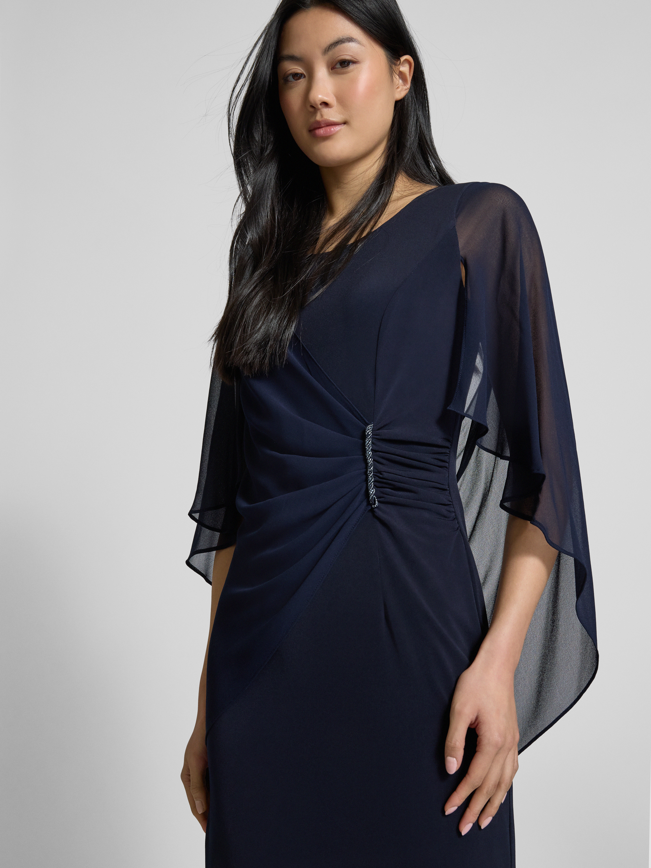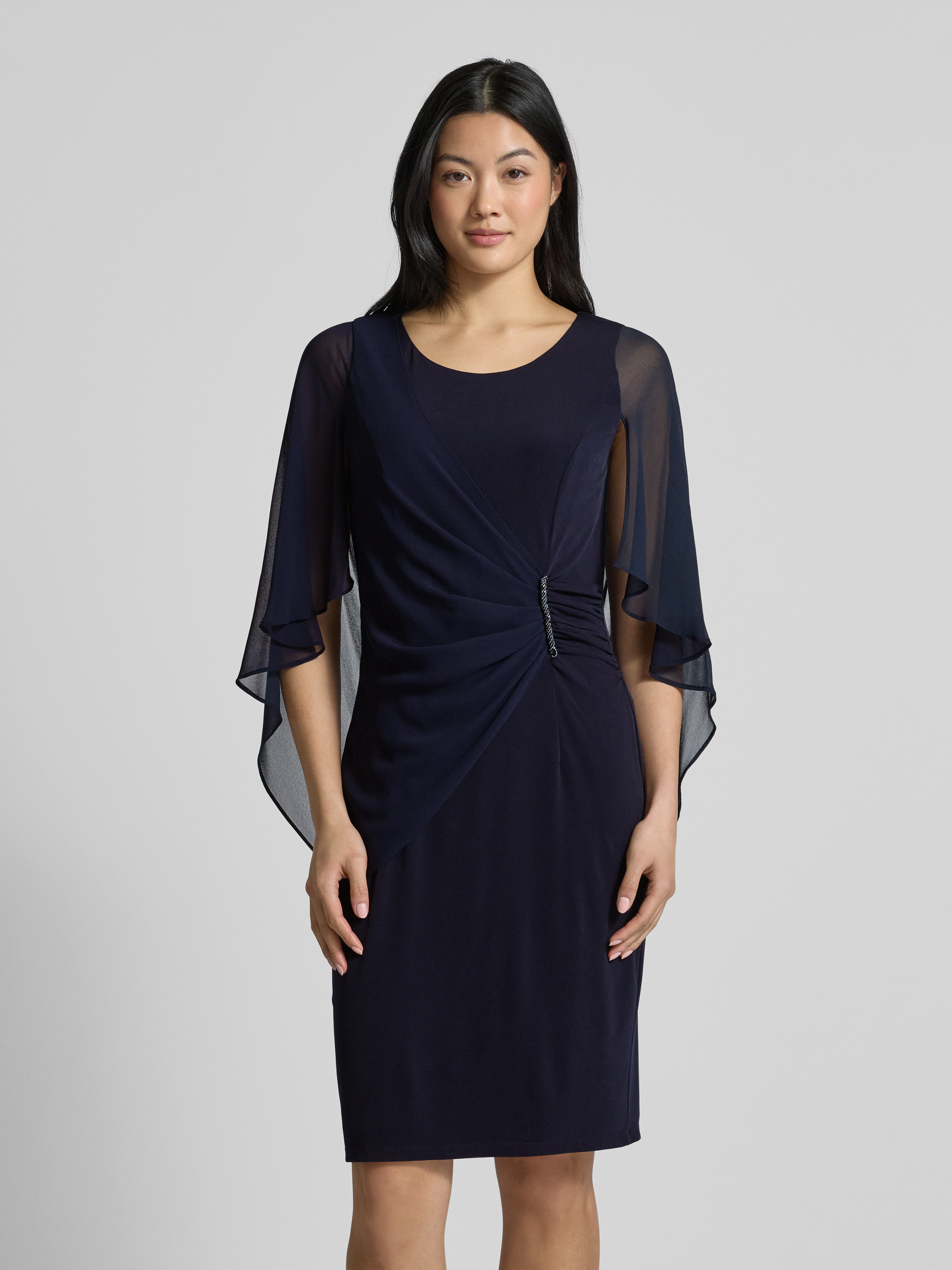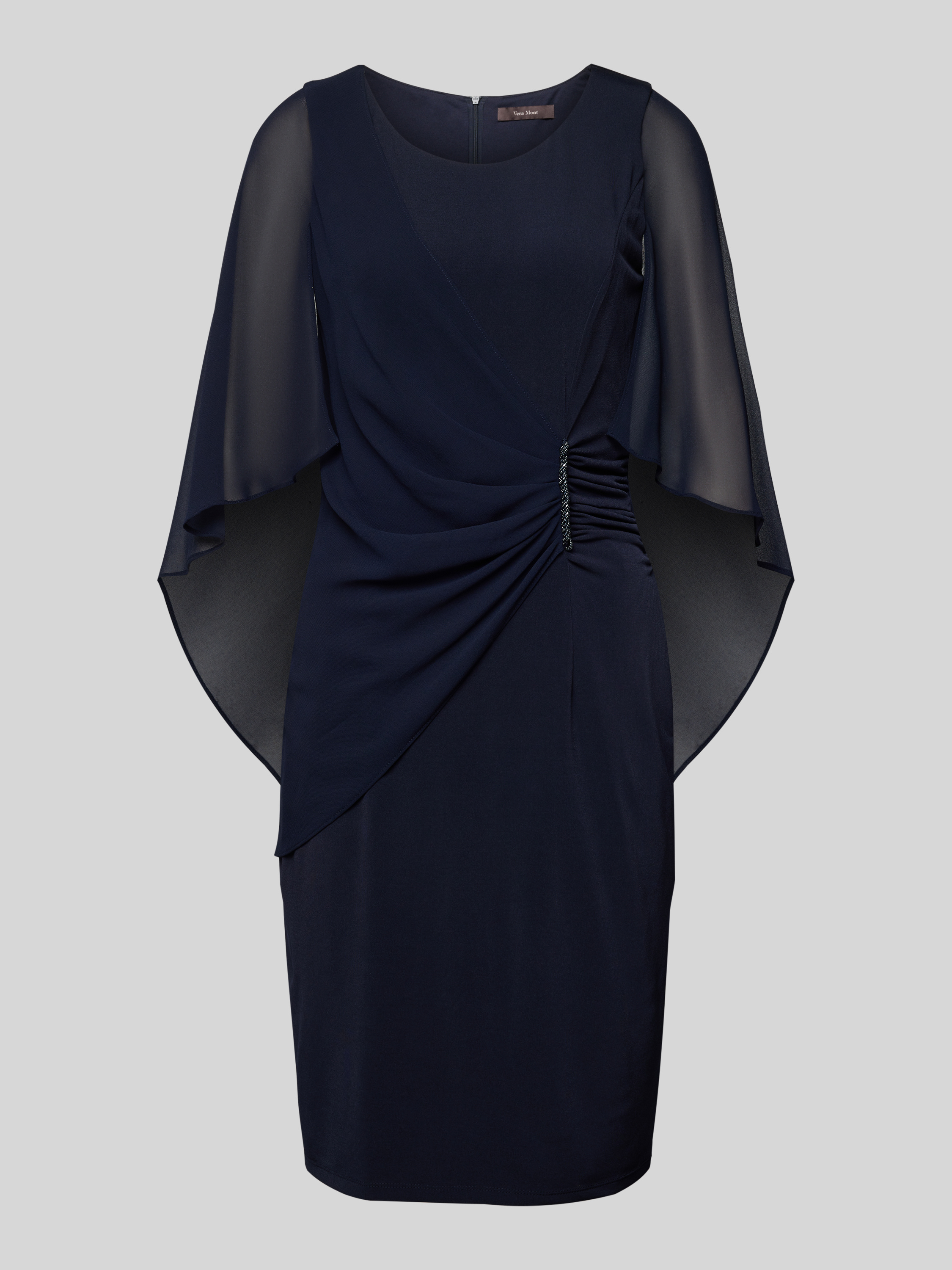 Vera MontKnielange cocktailjurk met plooien opzij in donkerblauw