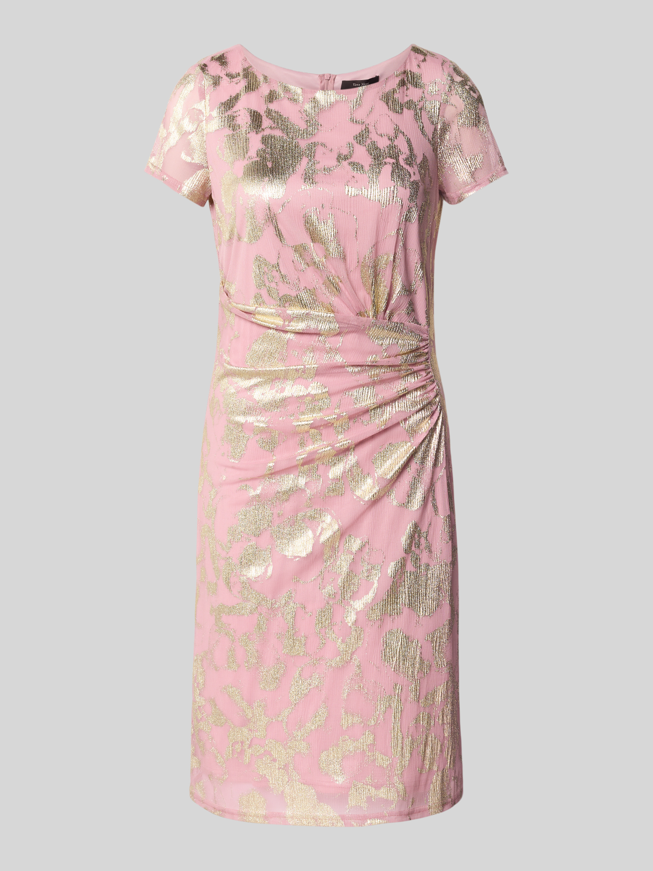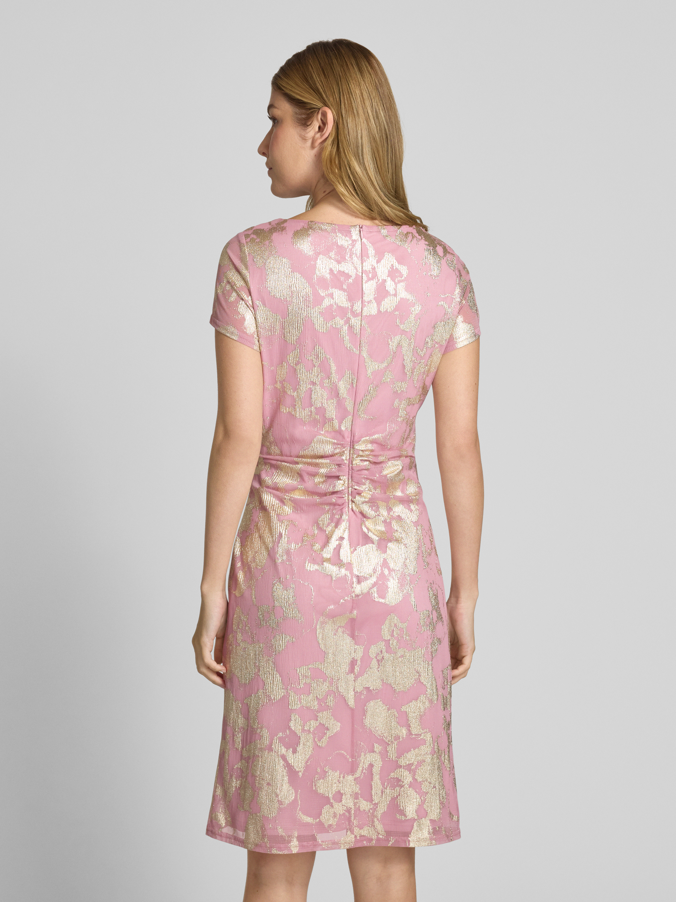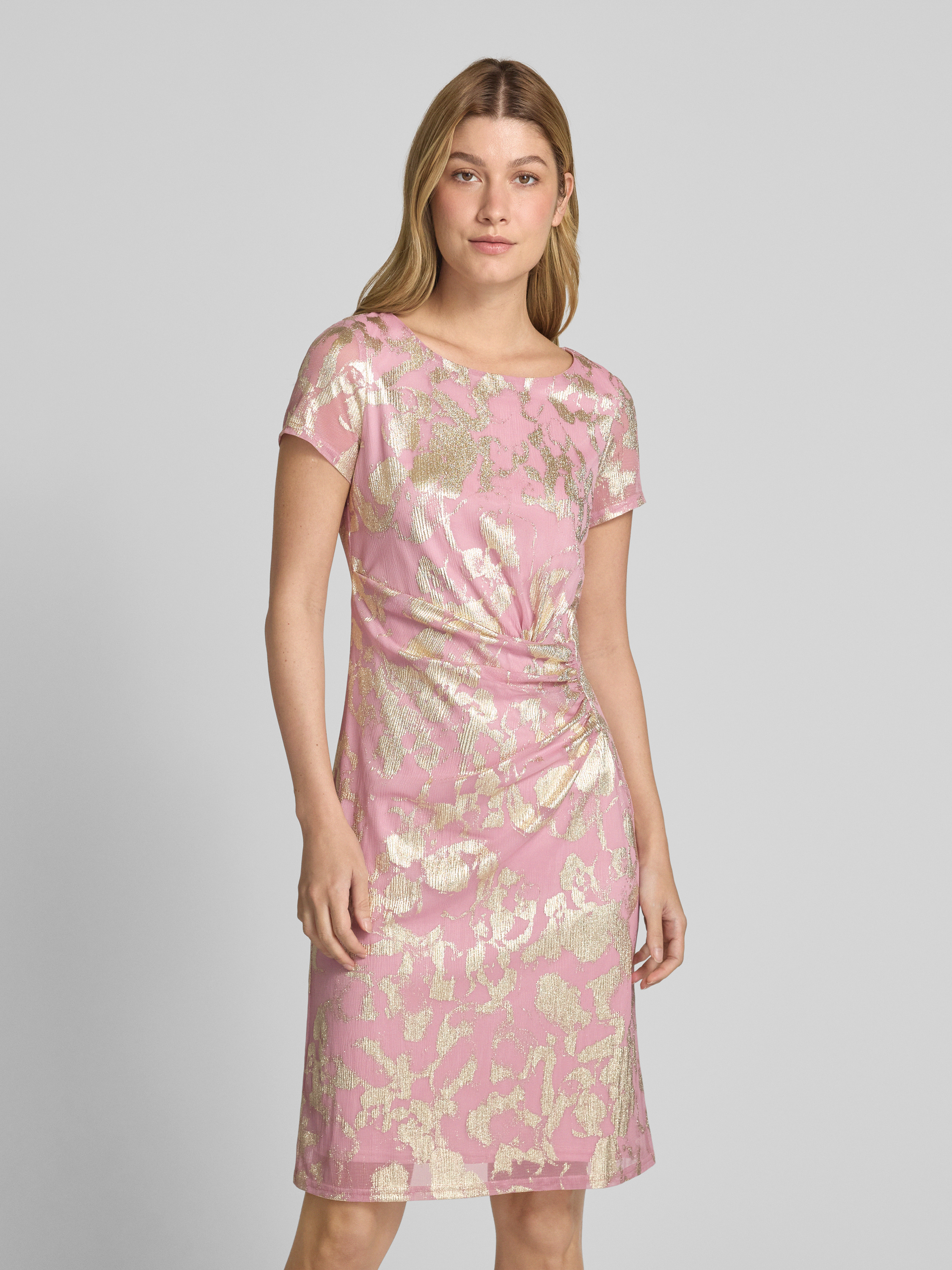 Knielange cocktailjurk met plooien opzij in lichtroze