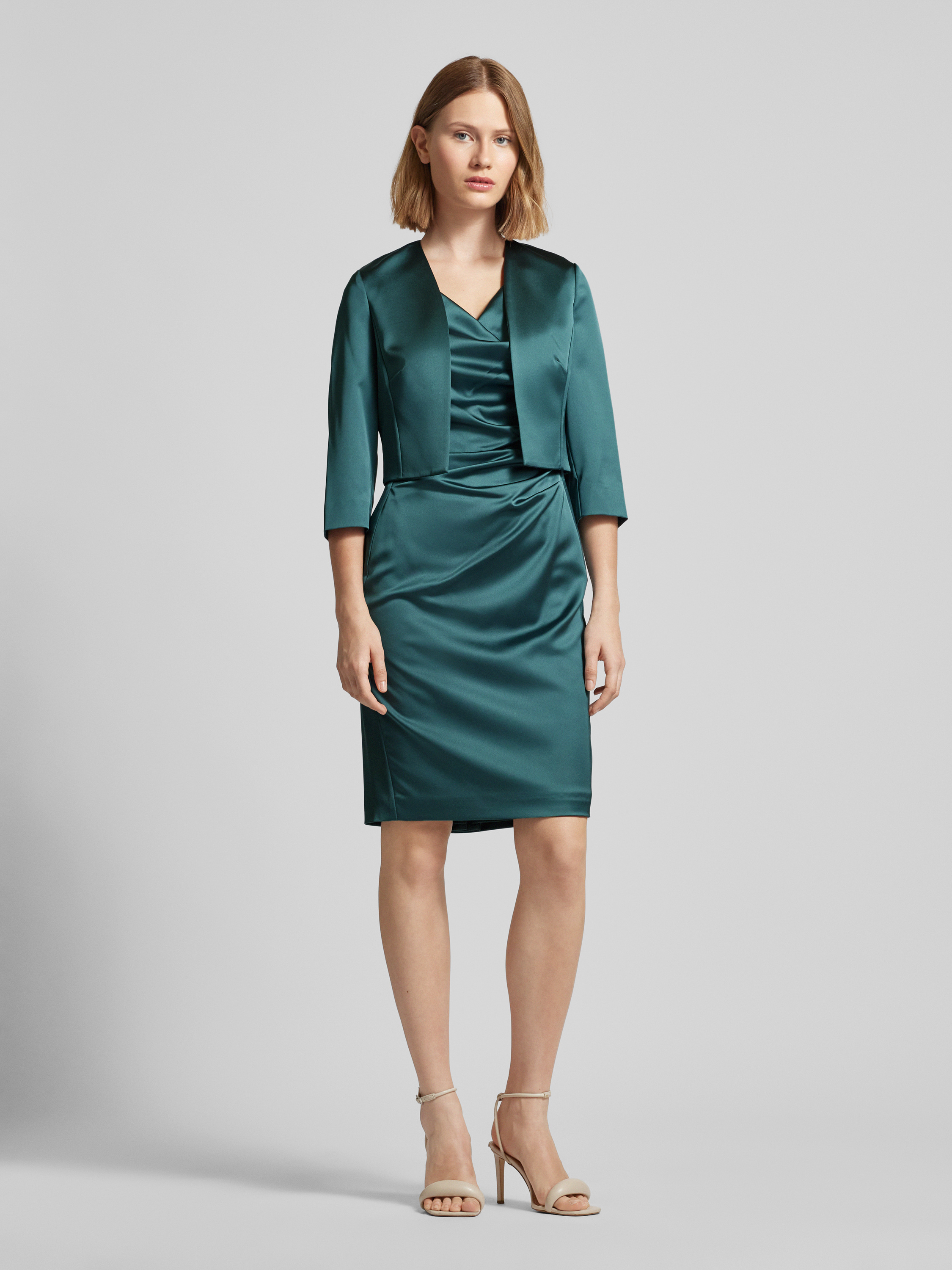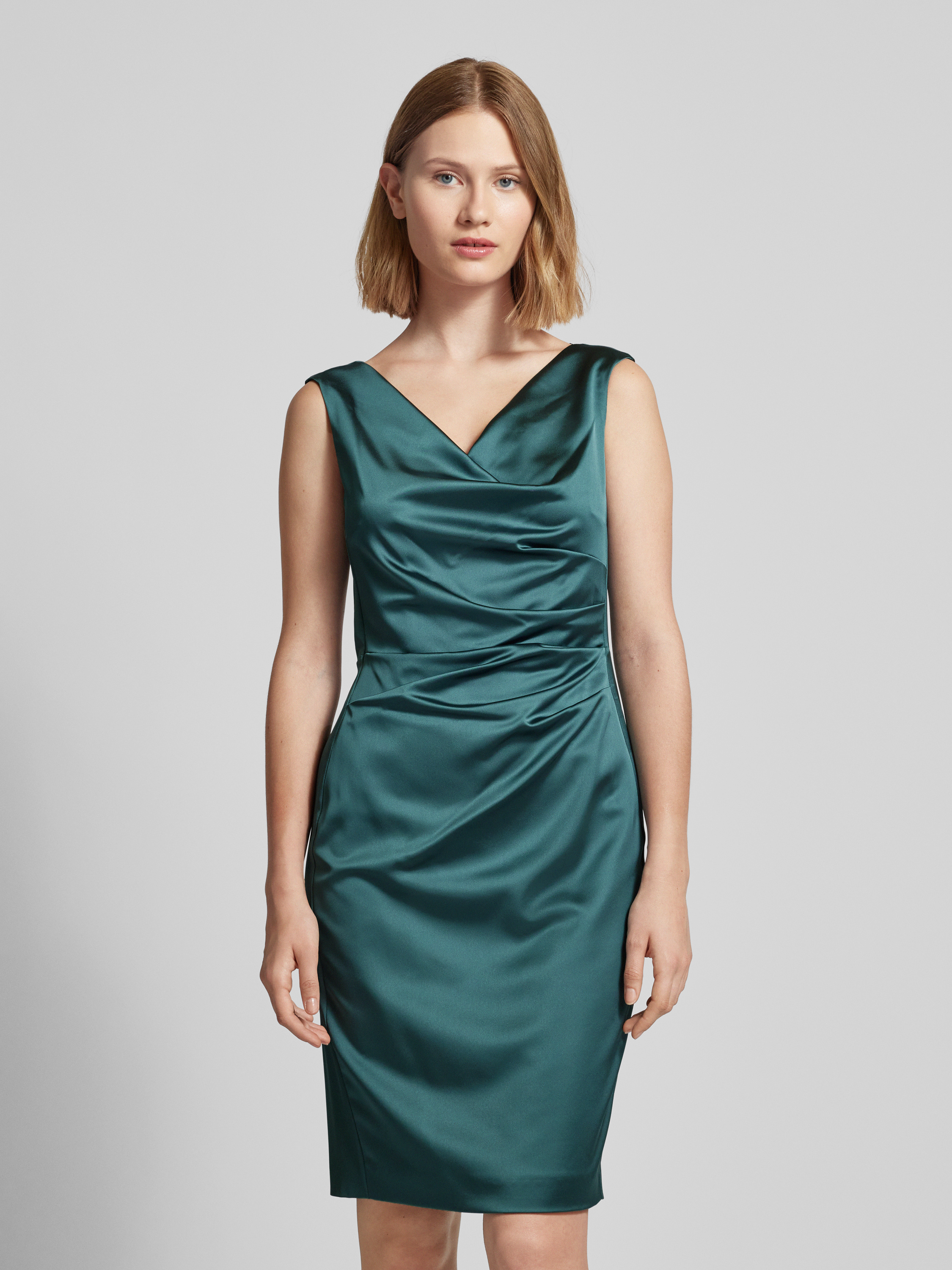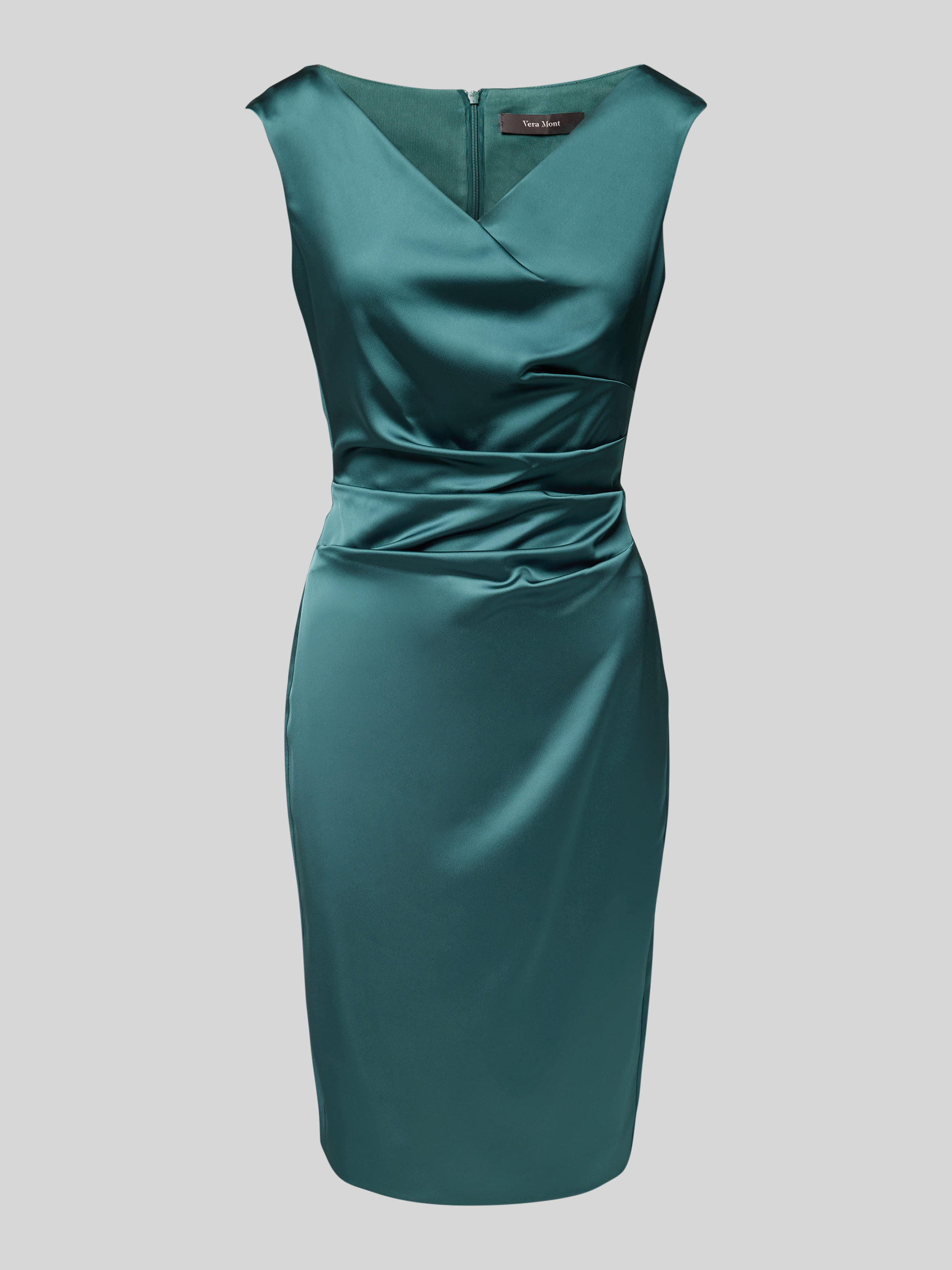 Vera MontKnielange cocktailjurk met plooien in smaragdgroen