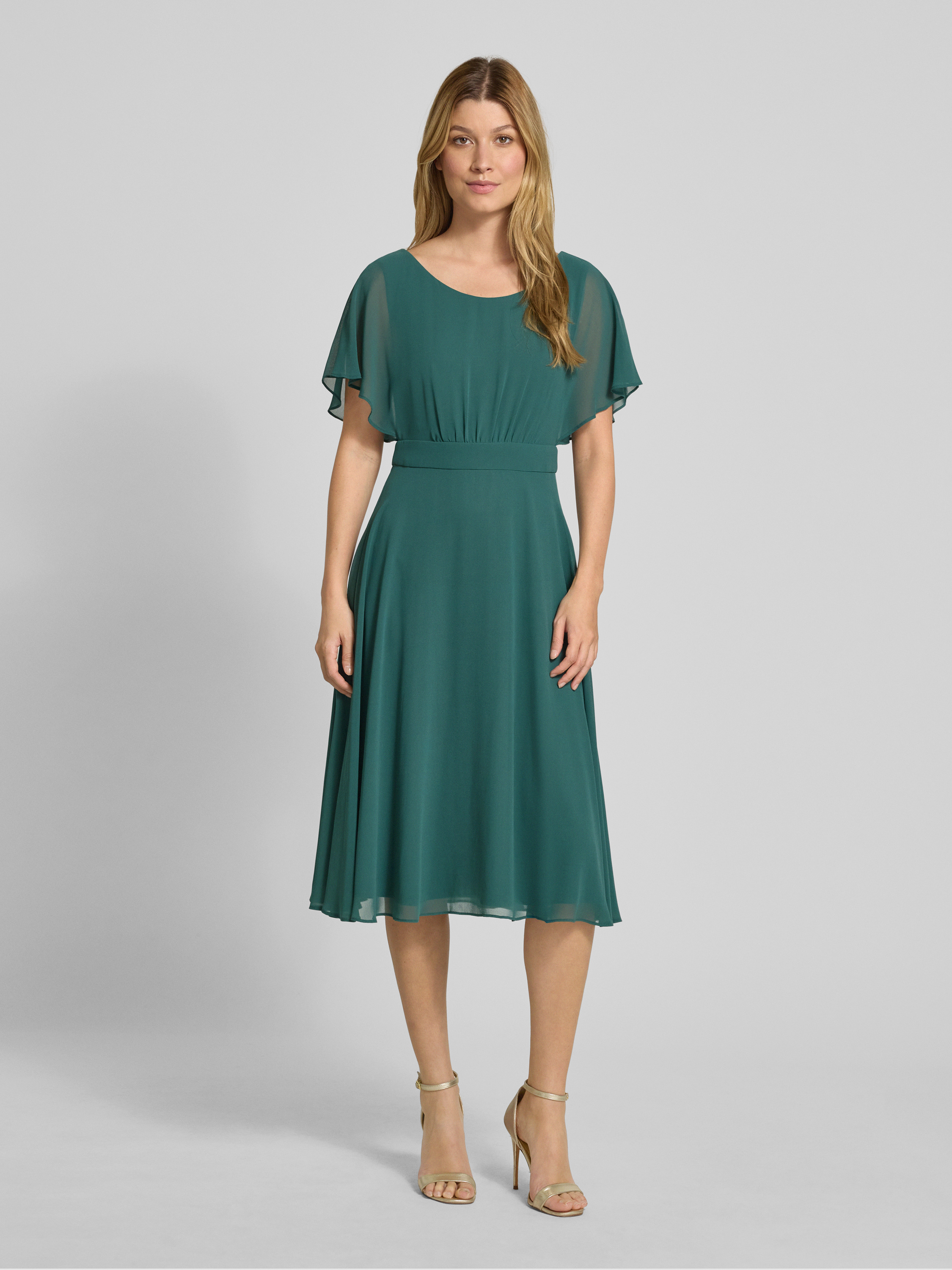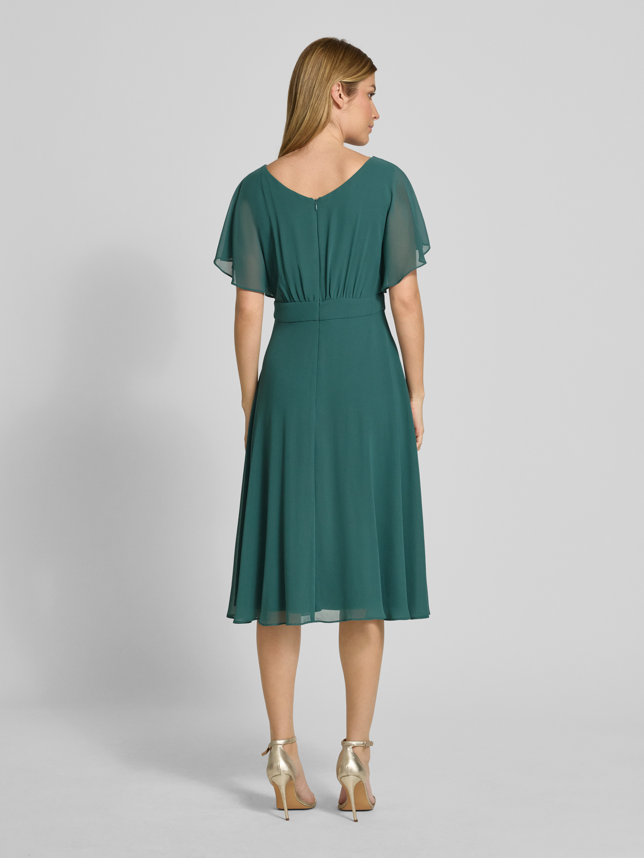 Vera MontKnielange cocktailjurk met ronde hals in donkergroen