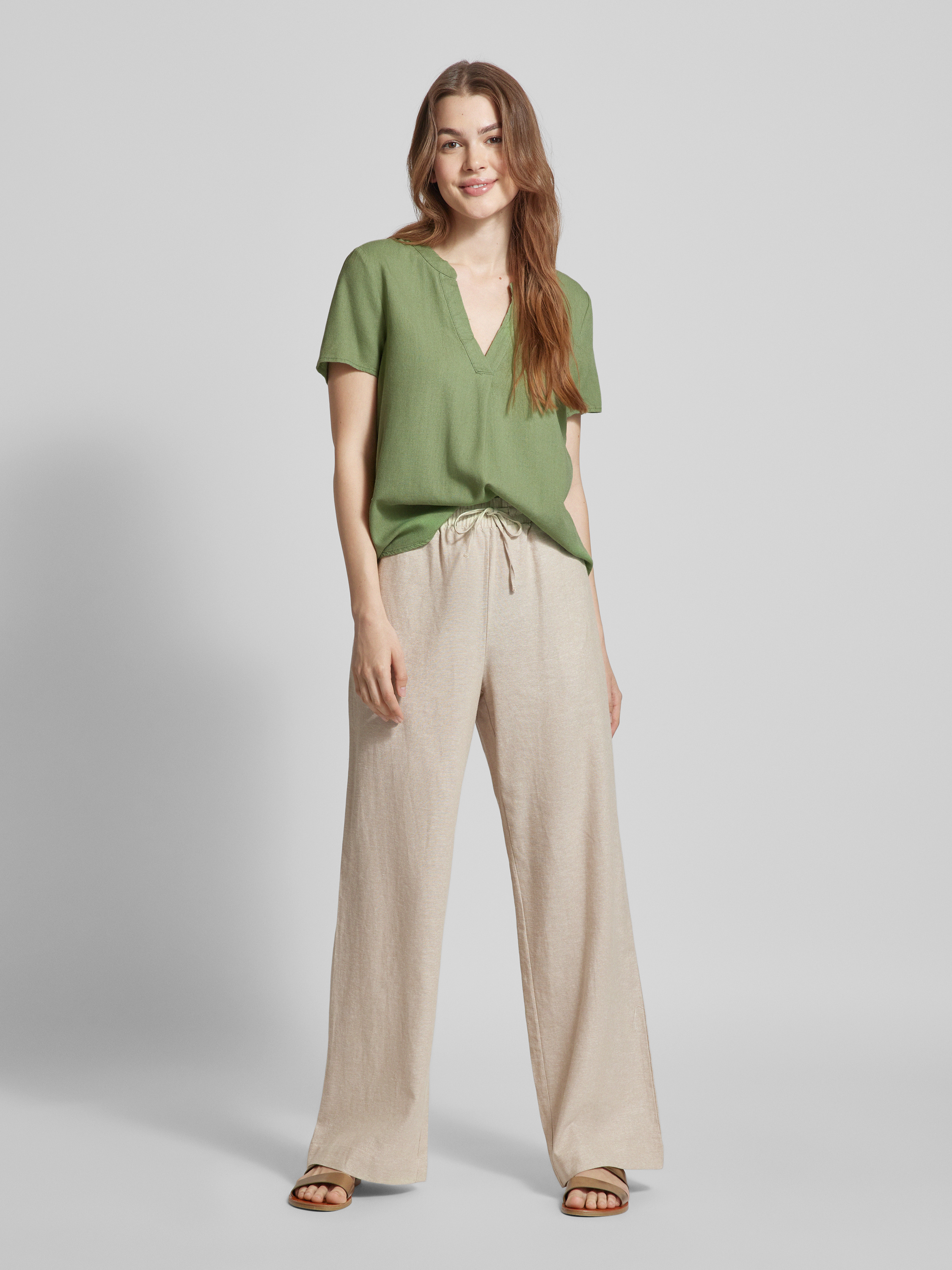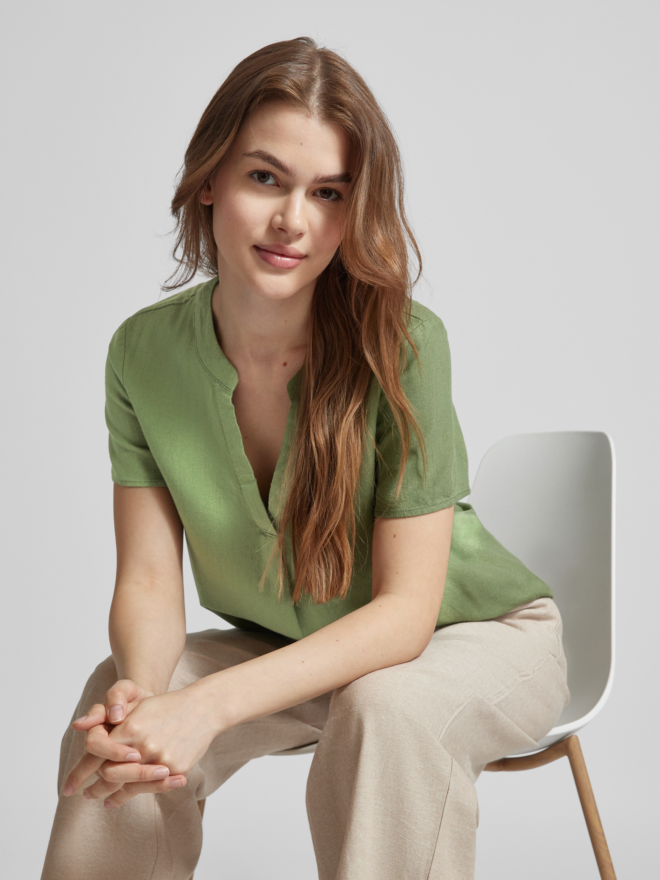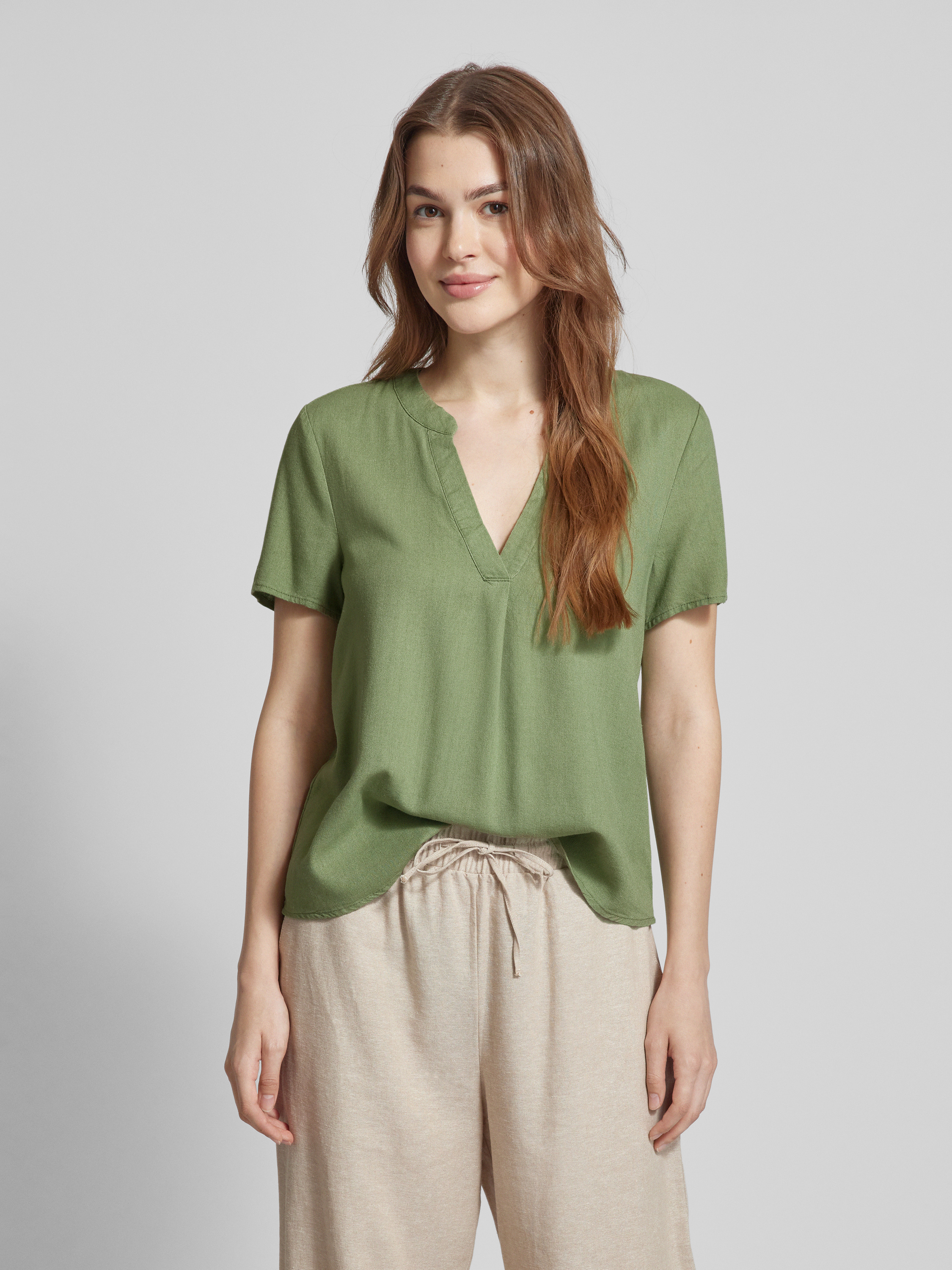 Blouse met tuniekkraag, model 'MYMILO' in olijfgroen