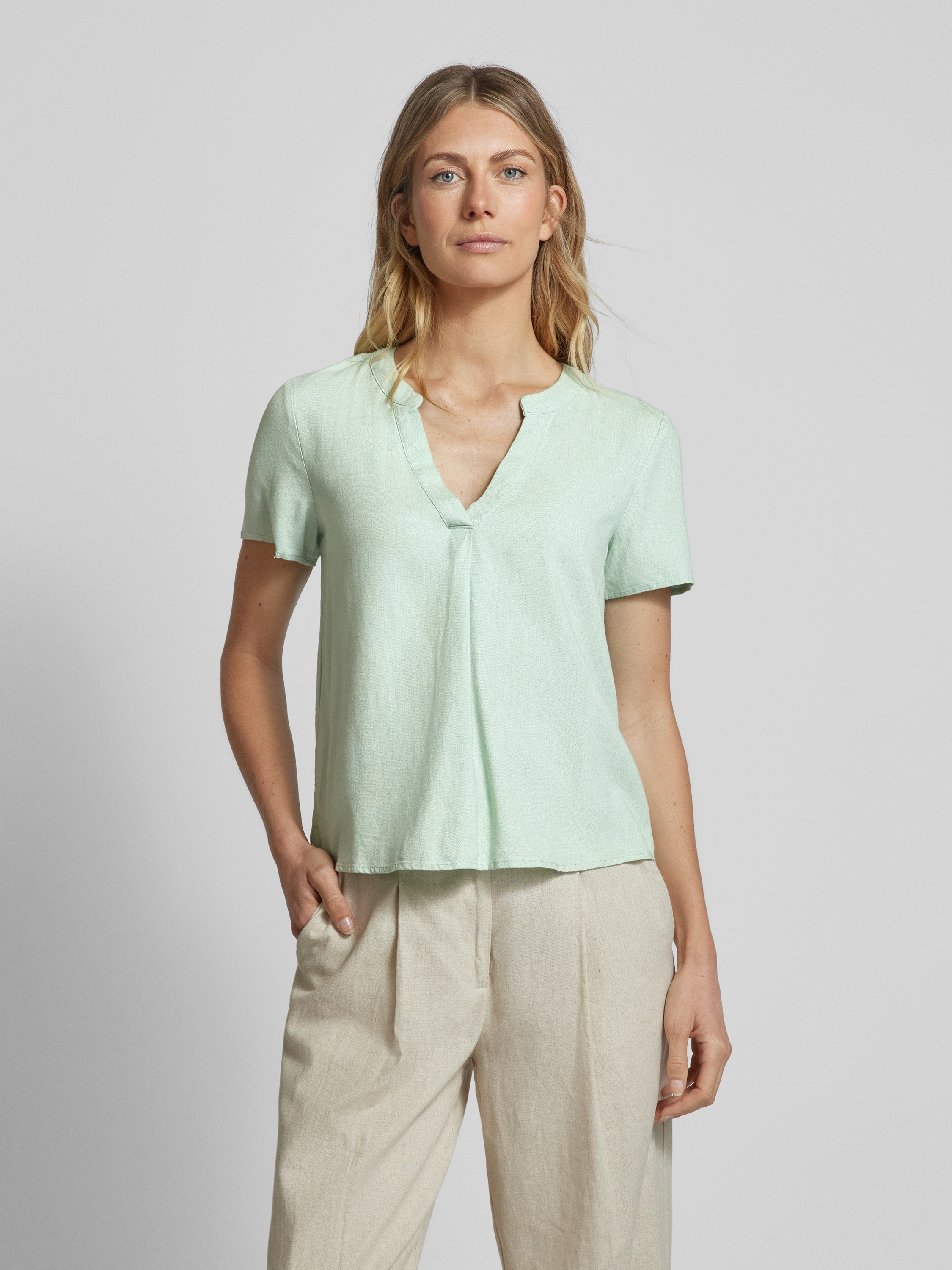 Blouse met tuniekkraag, model 'MYMILO' in rietgroen