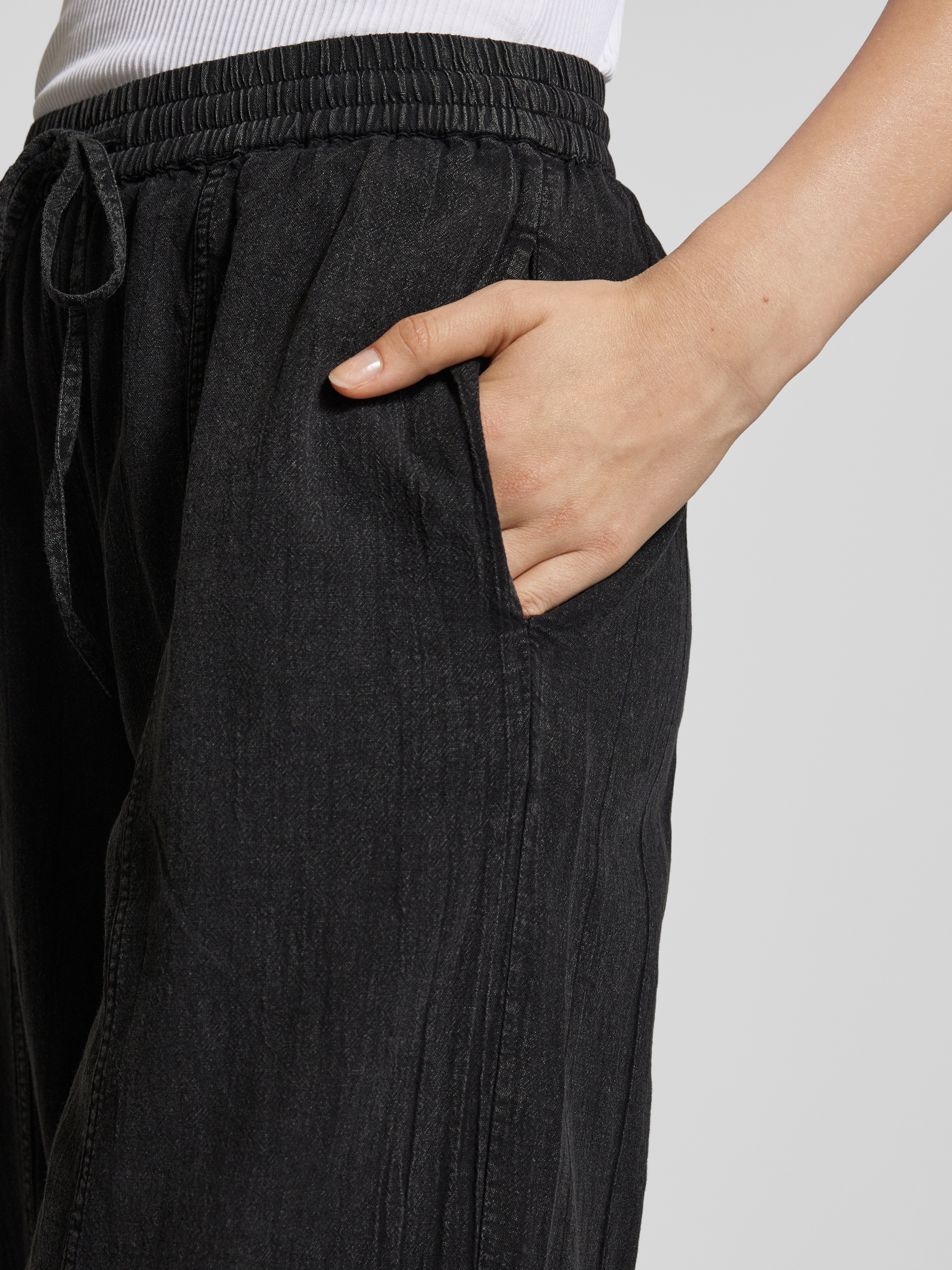 Comfort fit wijde broek in denimlook, model 'ANDIE' in zwart
