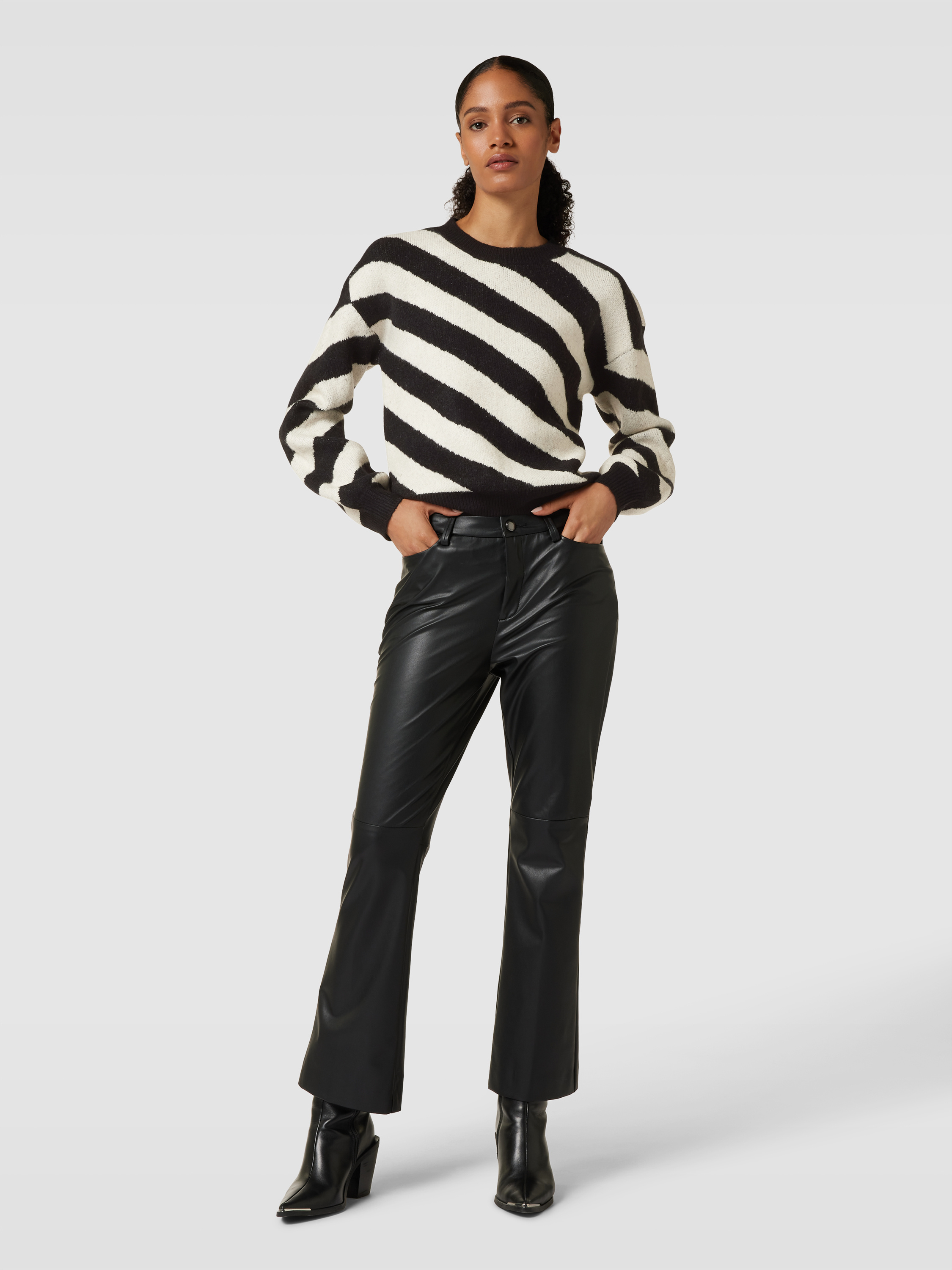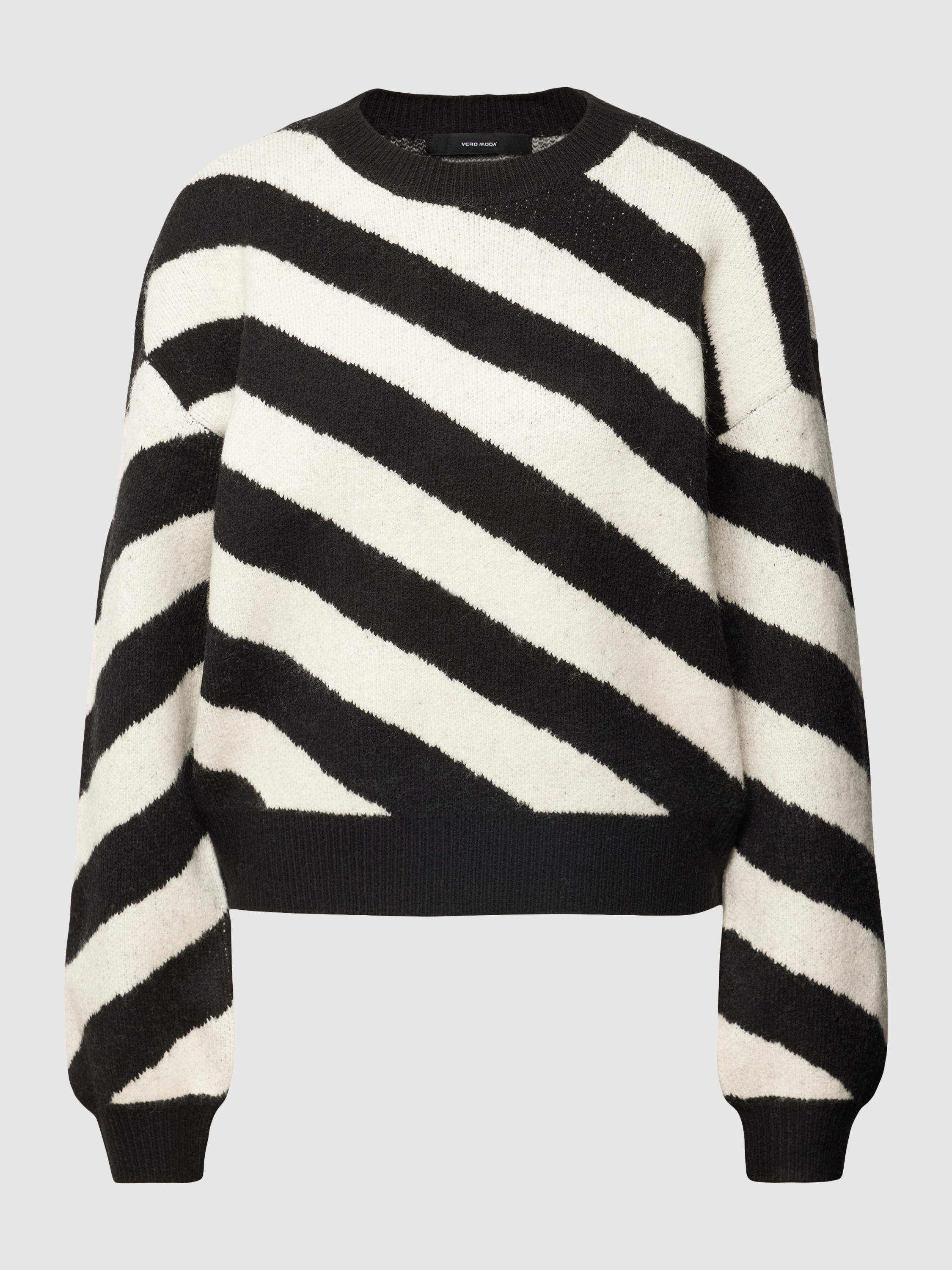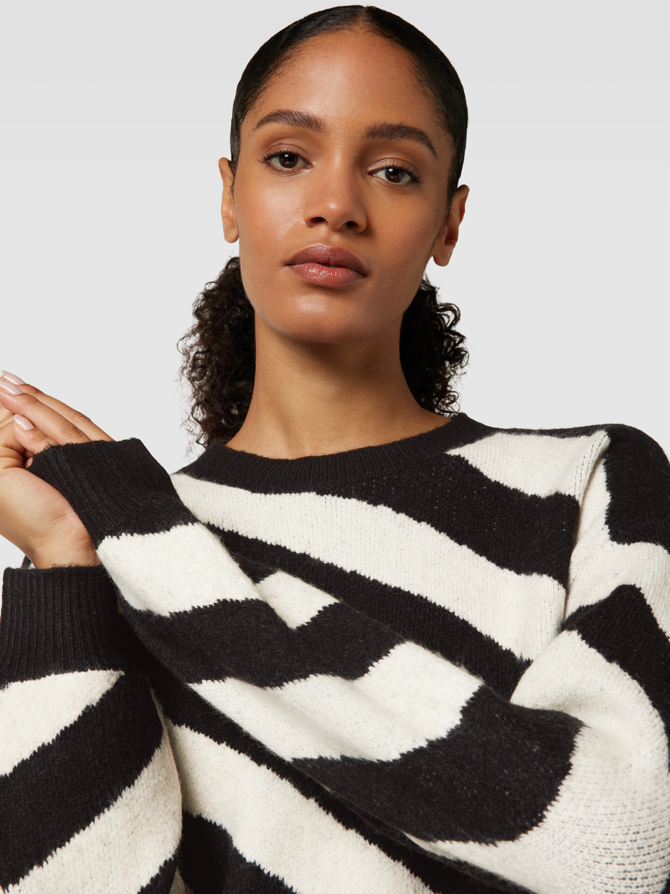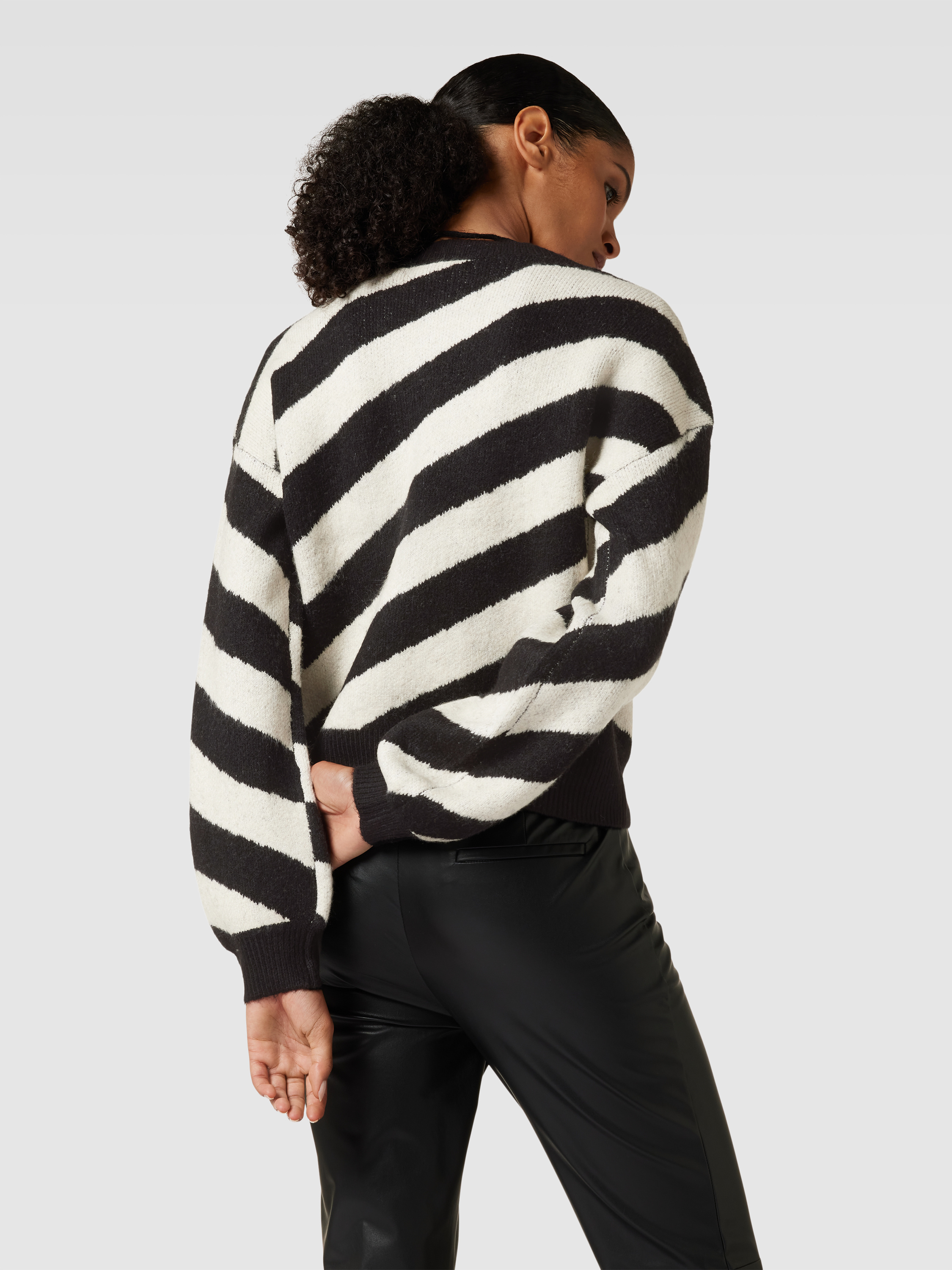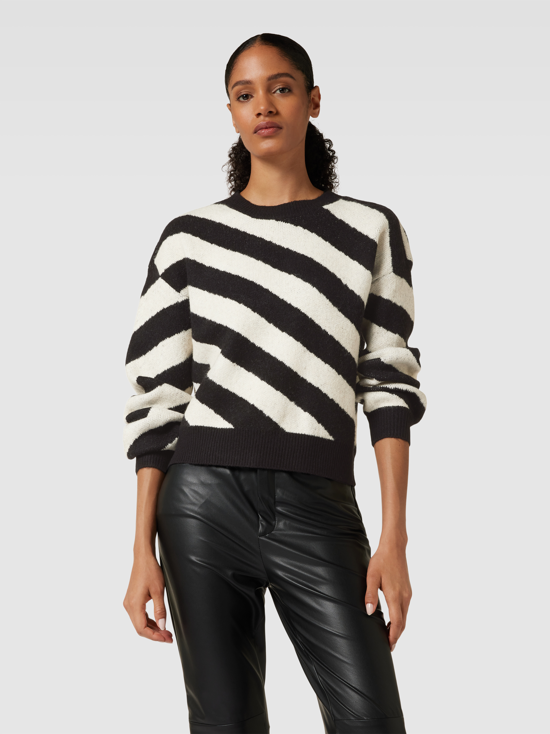 Gebreide pullover met streepmotief, model 'LARA' in zwart