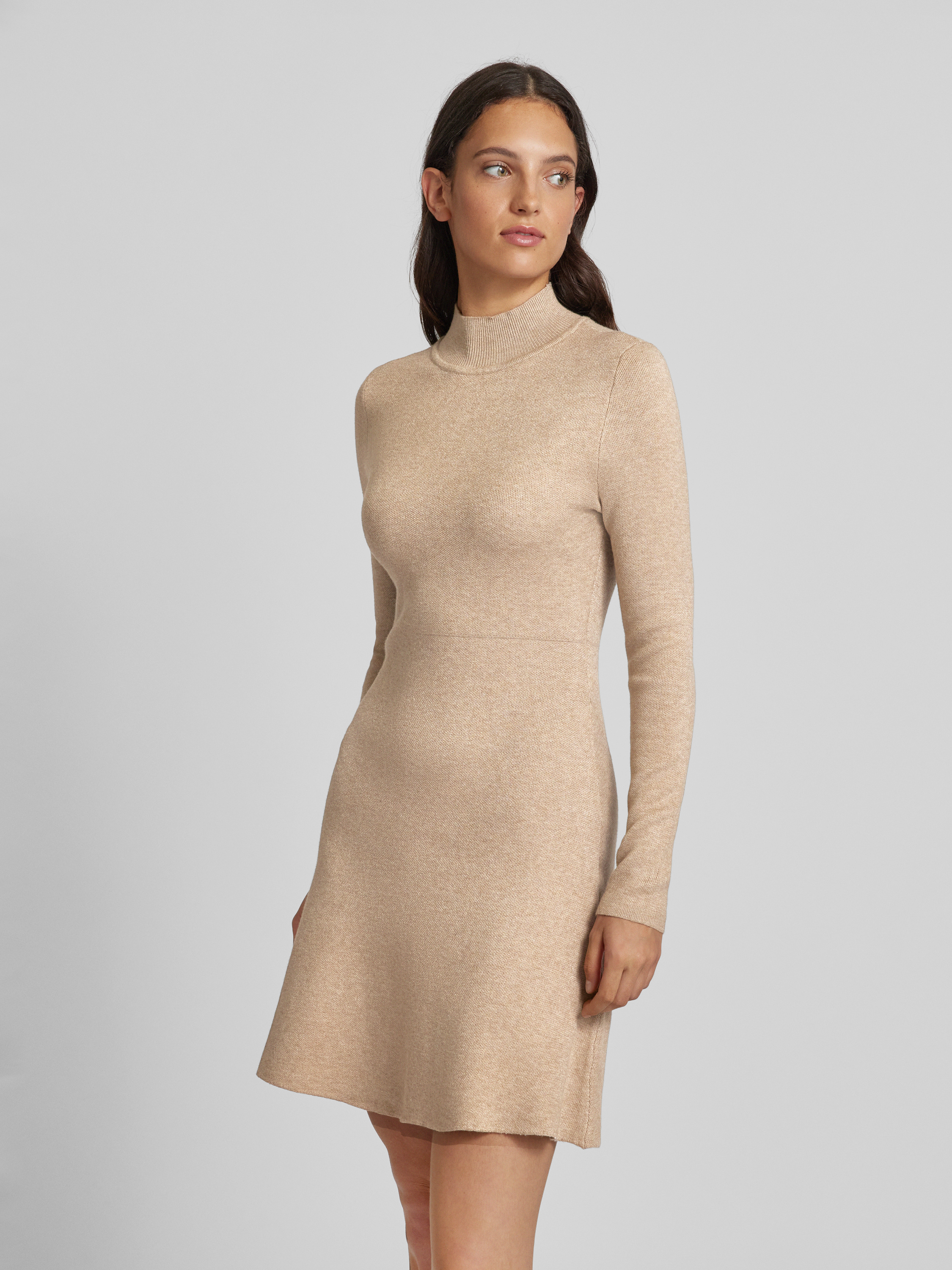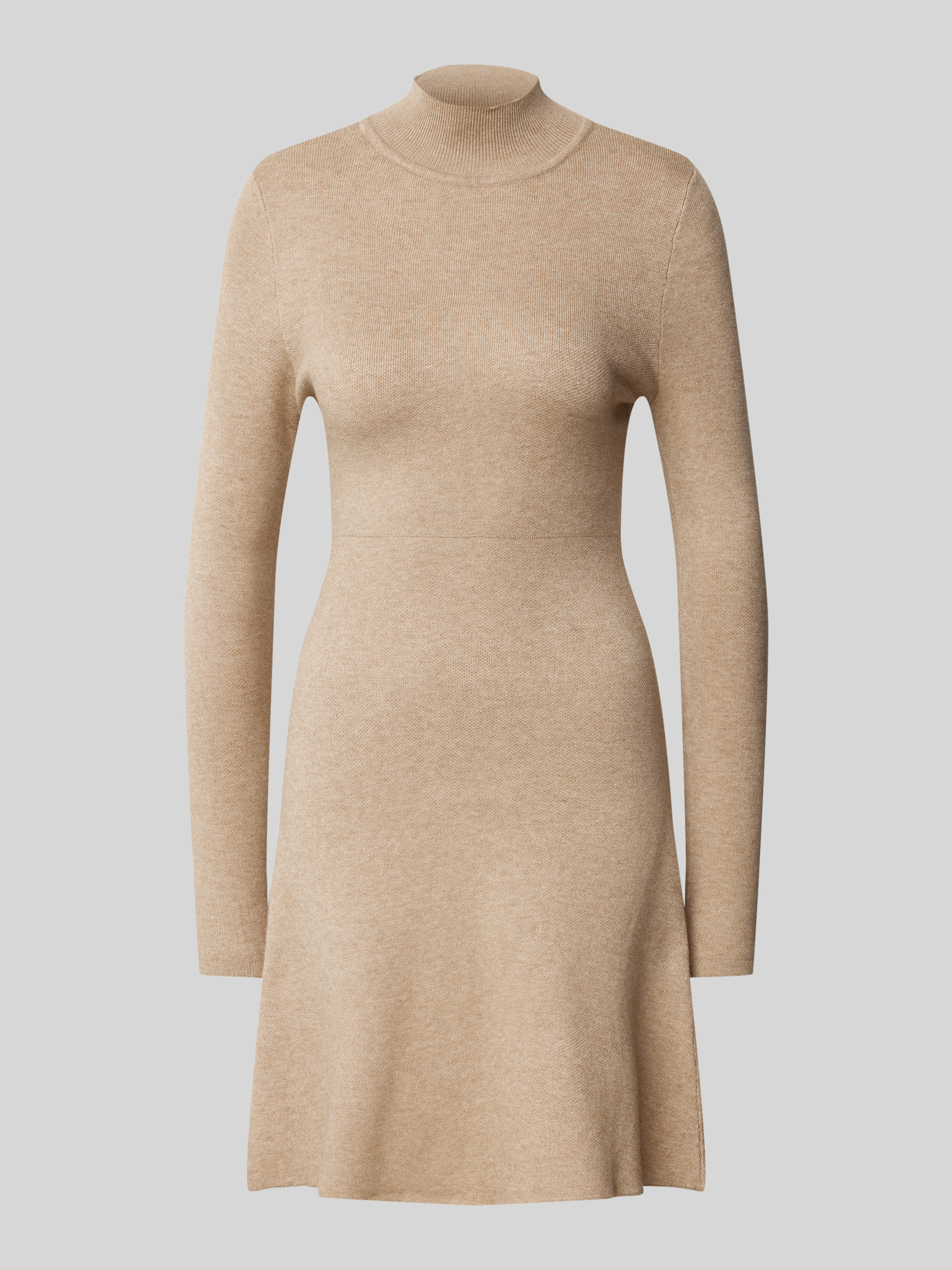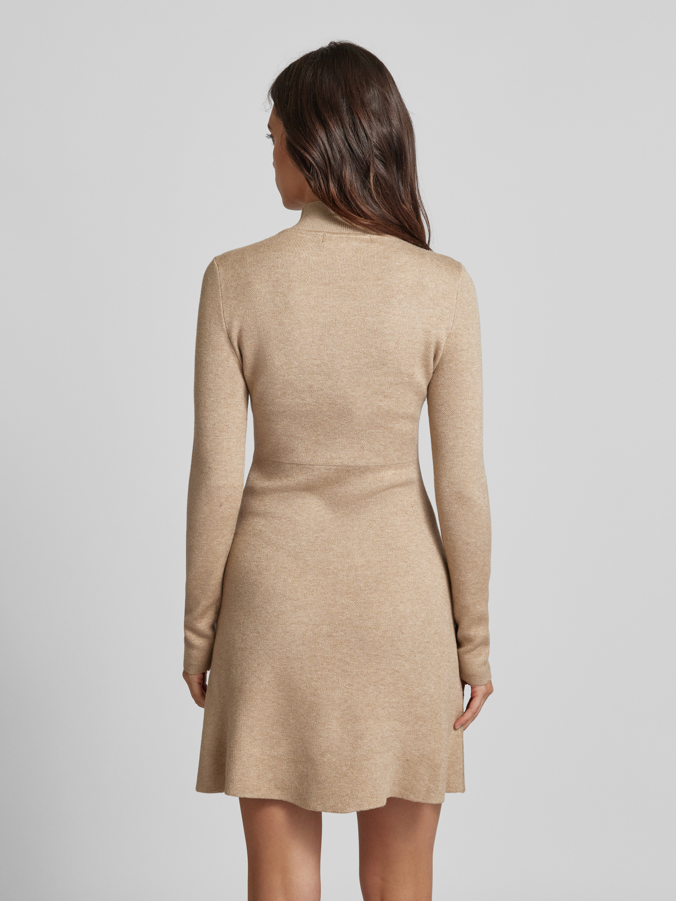 Getailleerde gebreide jurk met geribde ronde hals, model 'GOLD' in taupe