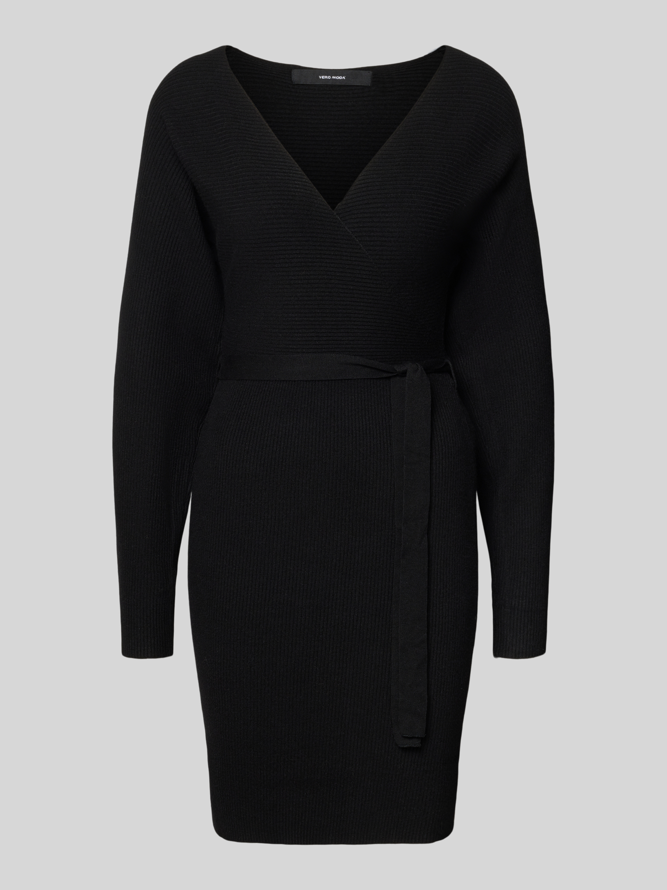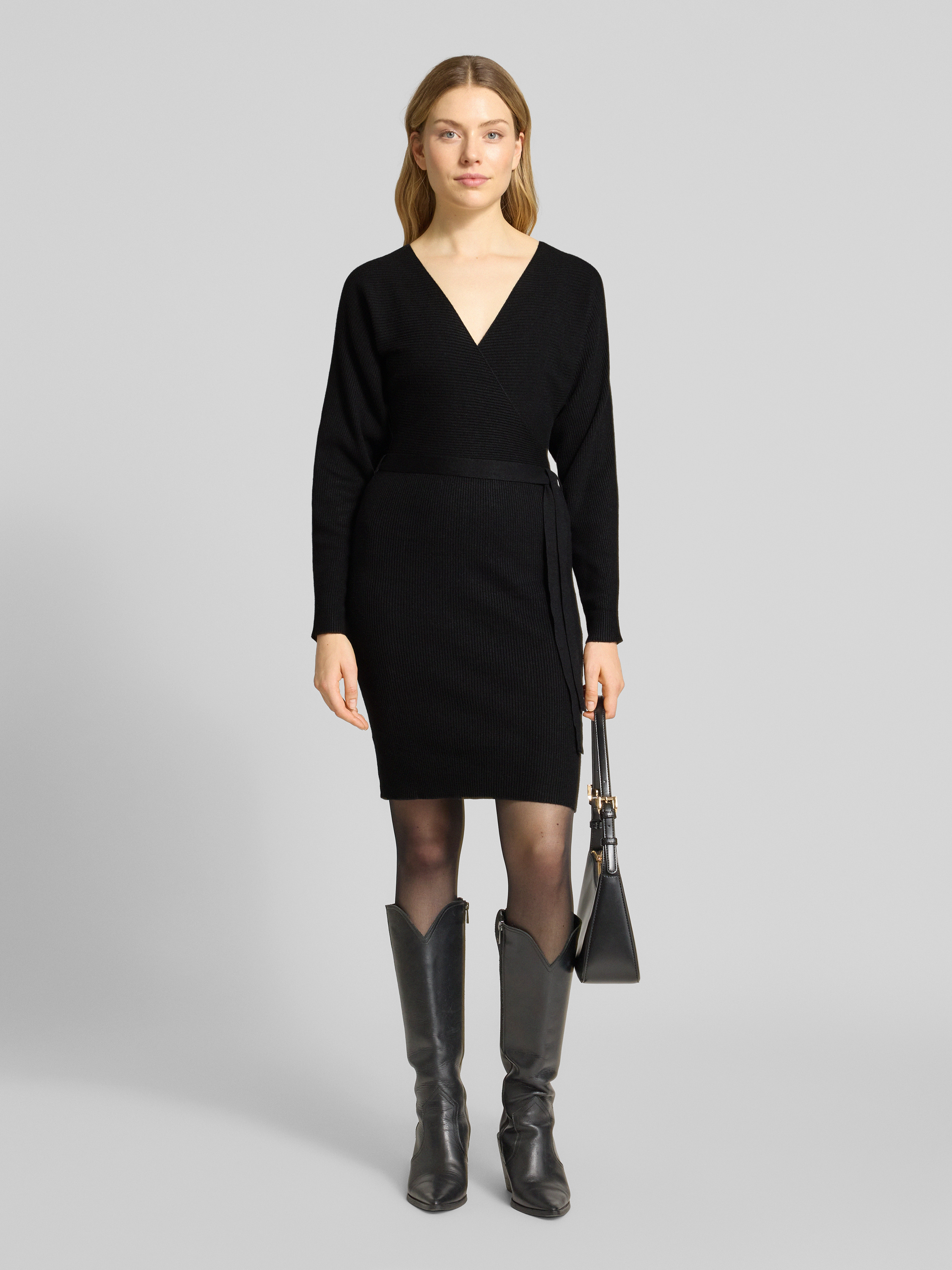 Getailleerde gebreide jurk van viscosemix, model 'HOLLYREM' in zwart