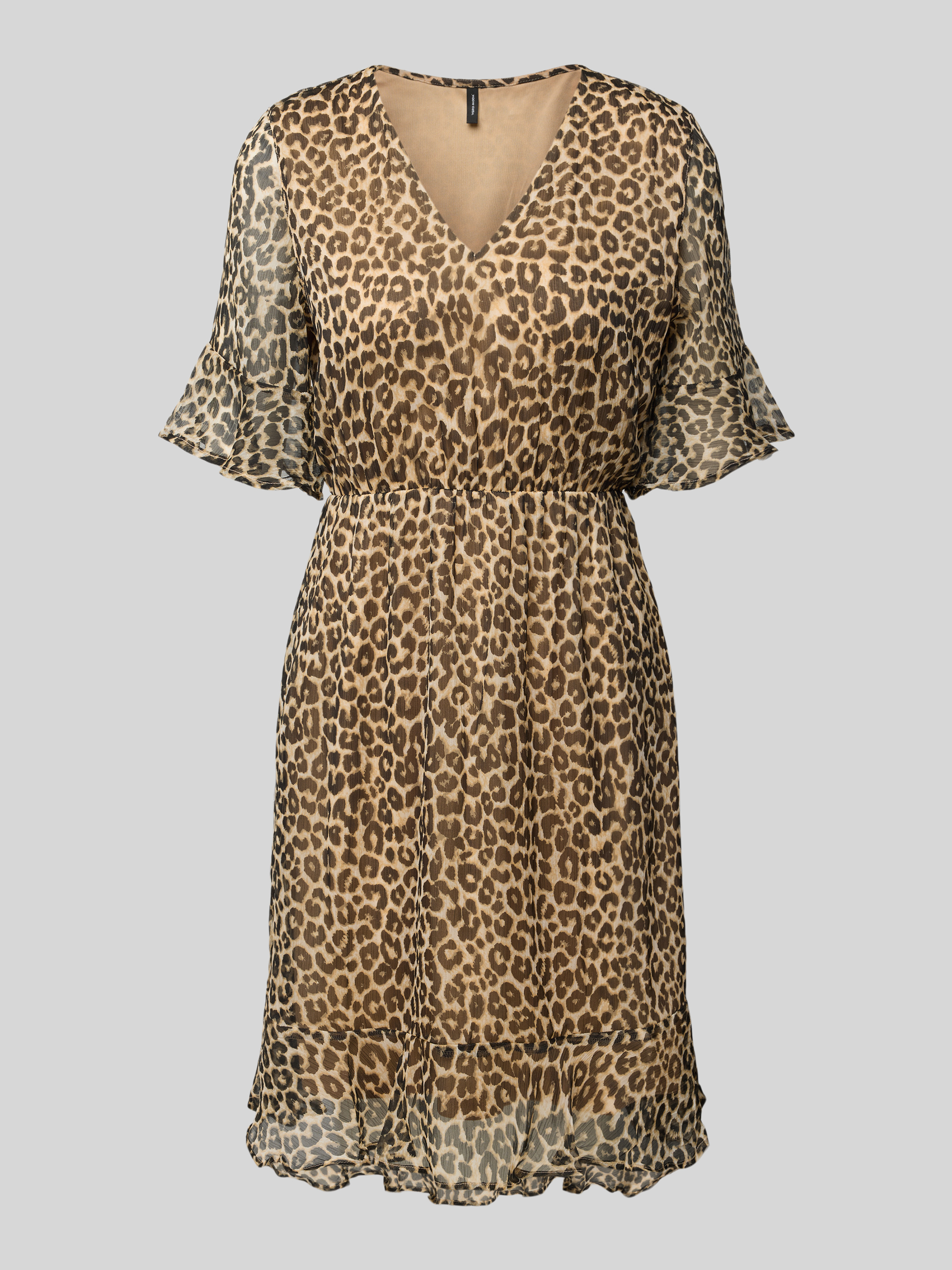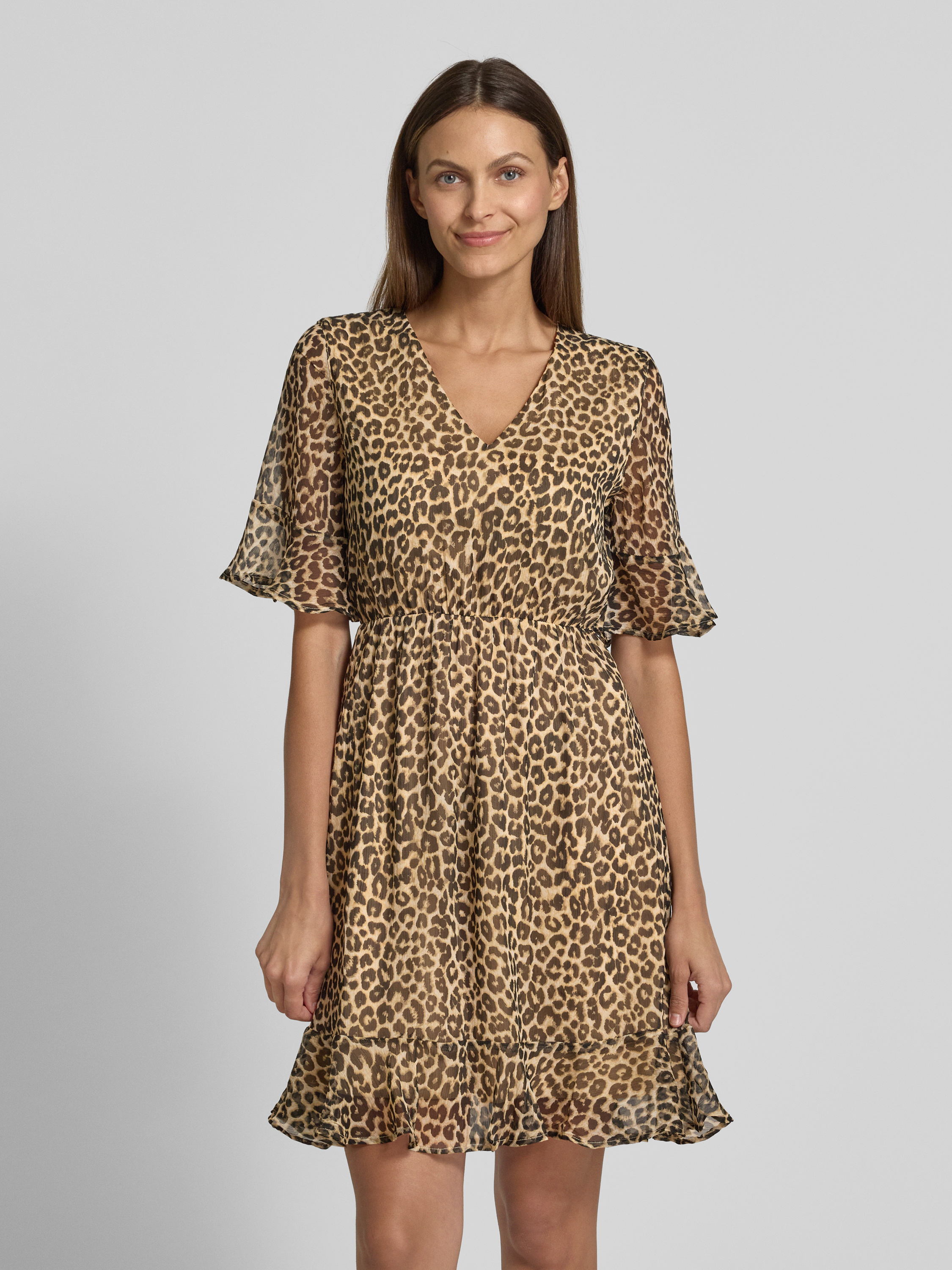 Getailleerde mini-jurk met V-hals, model 'SMILLA' in middenbruin