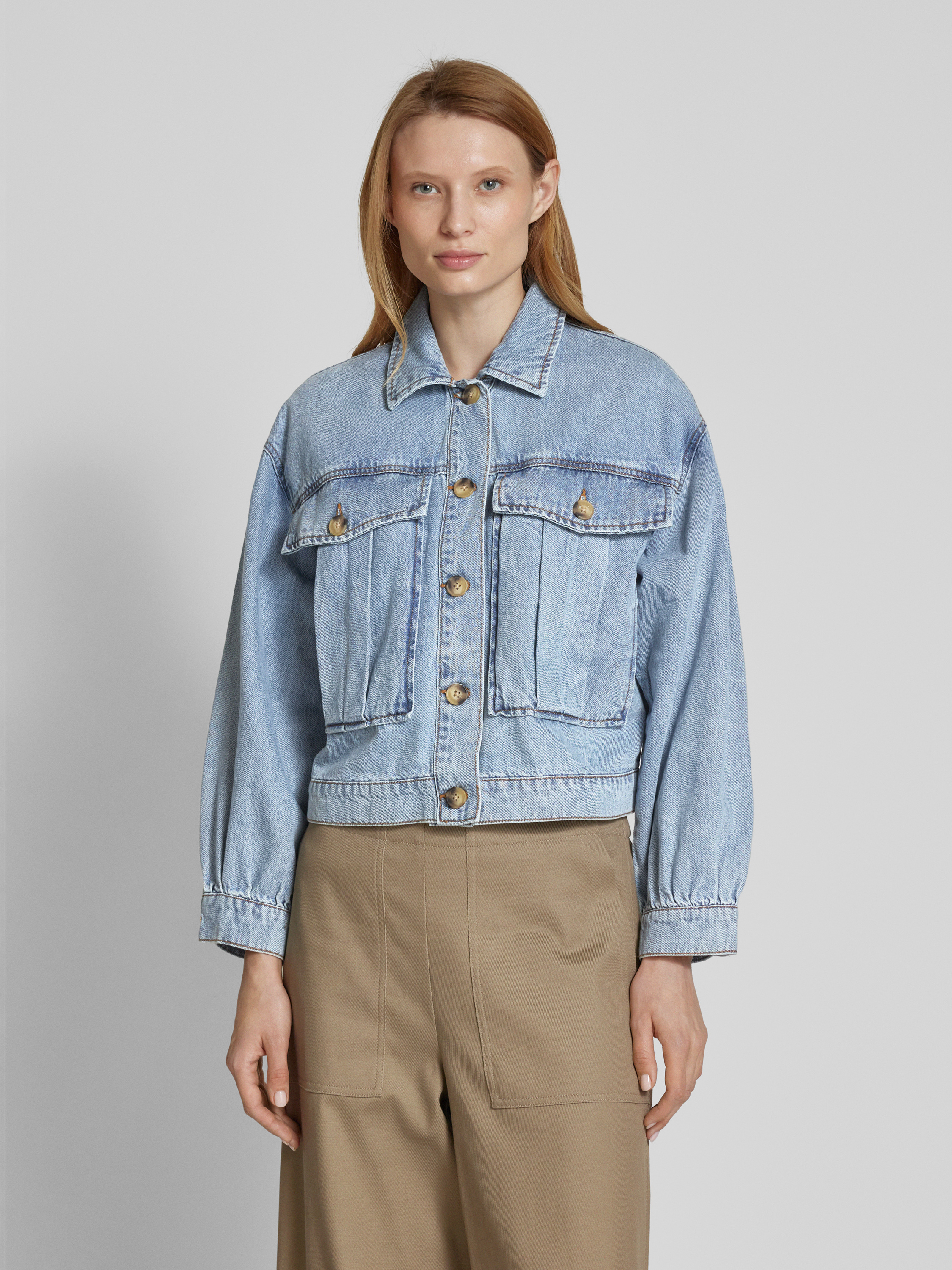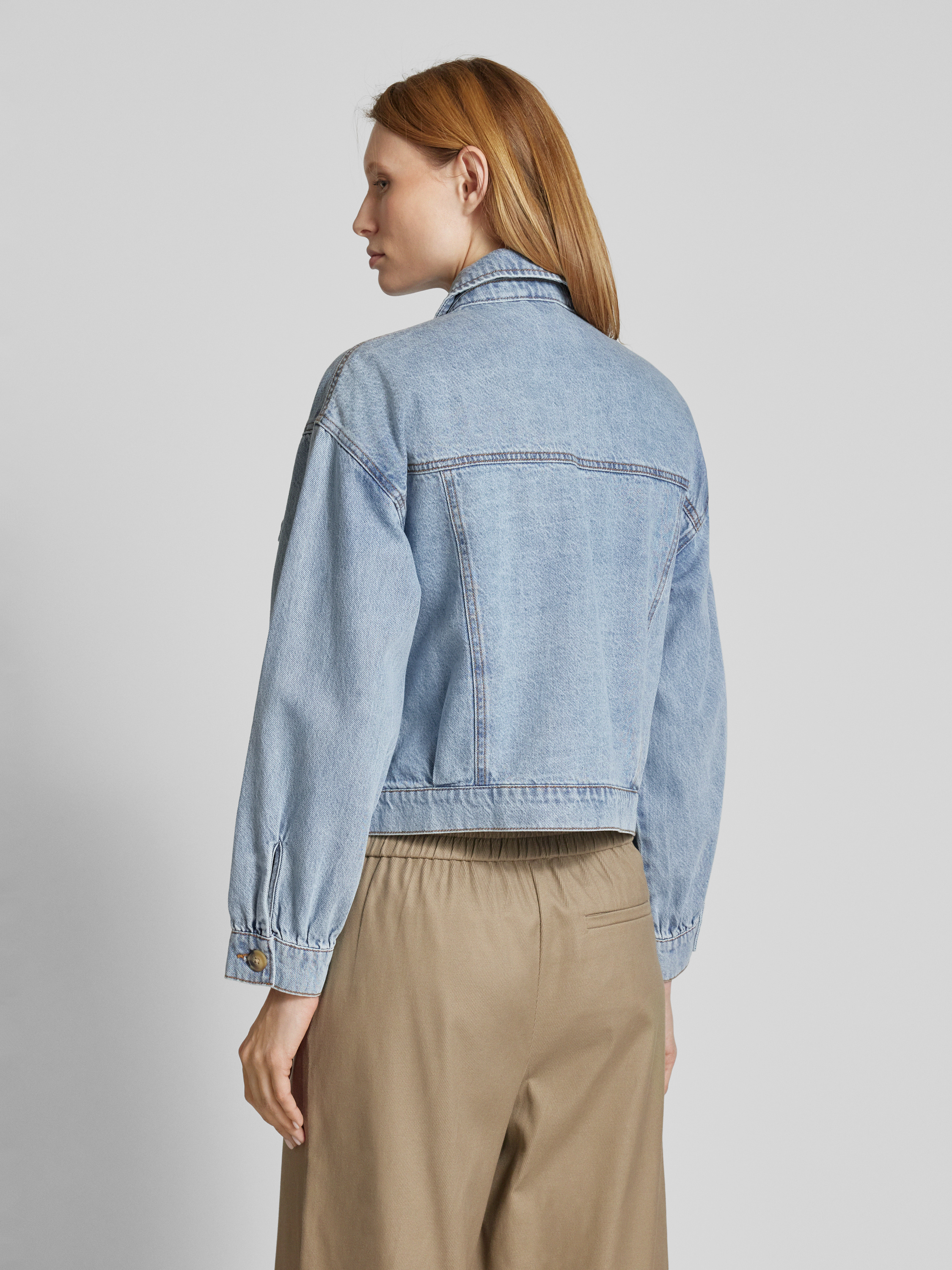 Kort jeansjack van zuiver katoen, model 'SILKA' in jeansblauw