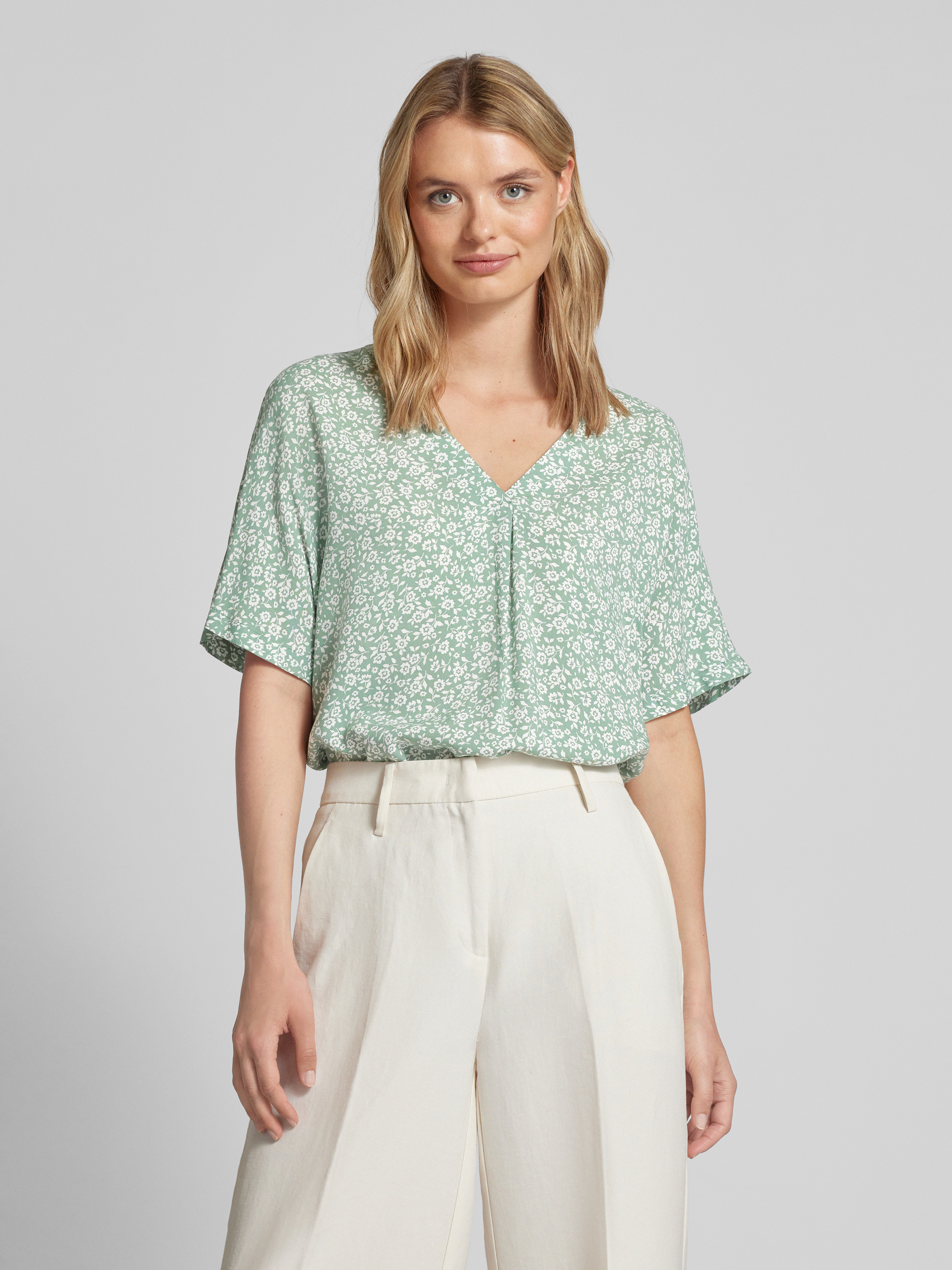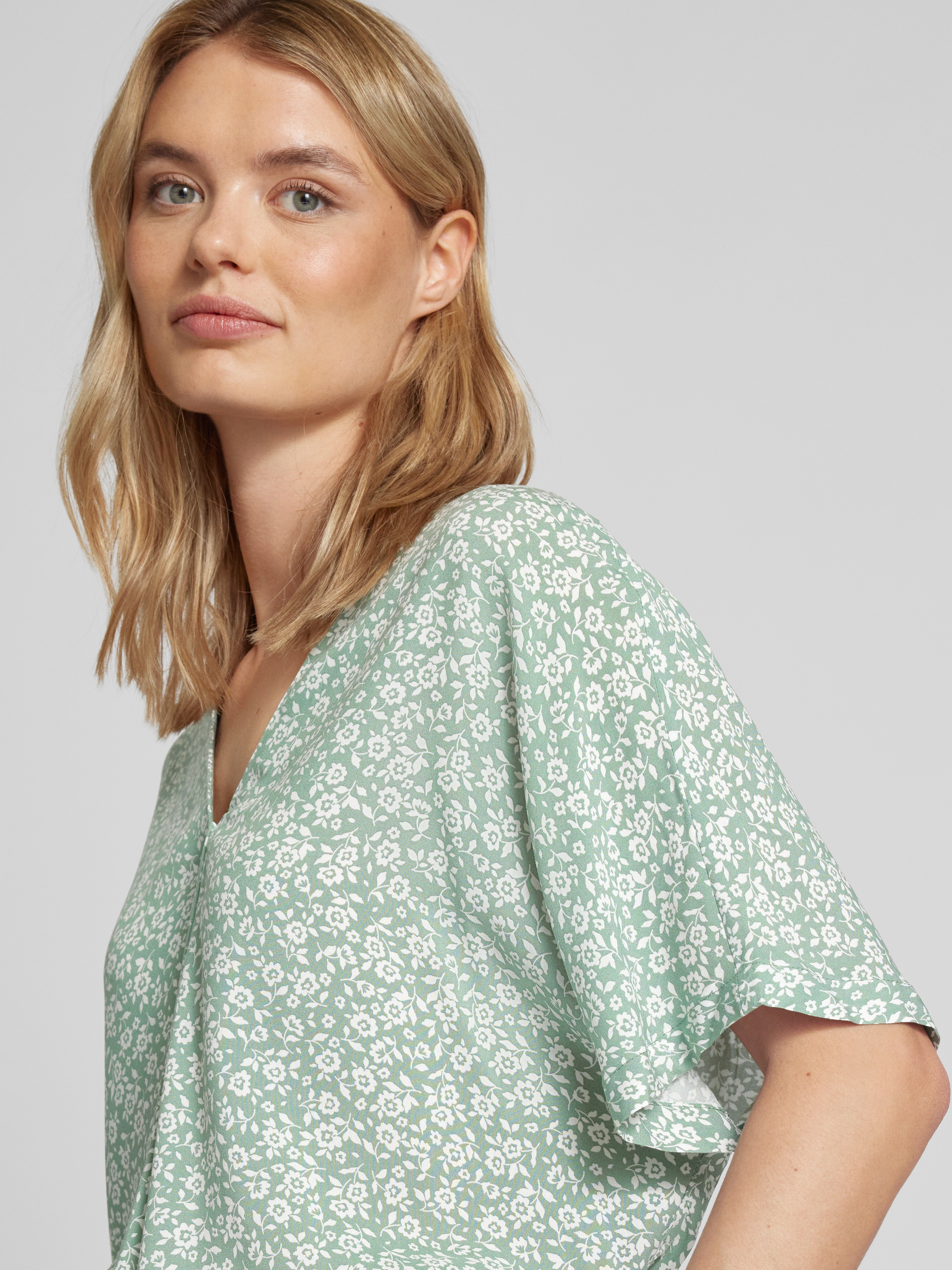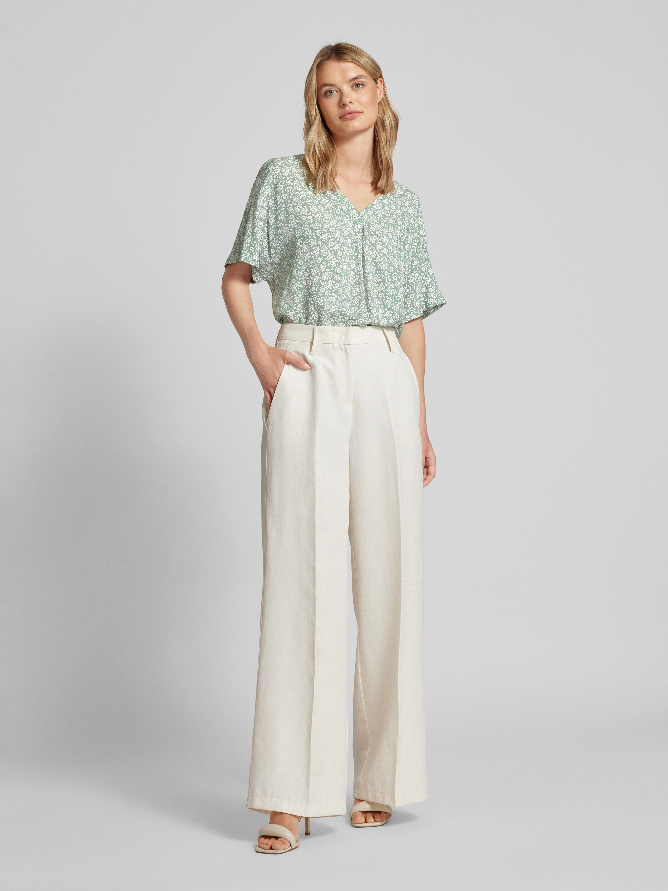 Loose fit blouseshirt van viscose met V-hals, model 'EASY' in rietgroen