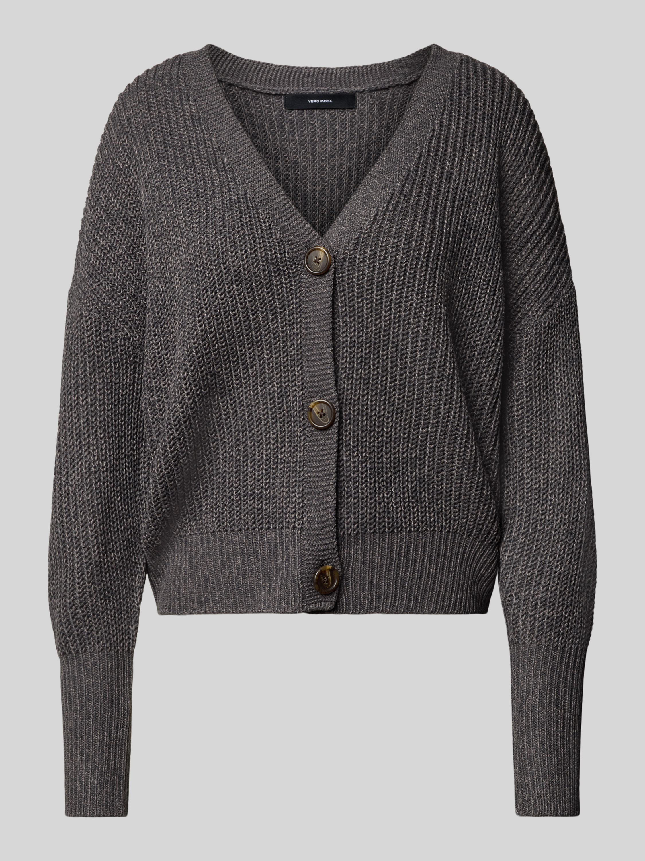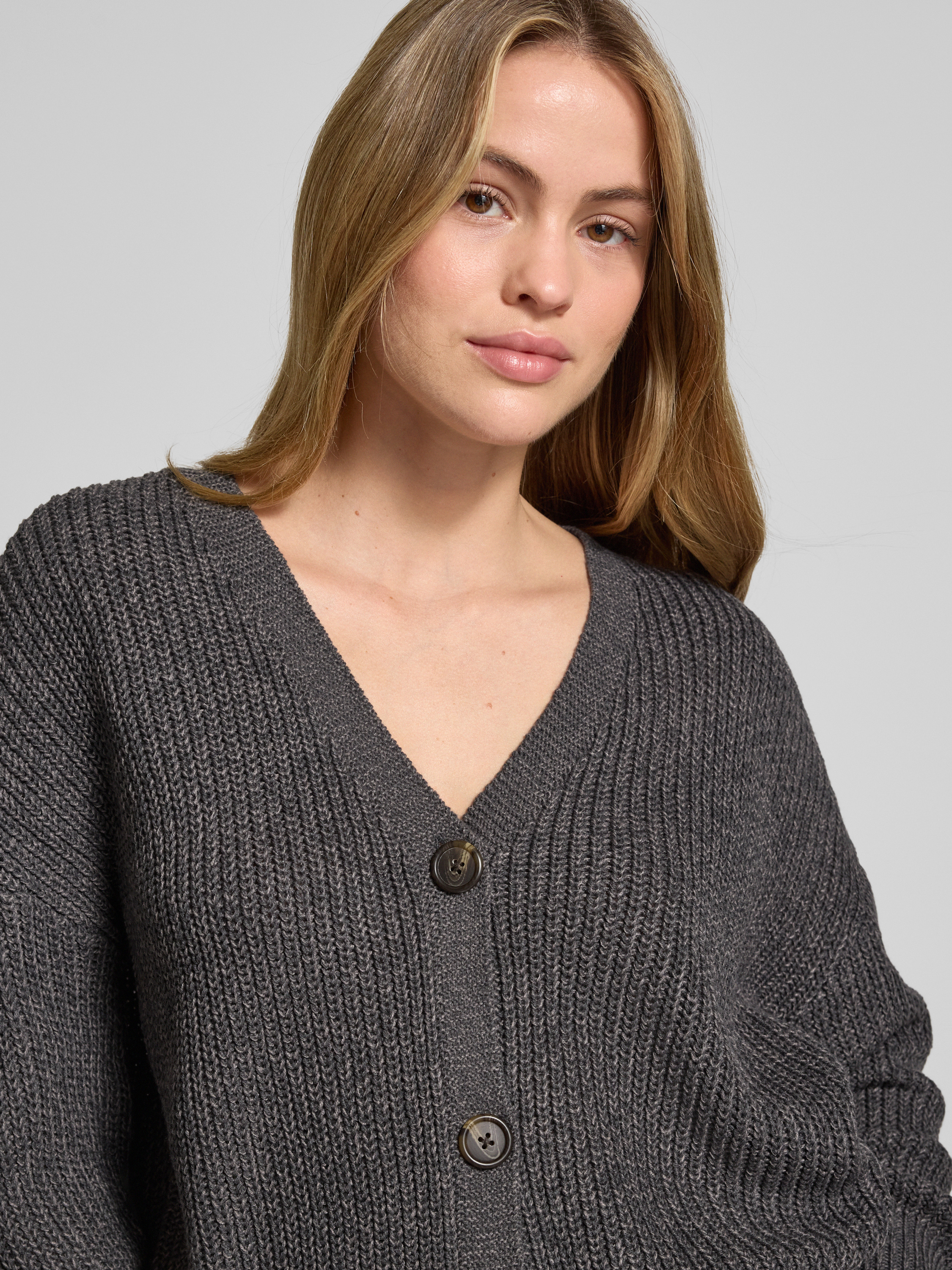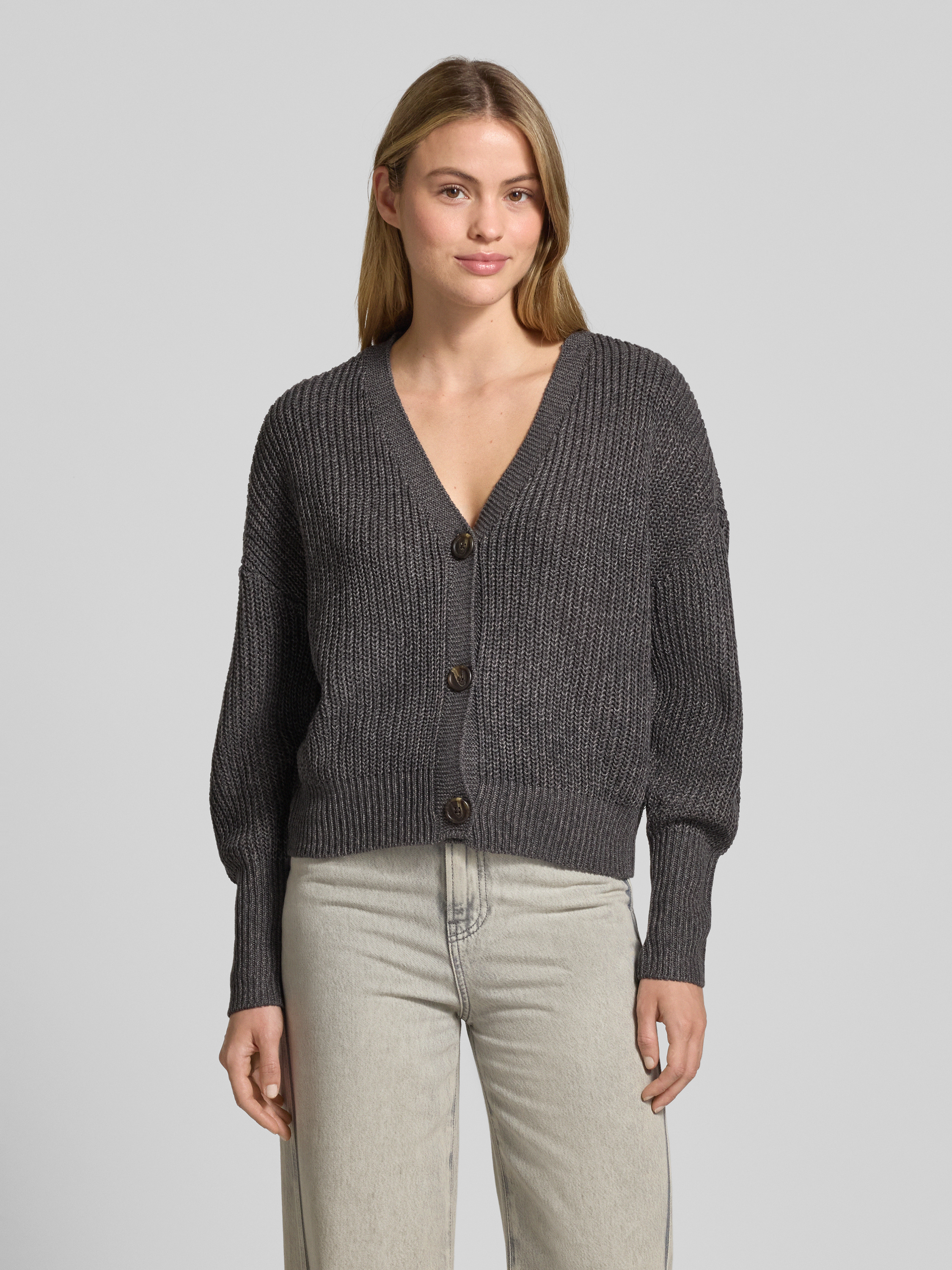 Loose fit gebreid jack met sierknopen, model 'LEA' in antraciet