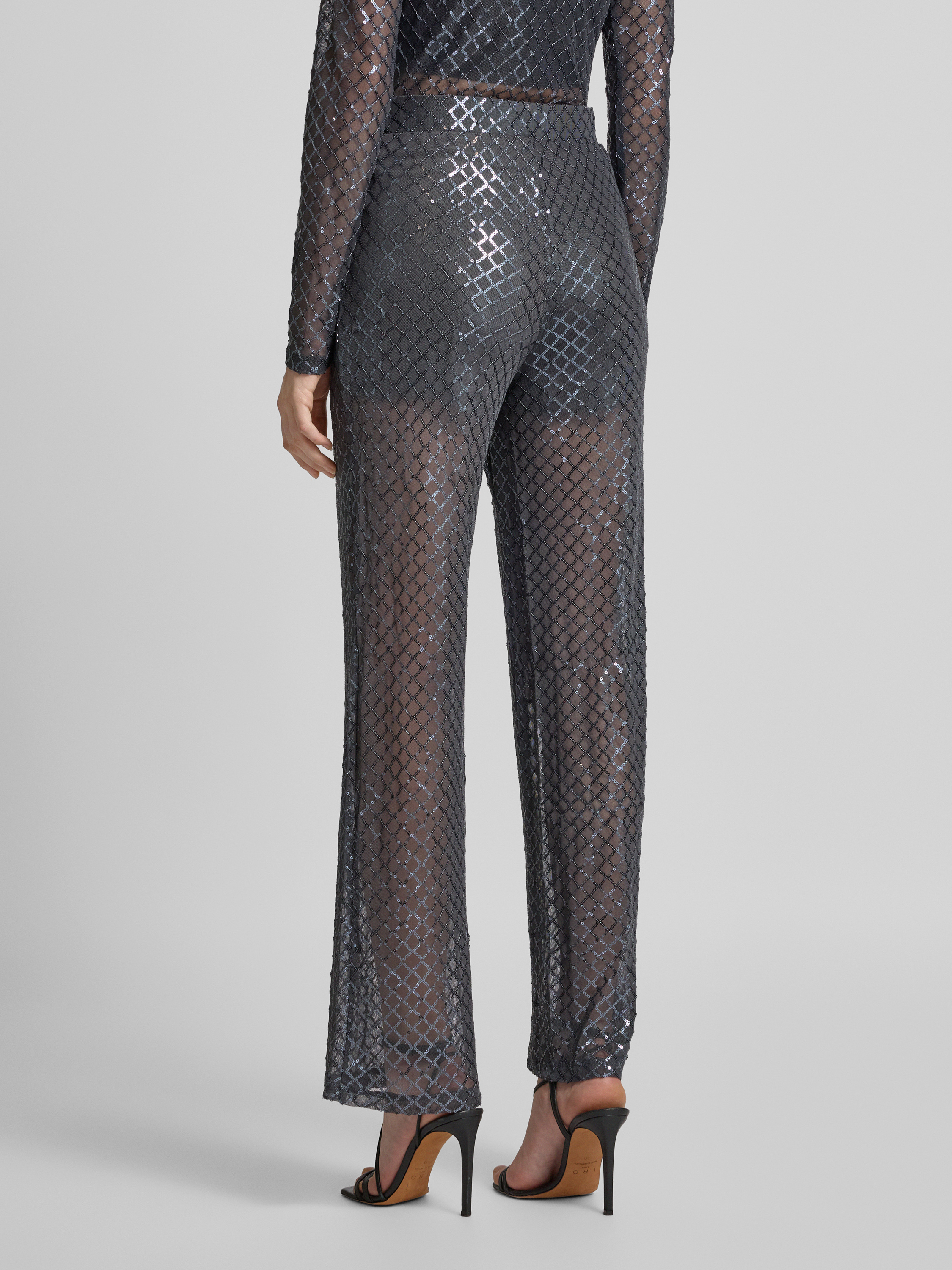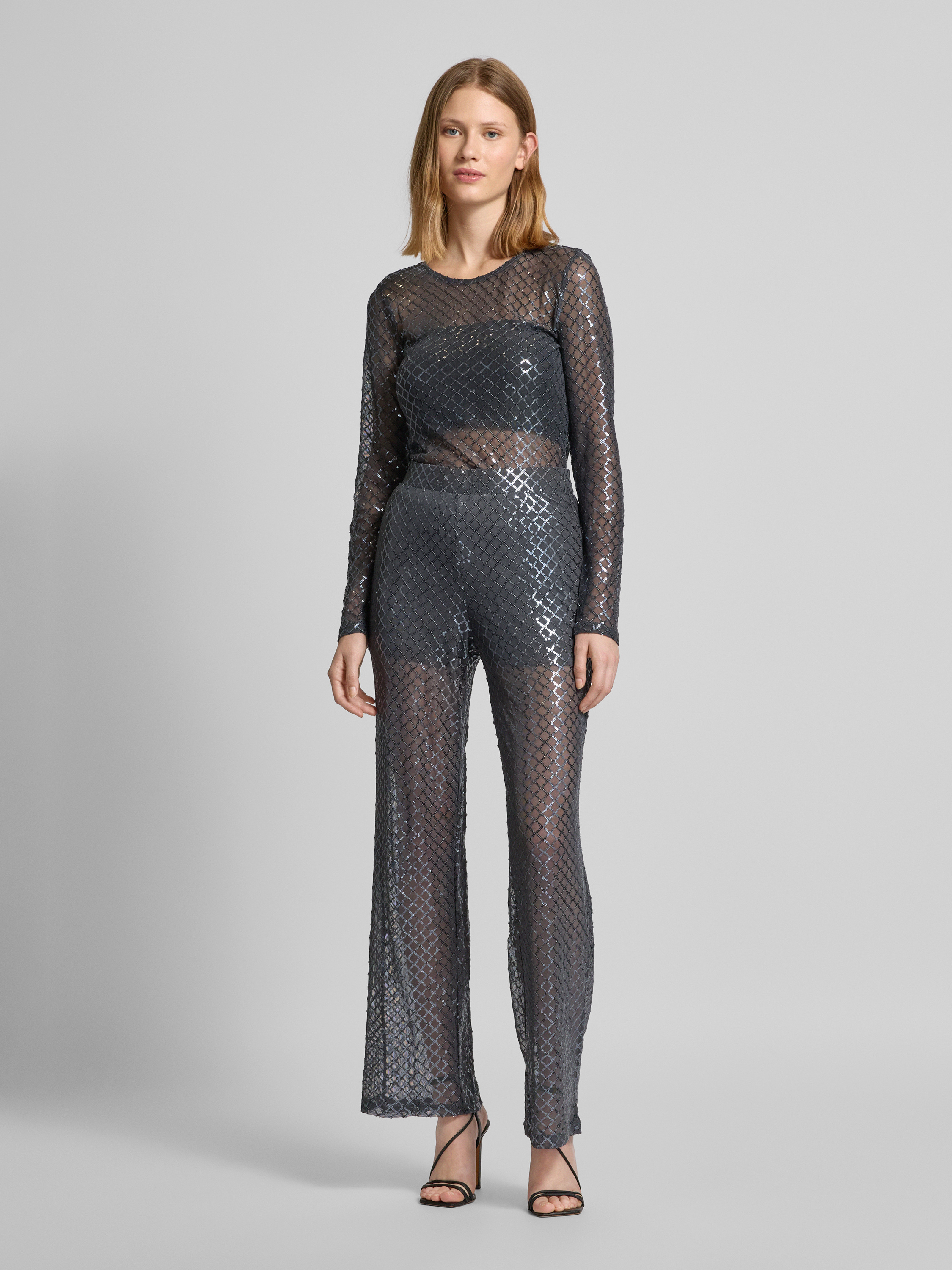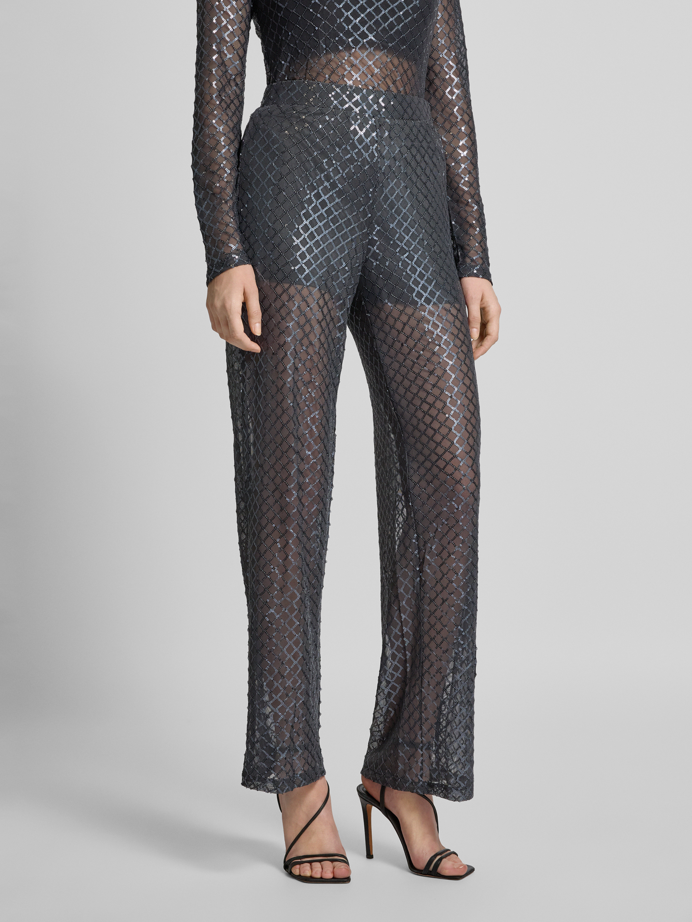Loose fit mesh broek met pailletten, model 'SAFINA' in antraciet