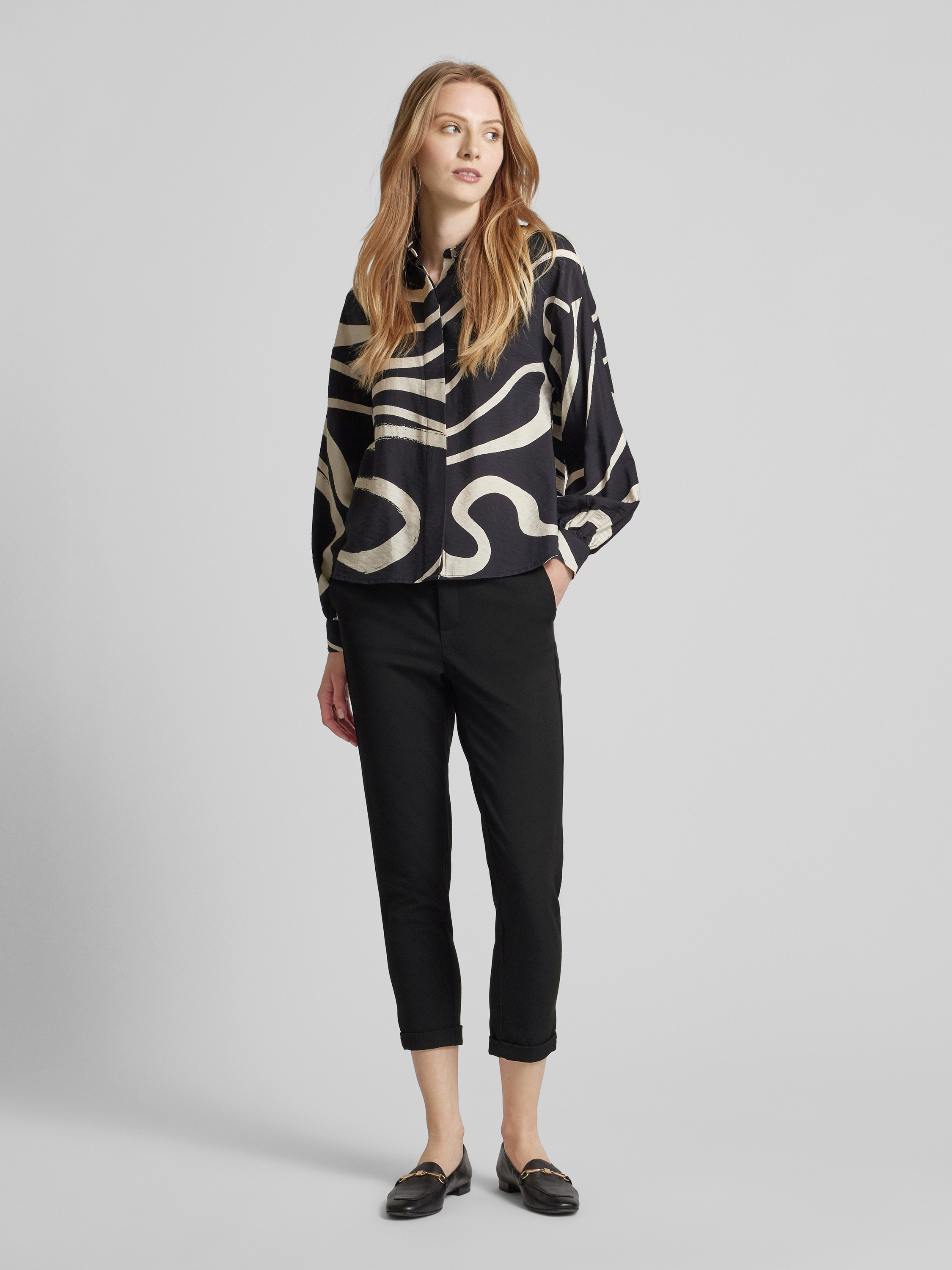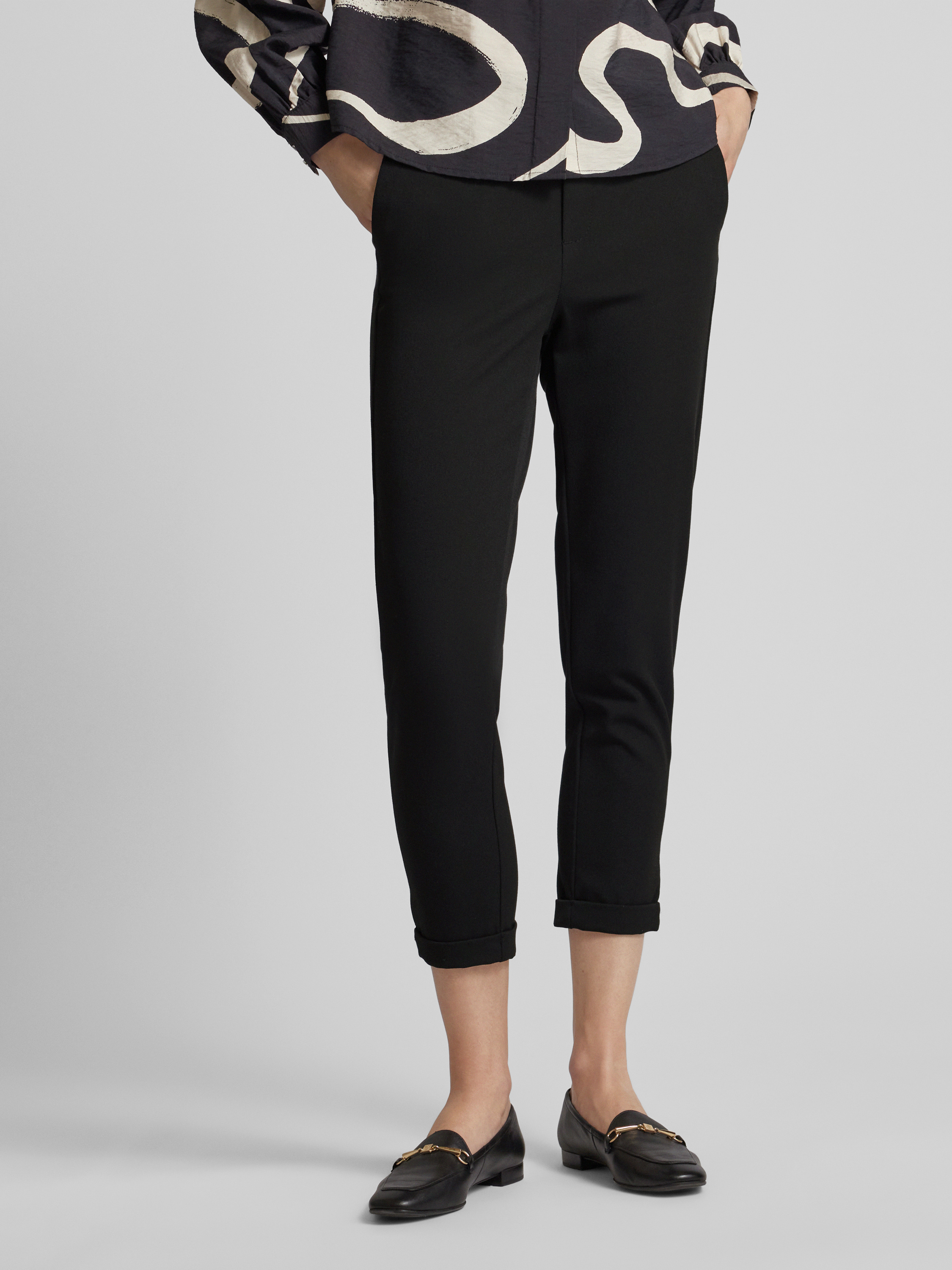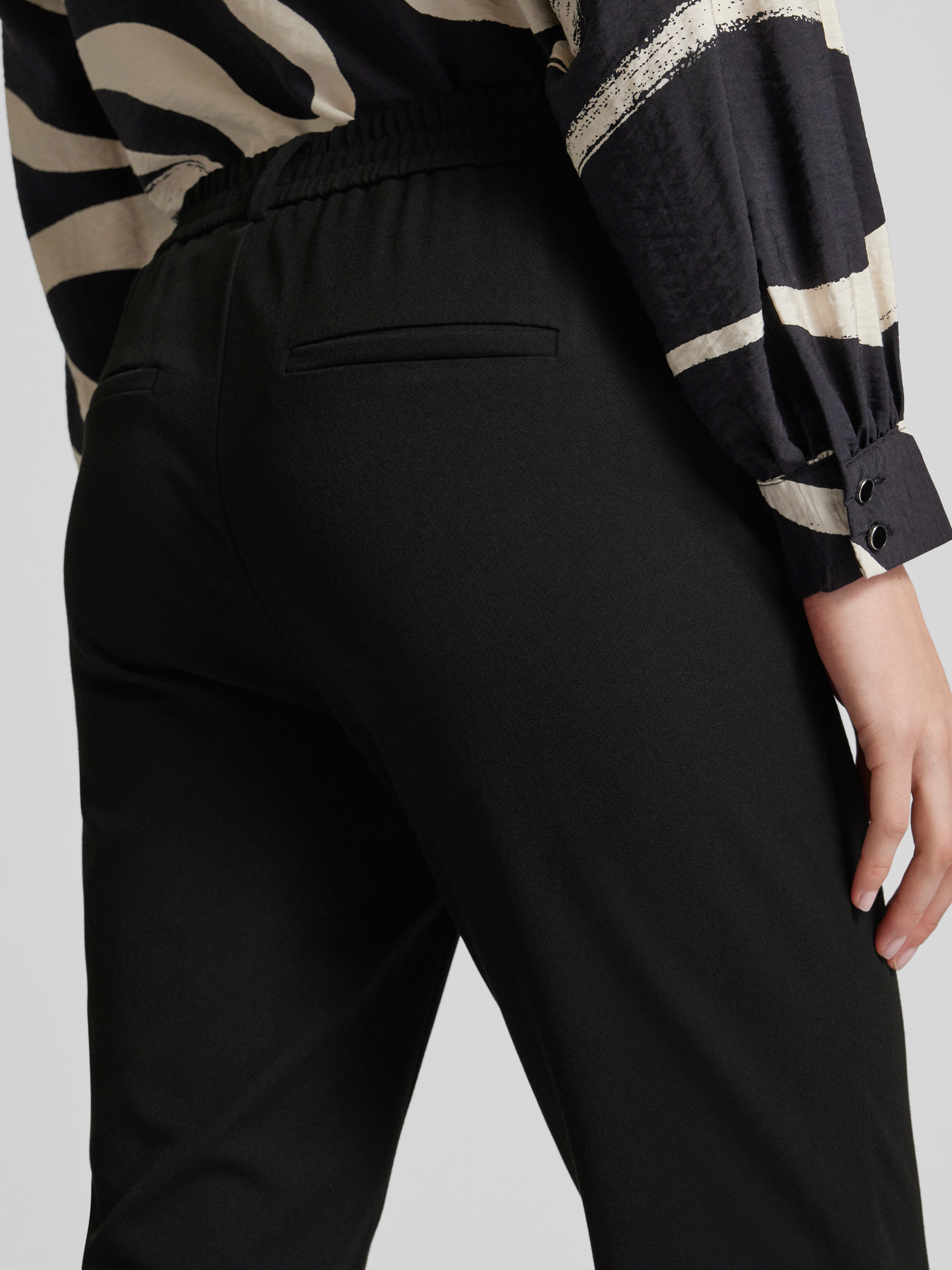 Loose fit stoffen broek met gestileerde opening, model 'MAYA' in zwart