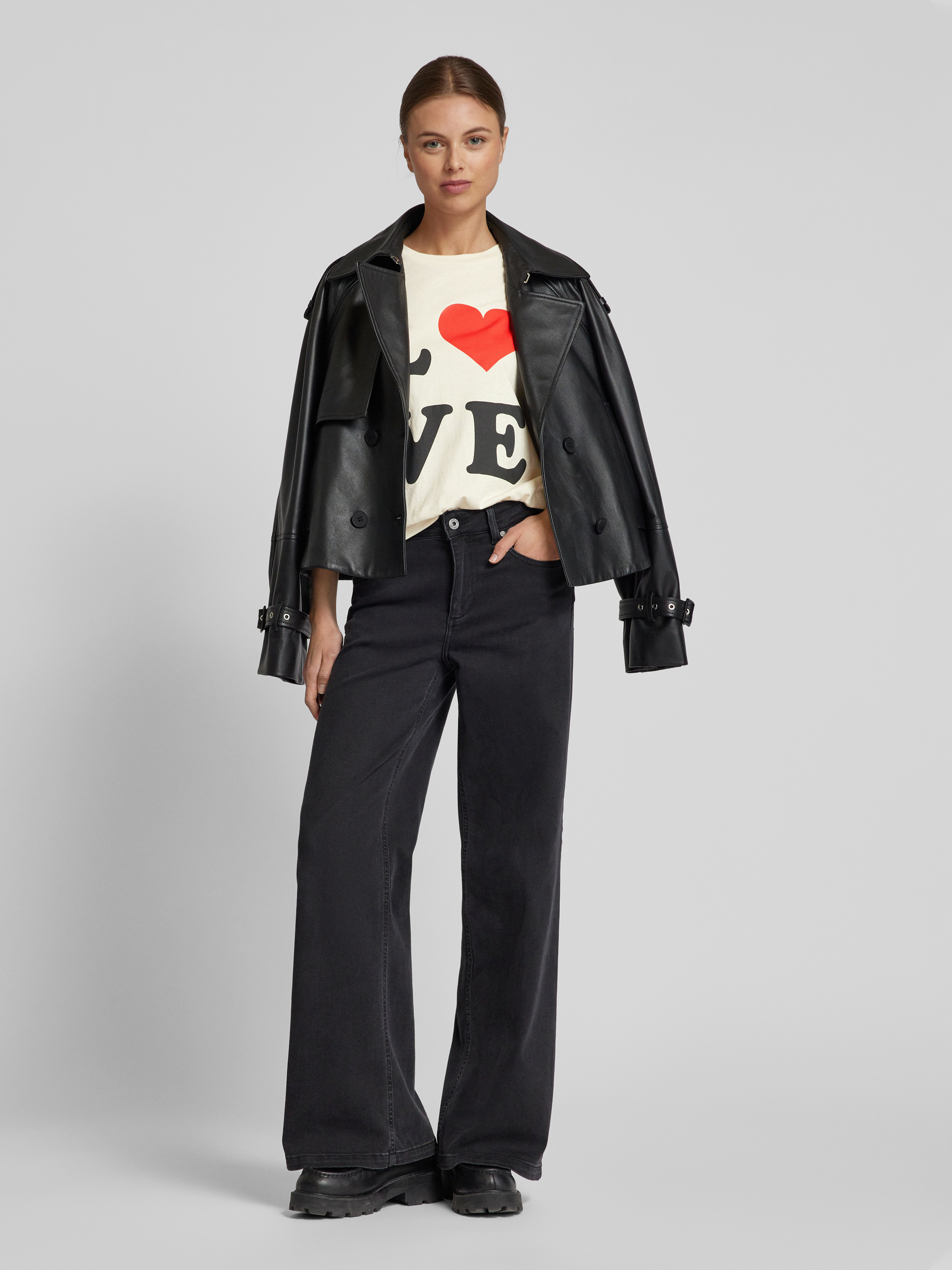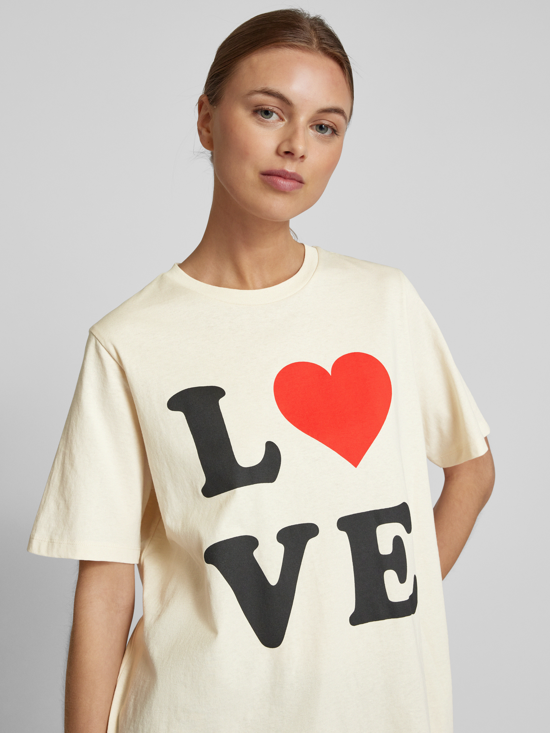 Loose fit T-shirt met statementprint, model 'VALERIE' in offwhite