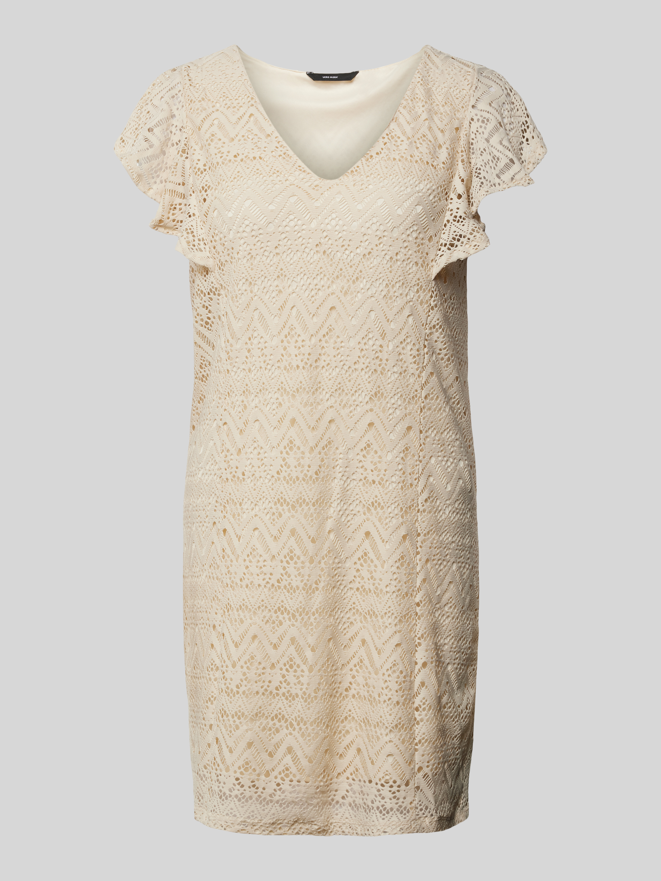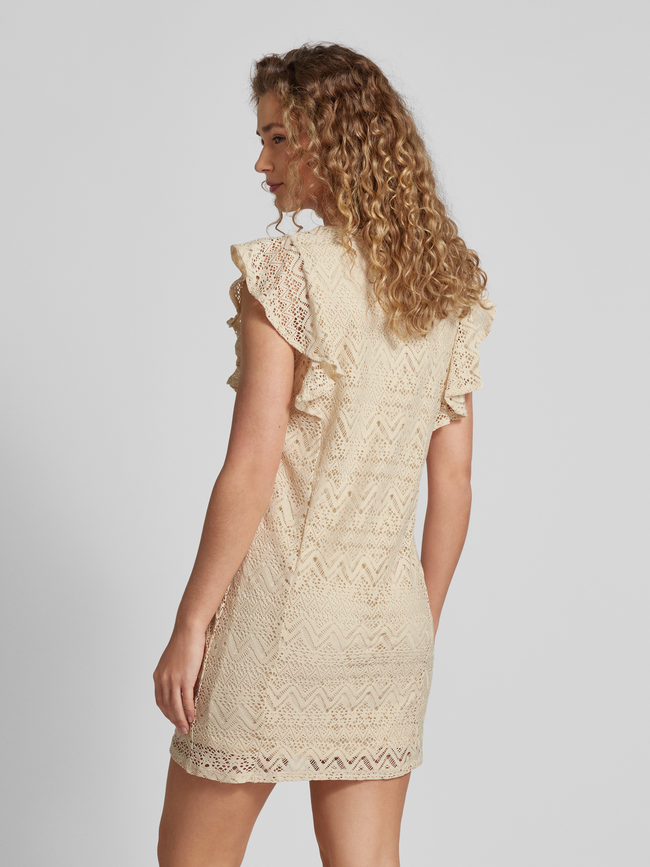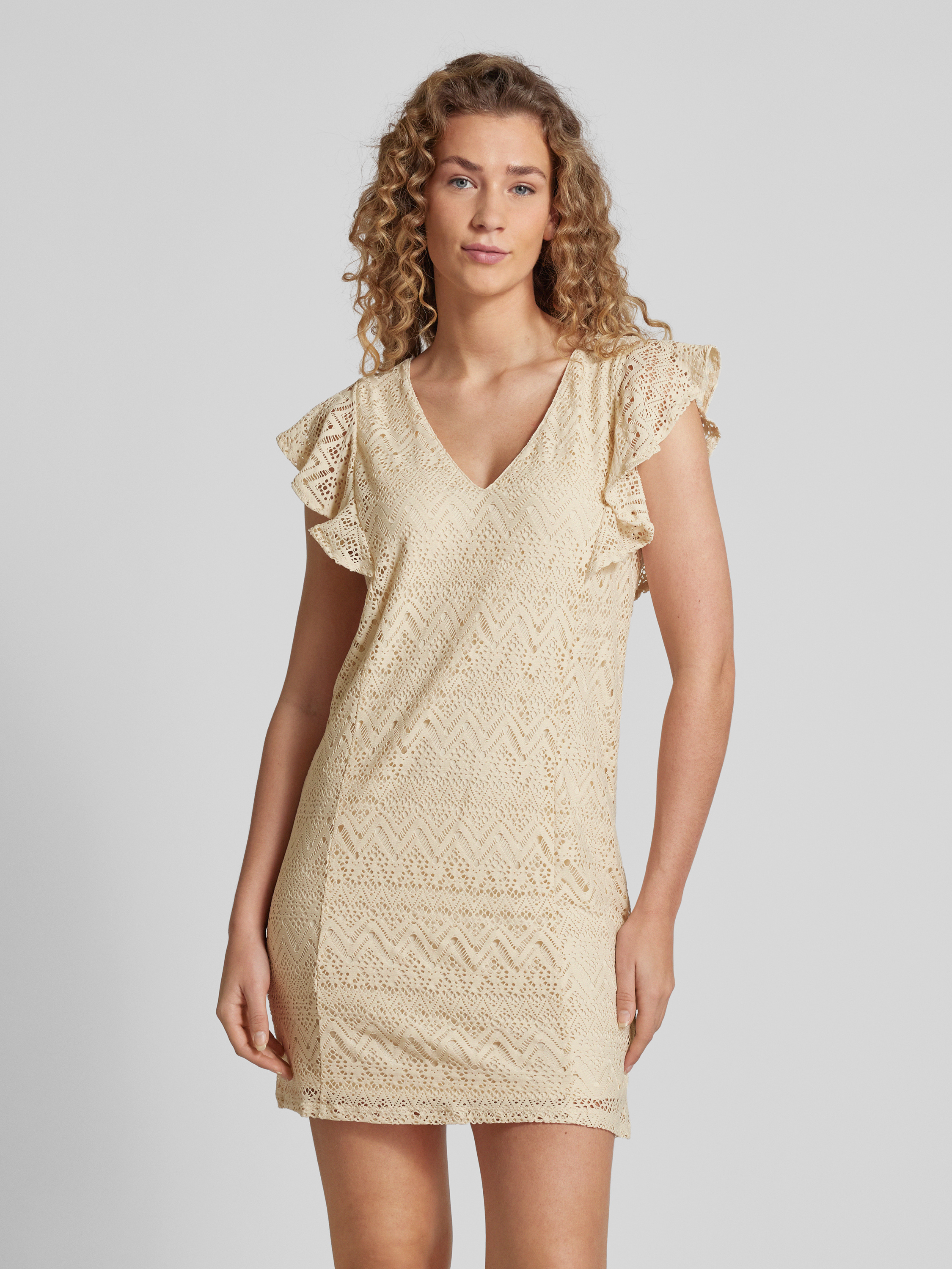 Mini-jurk met V-hals, model 'MAYA' in beige