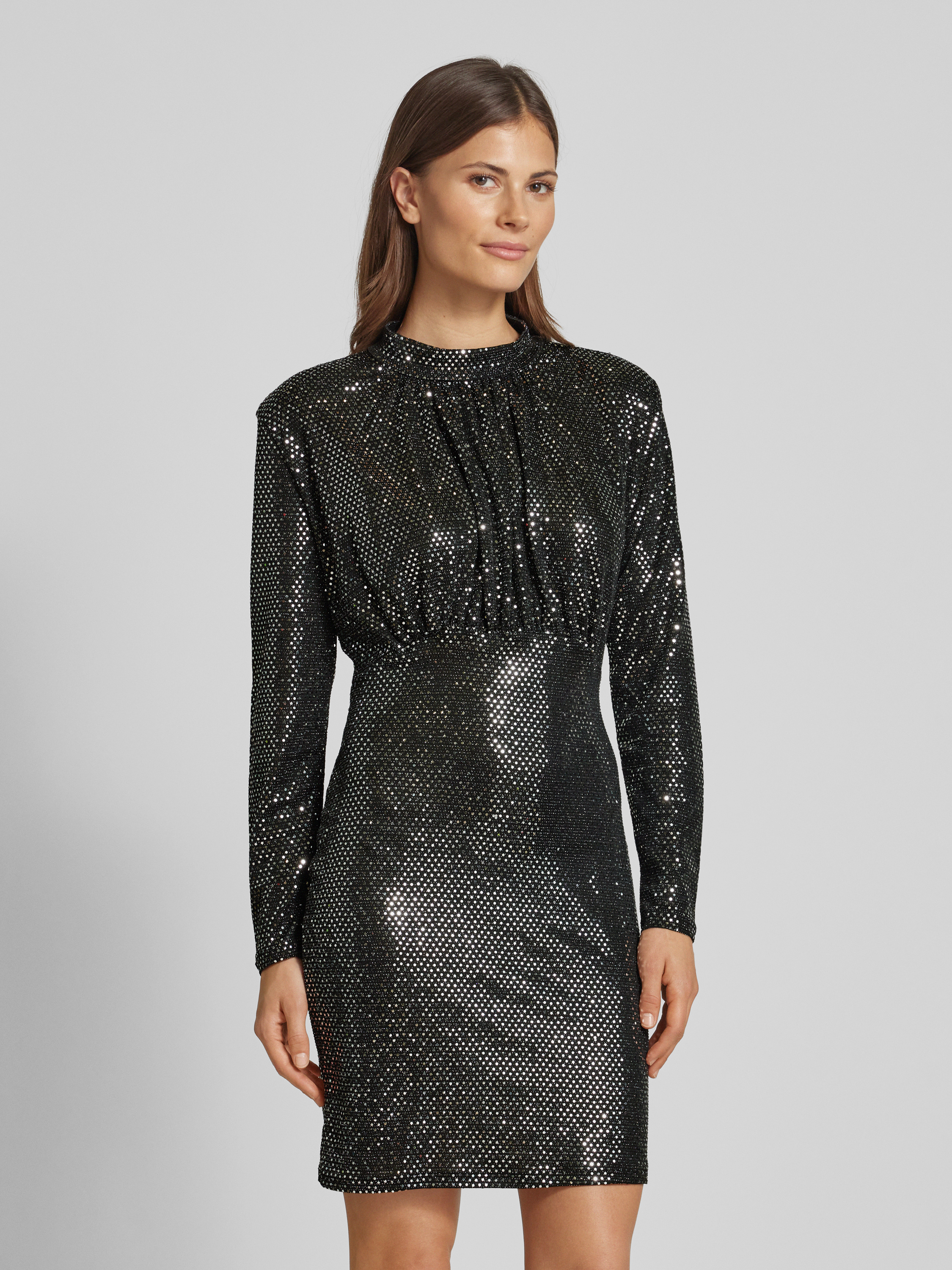 Nauwsluitende jurk met pailletjes en schoudervullingen, model 'EVALINE' in antraciet