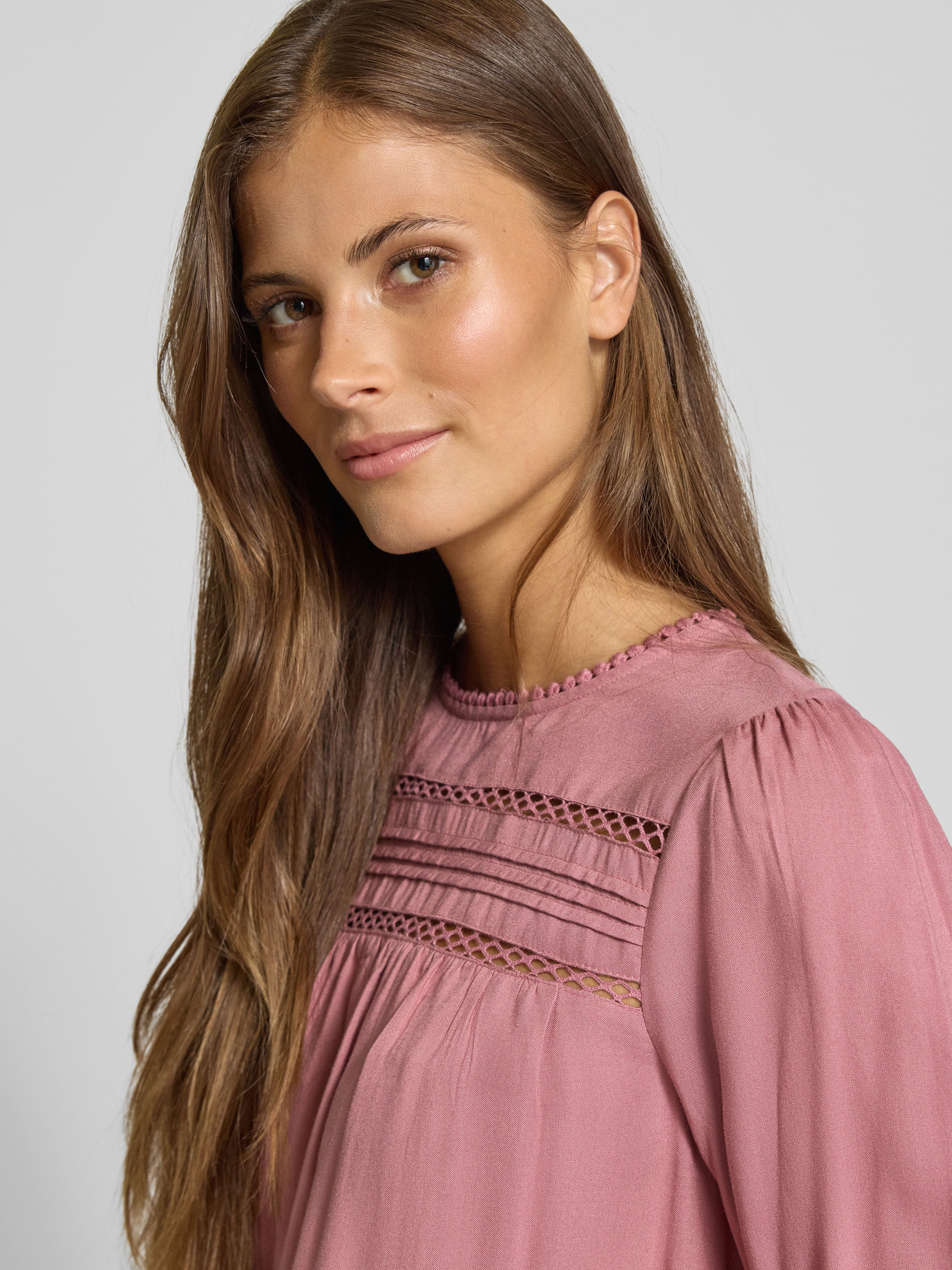 Regular fit blouse met lange mouwen van pure viscose, model 'DEBBIE' in oudroze