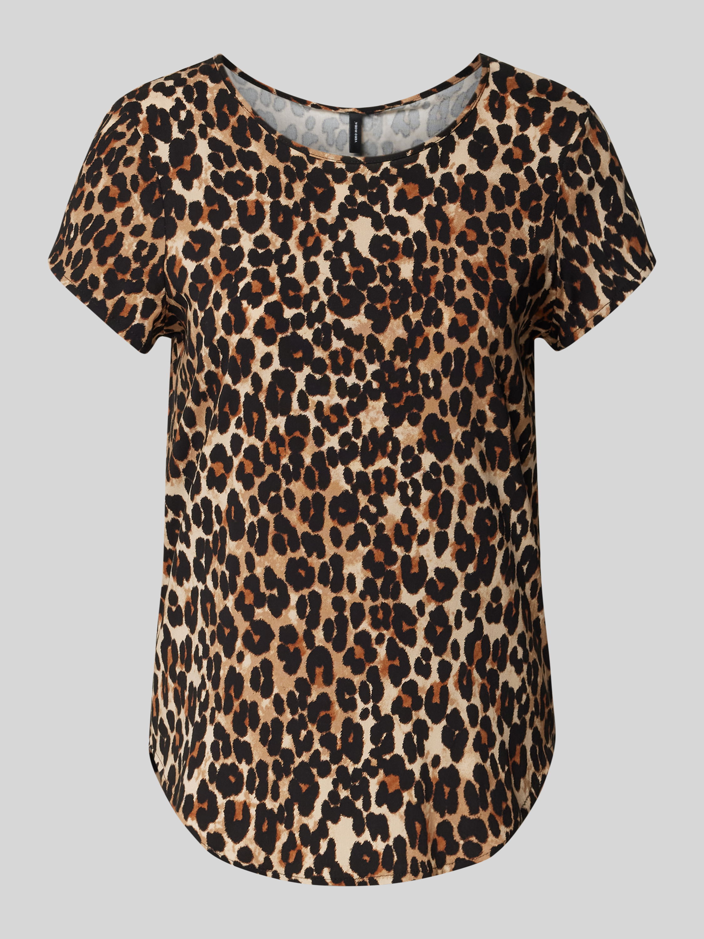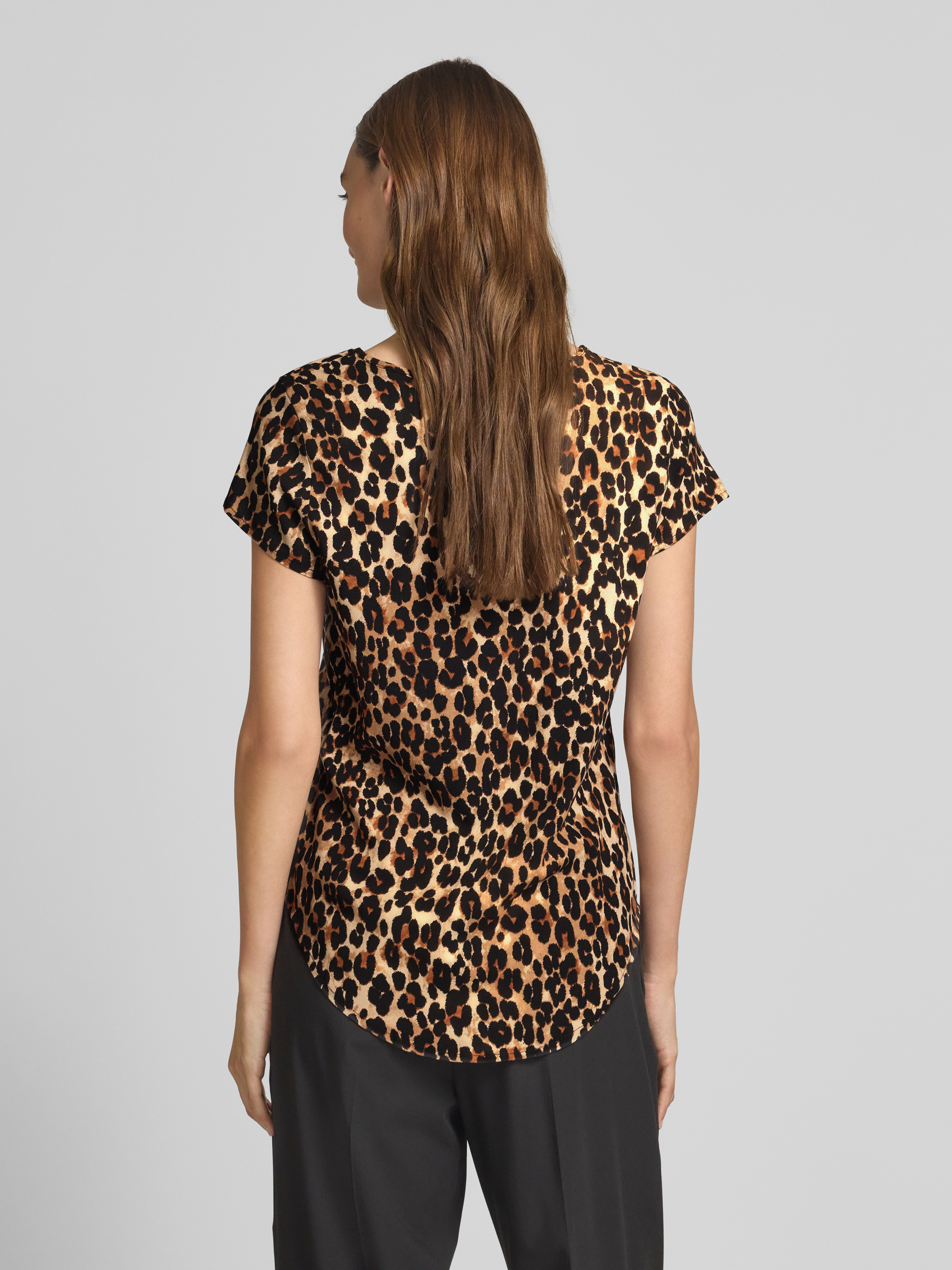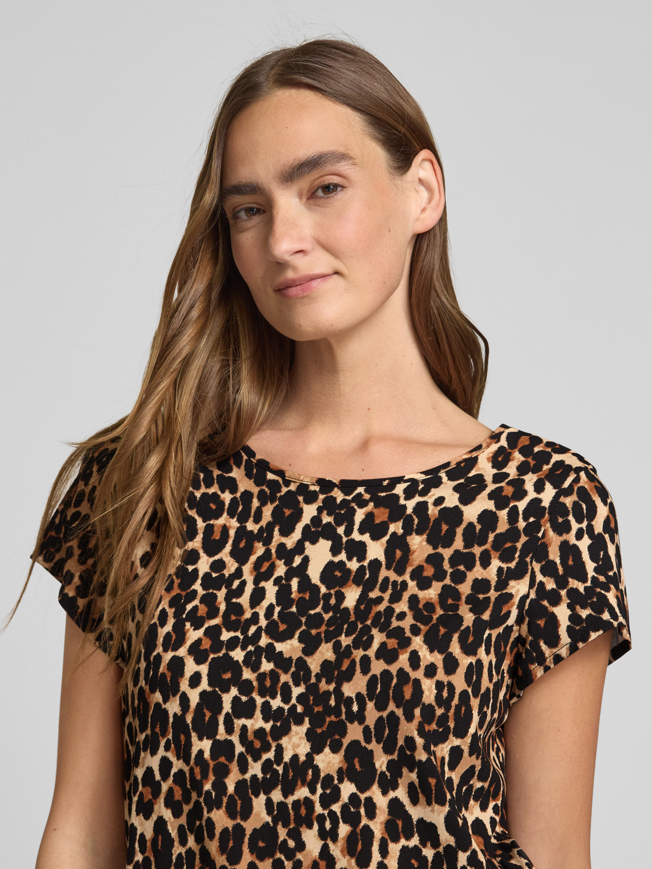 Regular fit blousetop met ronde hals, model 'BELLA' in chocoladebruin