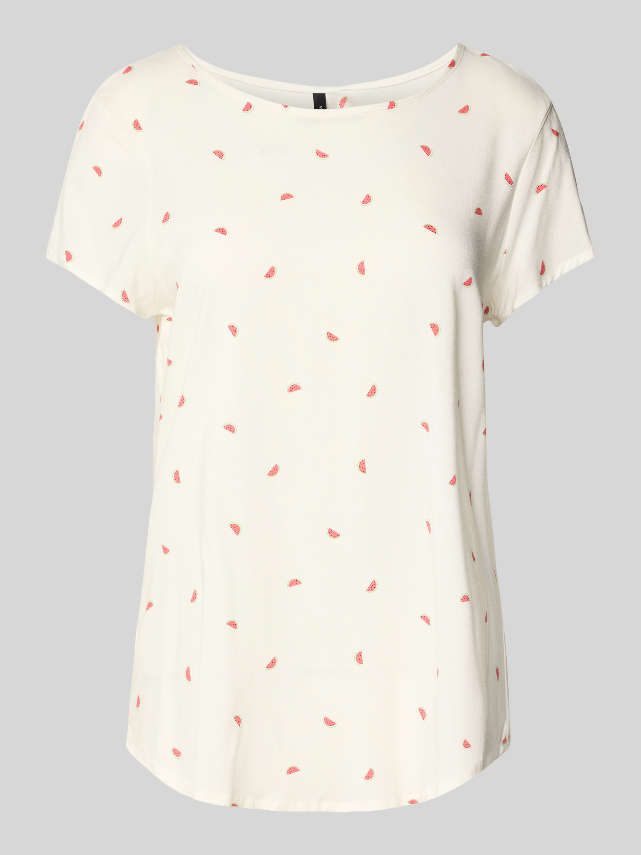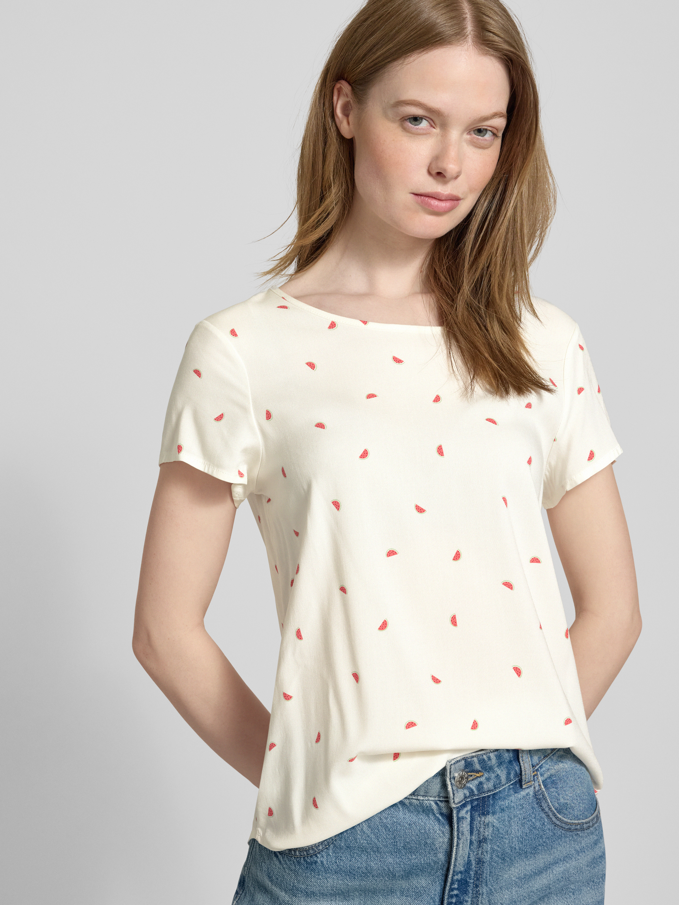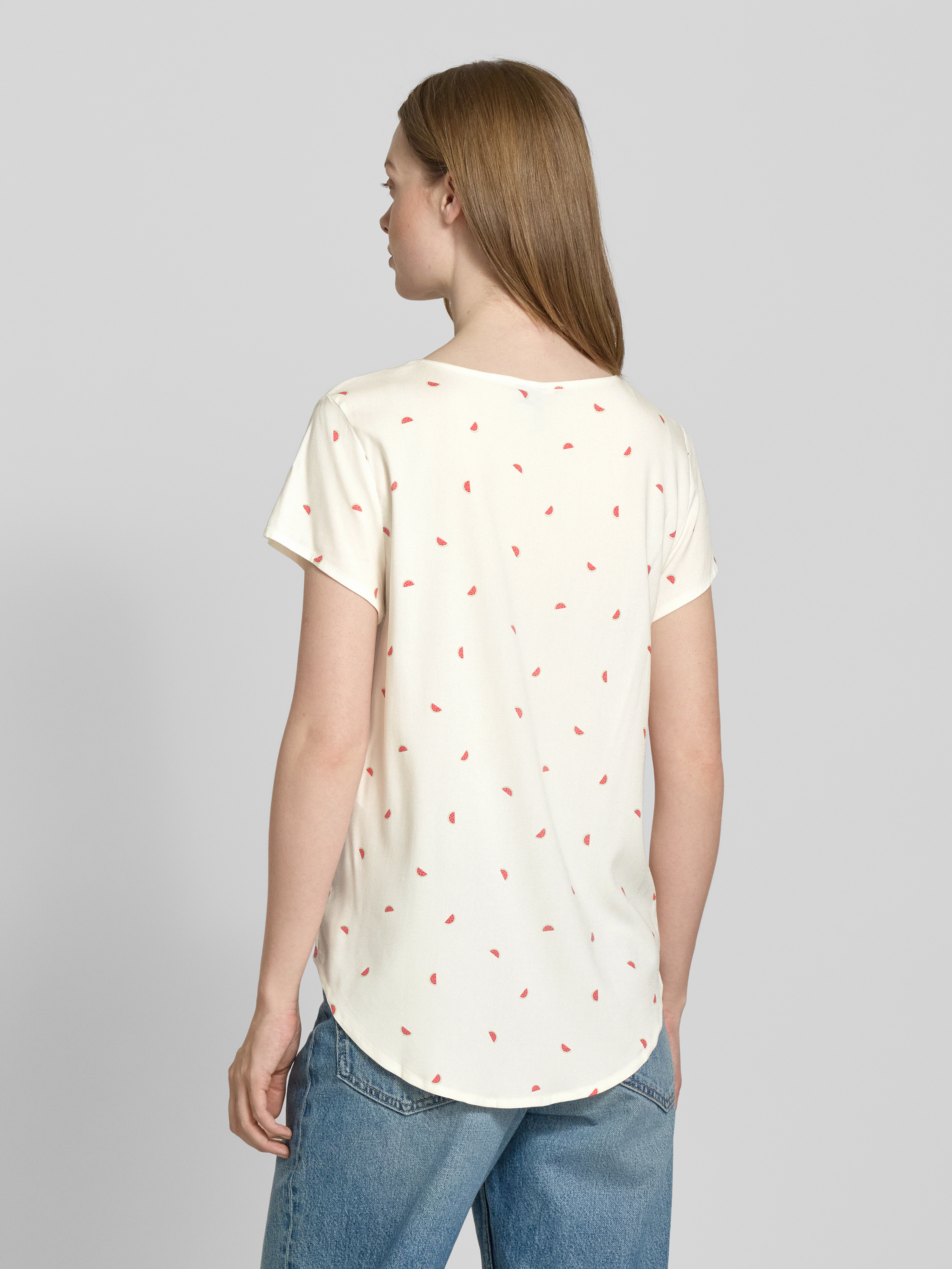 Regular fit blousetop met ronde hals, model 'BELLA' in offwhite