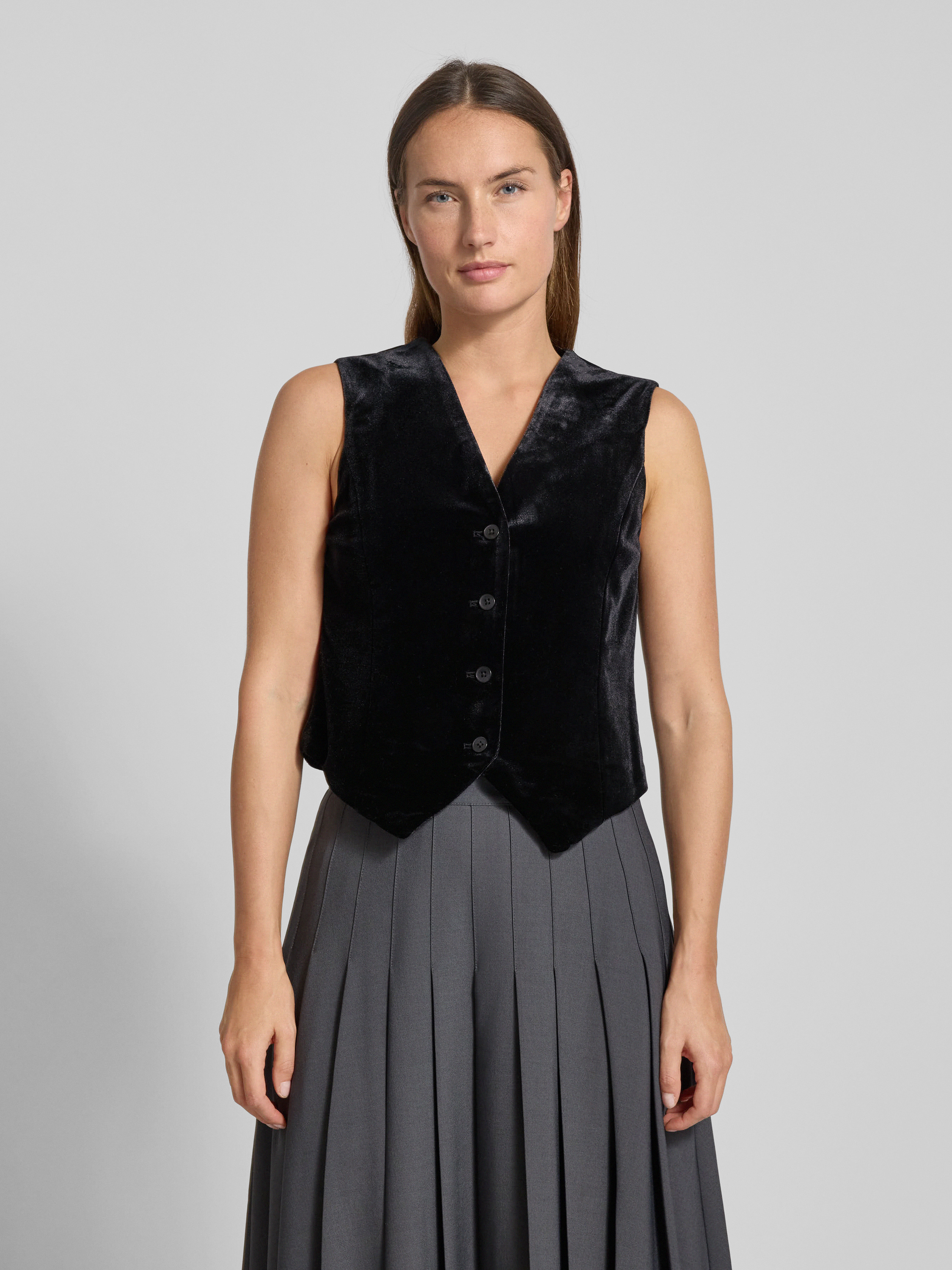 Regular fit fluwelen gilet met enkele knoopsluiting, model 'SHANNA' in zwart