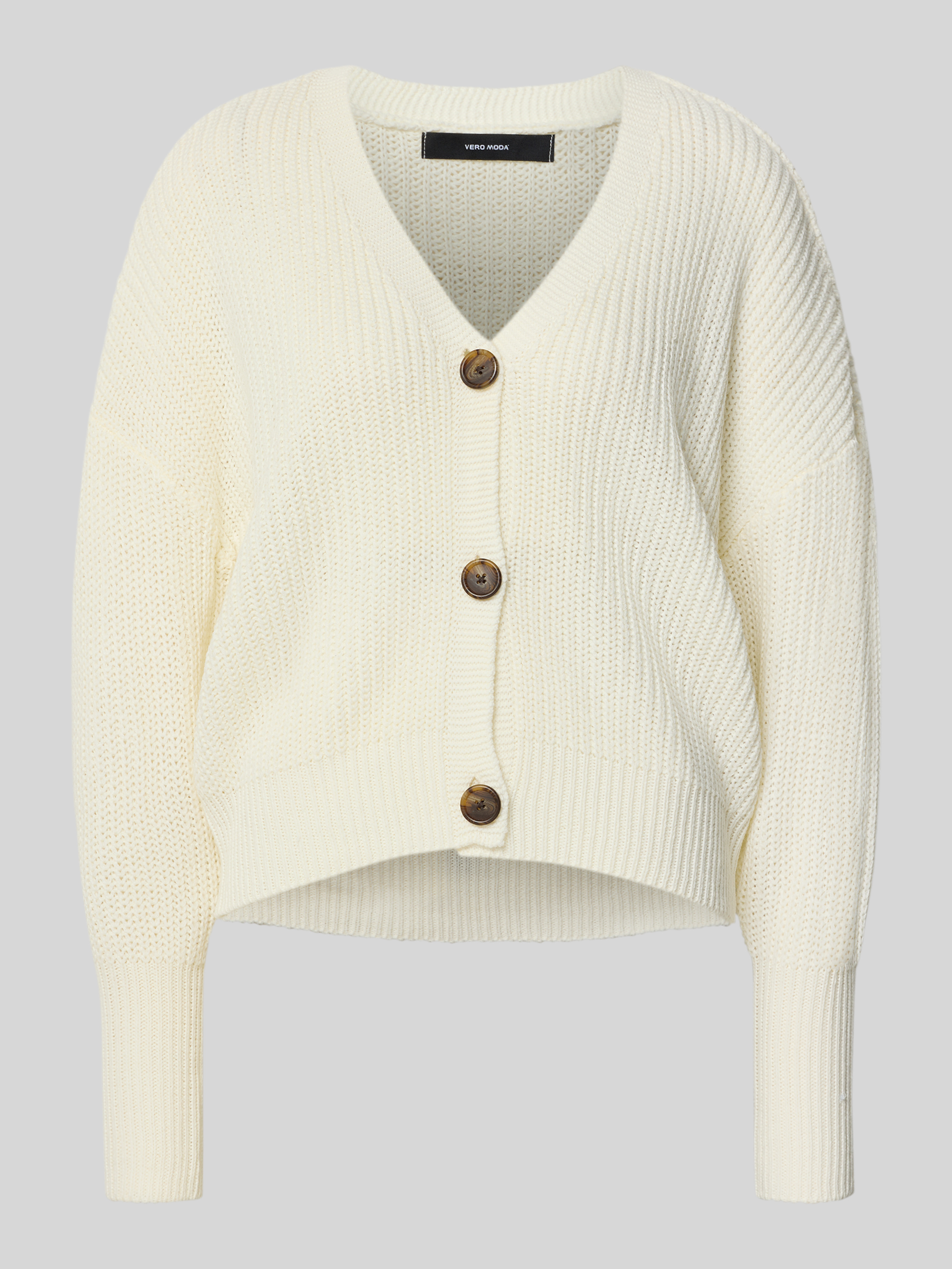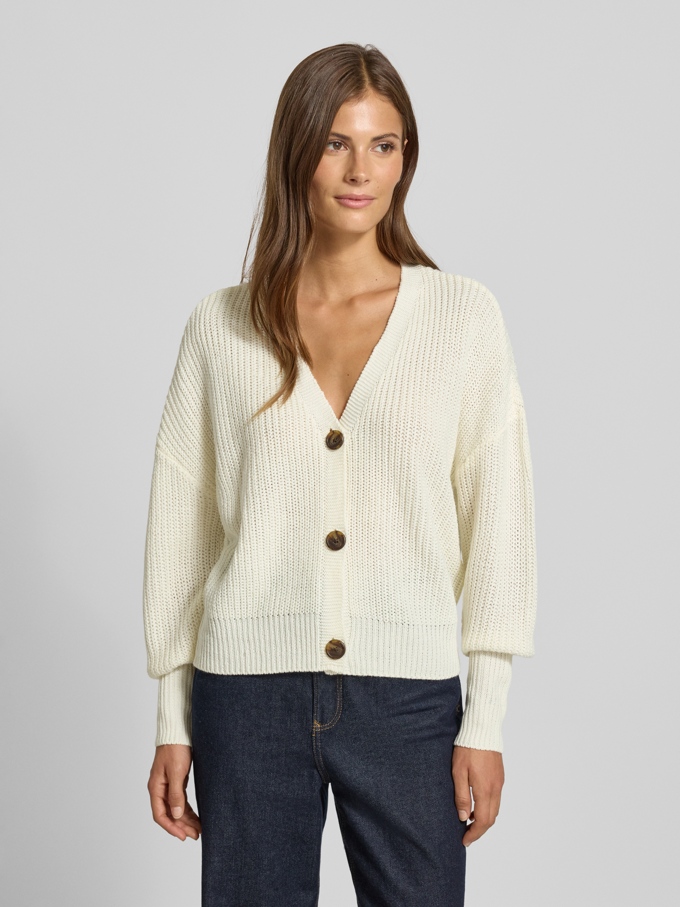 Regular fit gebreid jack met sierknopen, model 'LEA' in wit