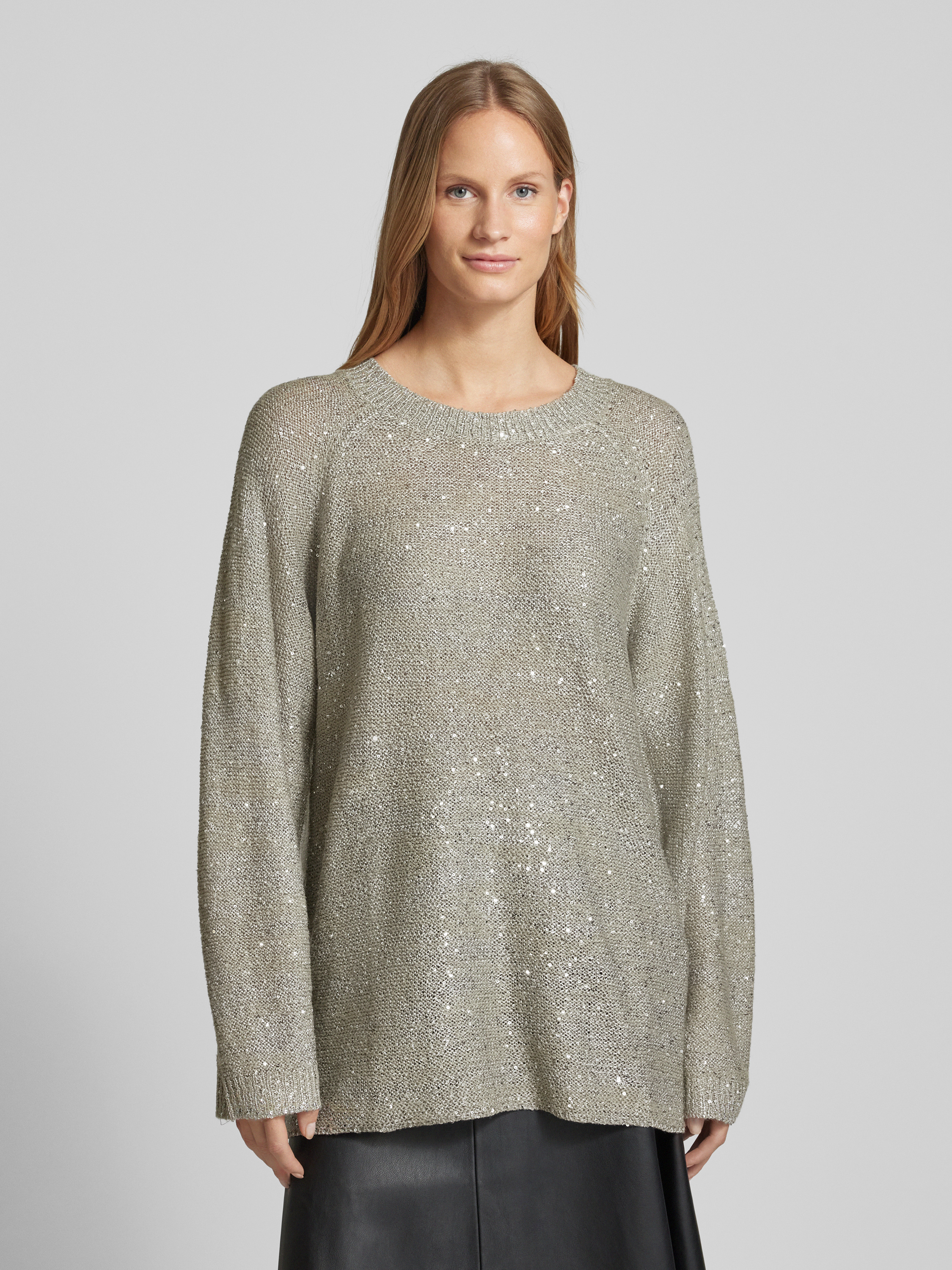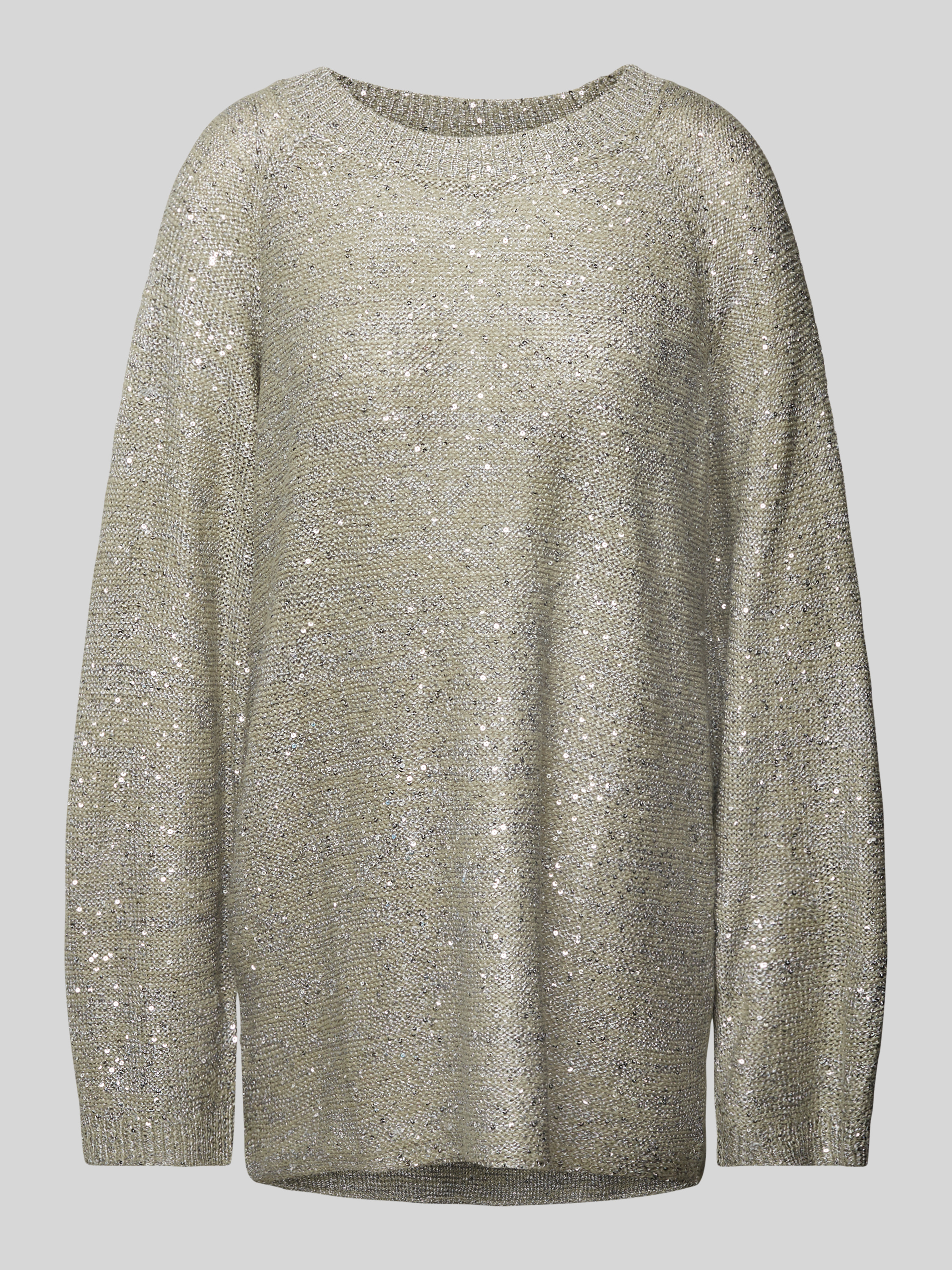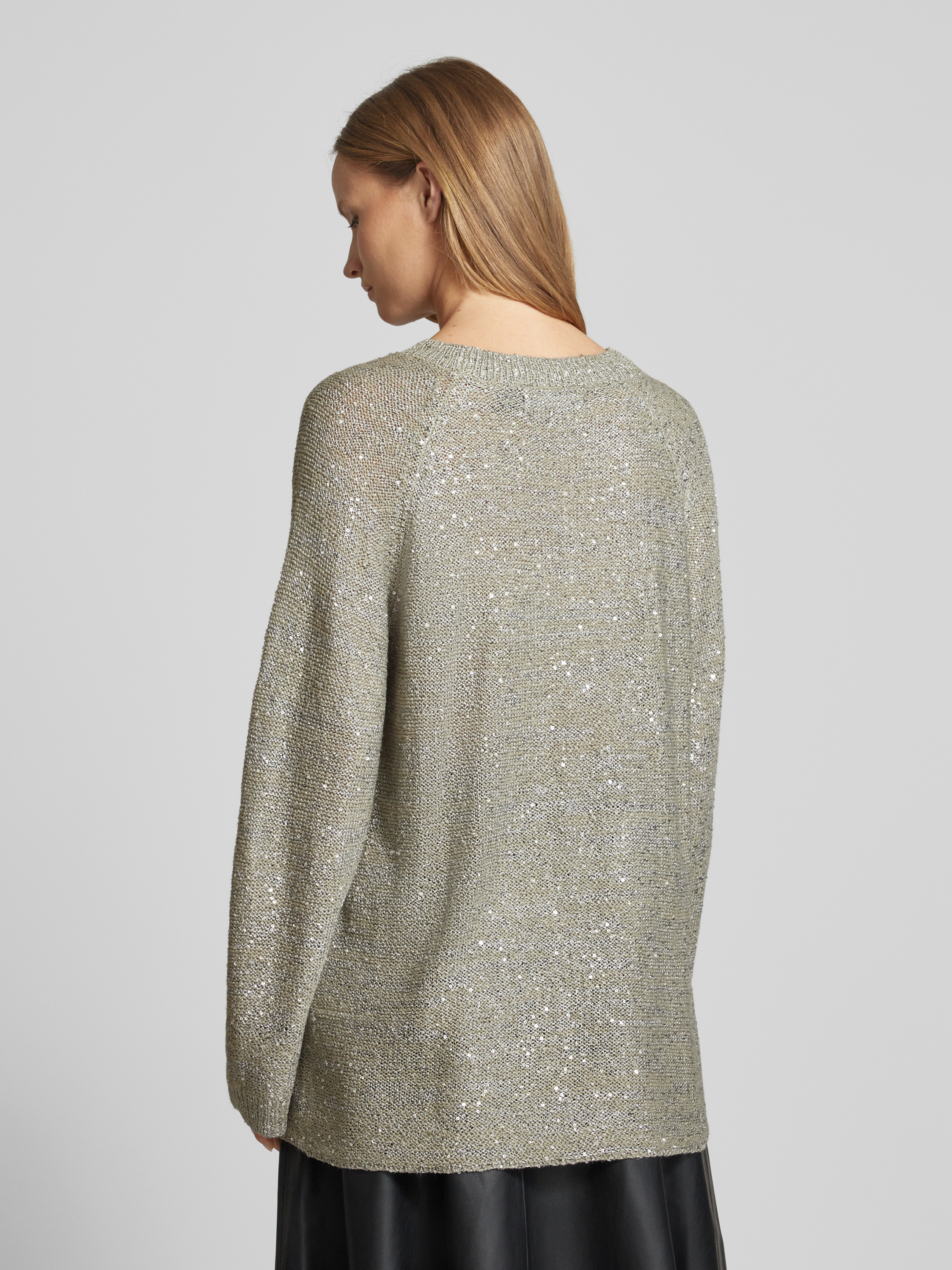 Regular fit gebreide pullover met pailletten, model 'LEILANI' in zilver gemêleerd