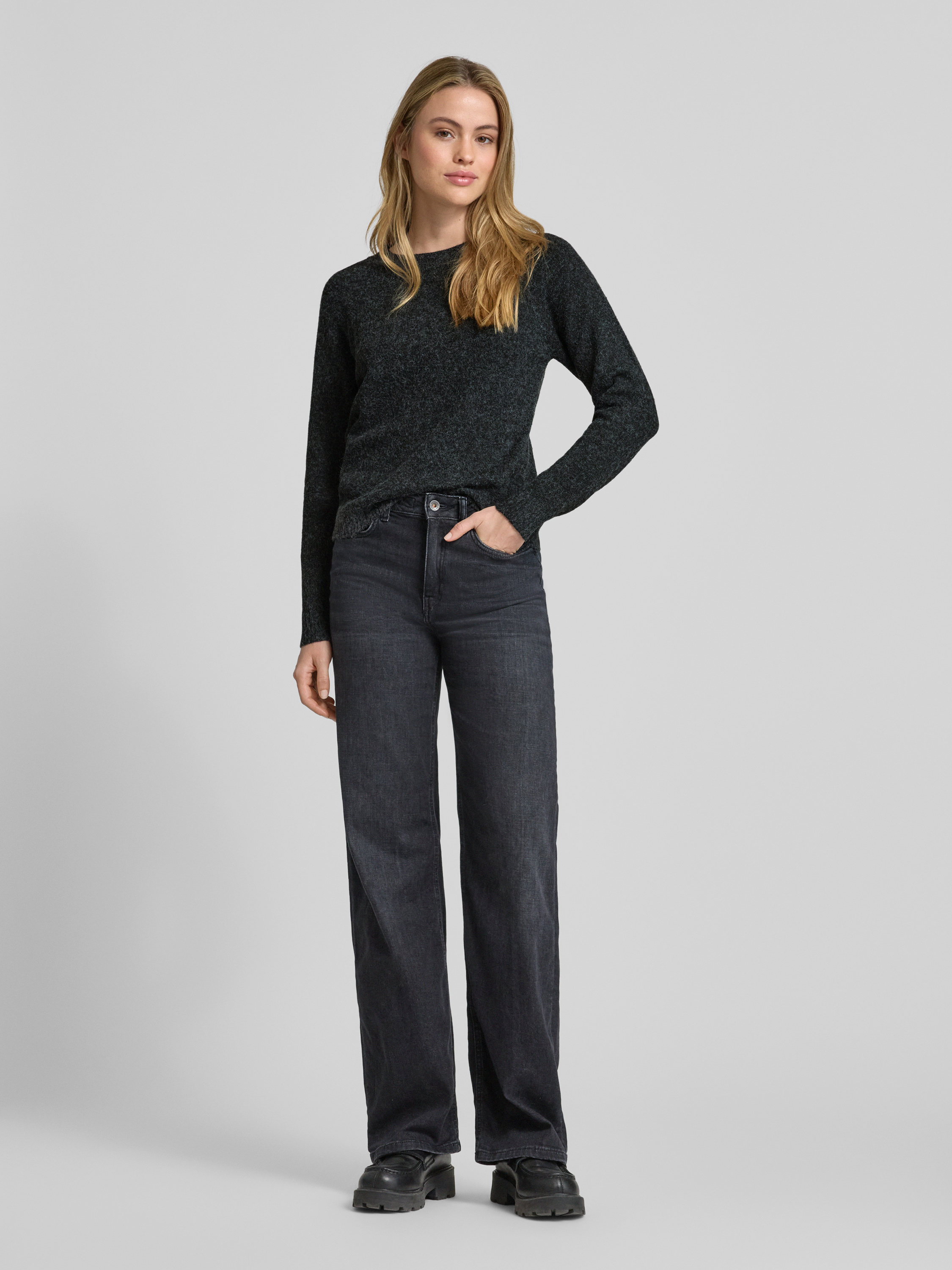 Regular fit gebreide pullover met raglanmouwen, model 'DOFFY' in zwart
